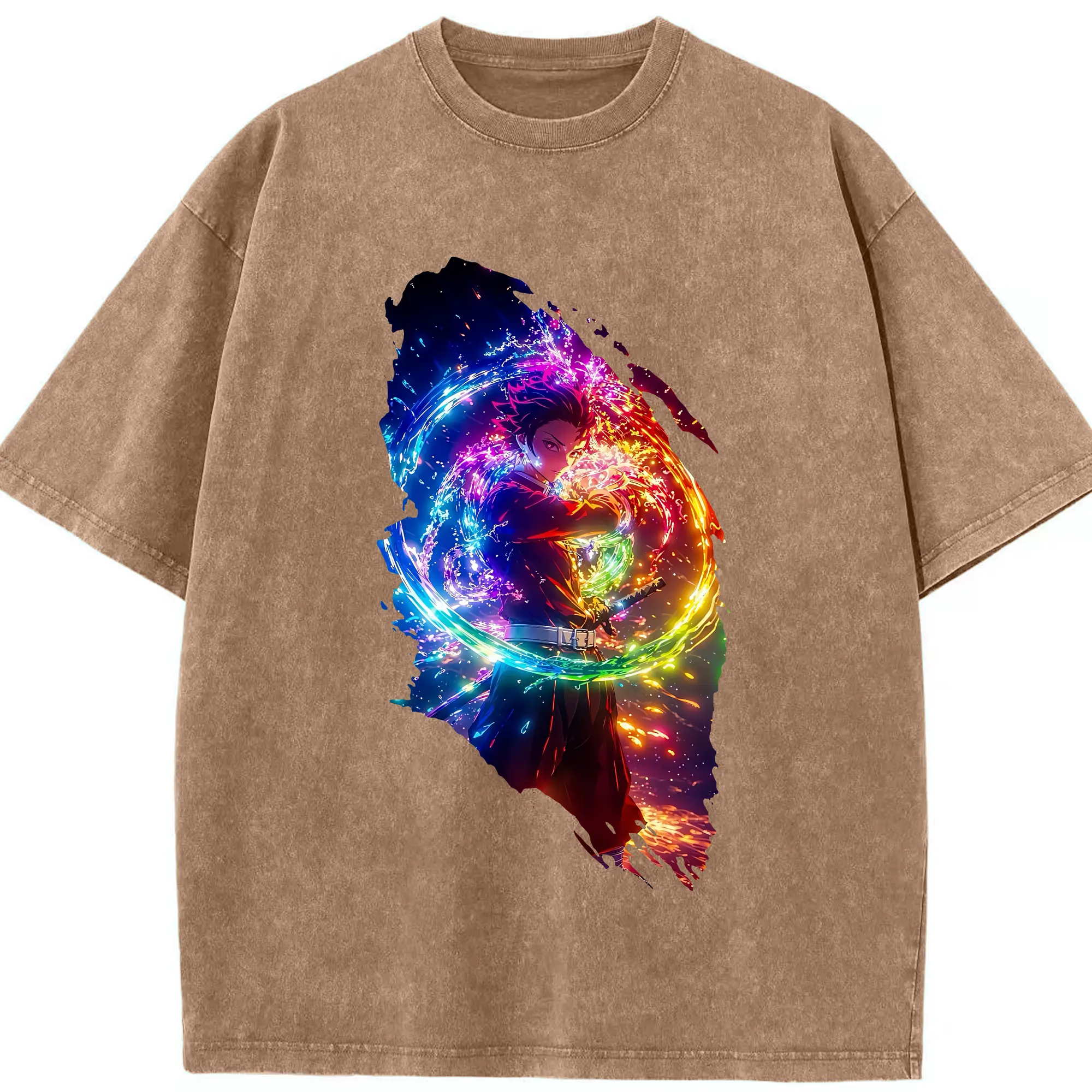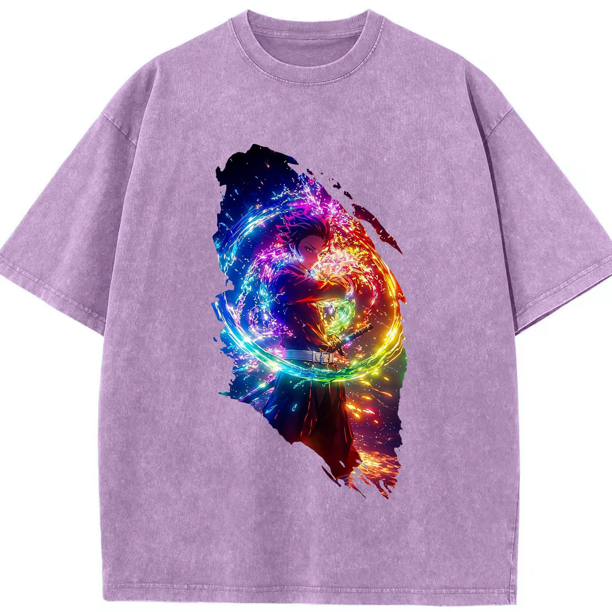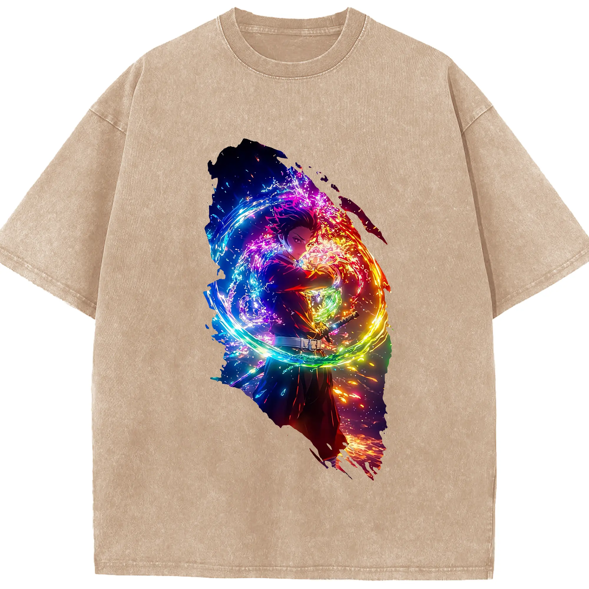 鬼滅の刃 グッズ,竈門 炭治郎 - 綿100% 半袖Tシャツ ・ バックプリント ・ 快適 通気性 ・ 日常使い 散歩 スポーツ用