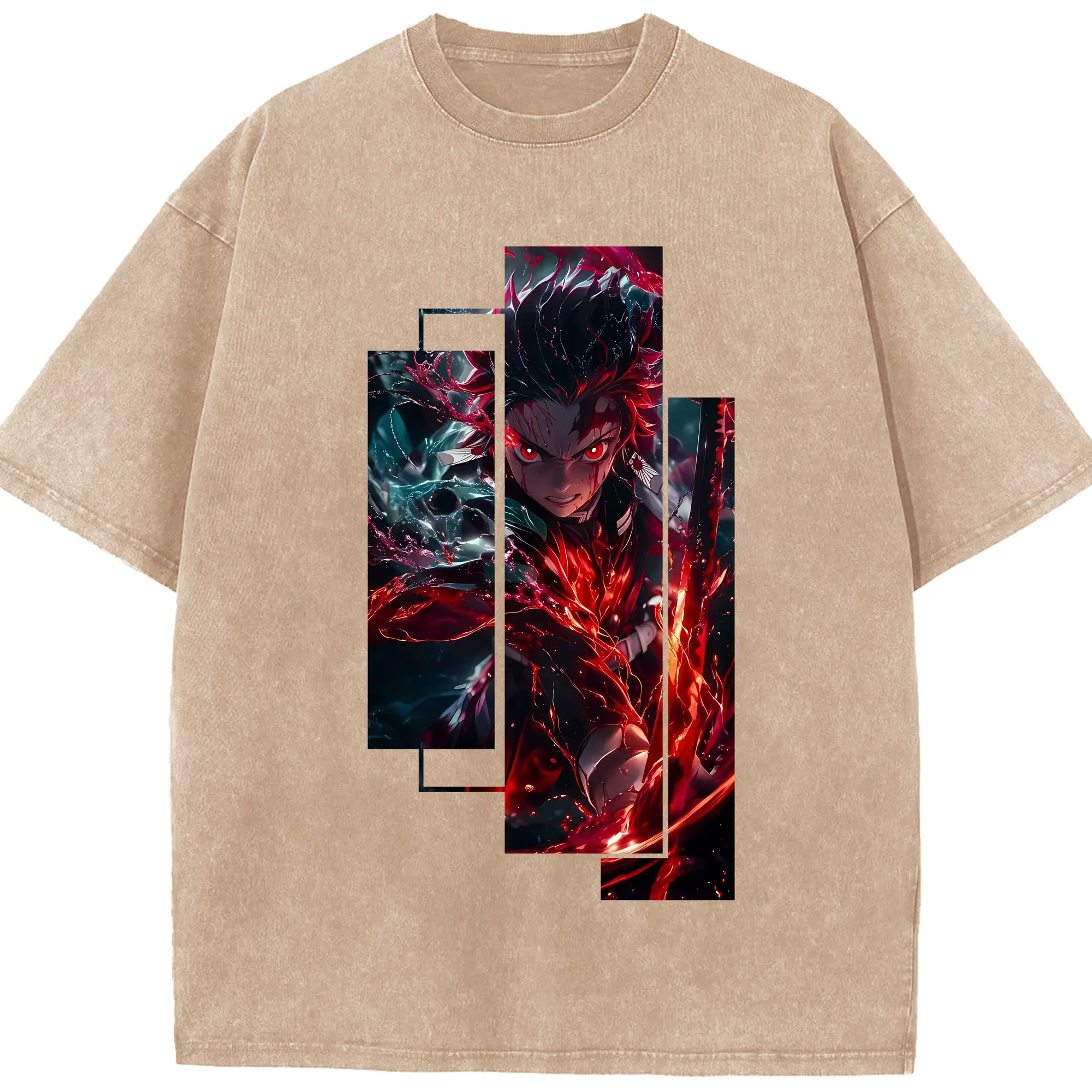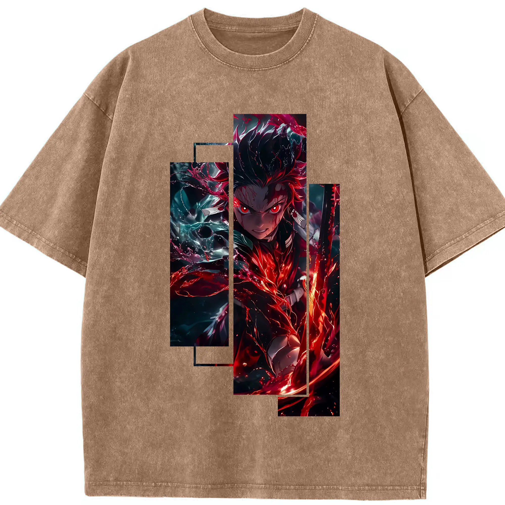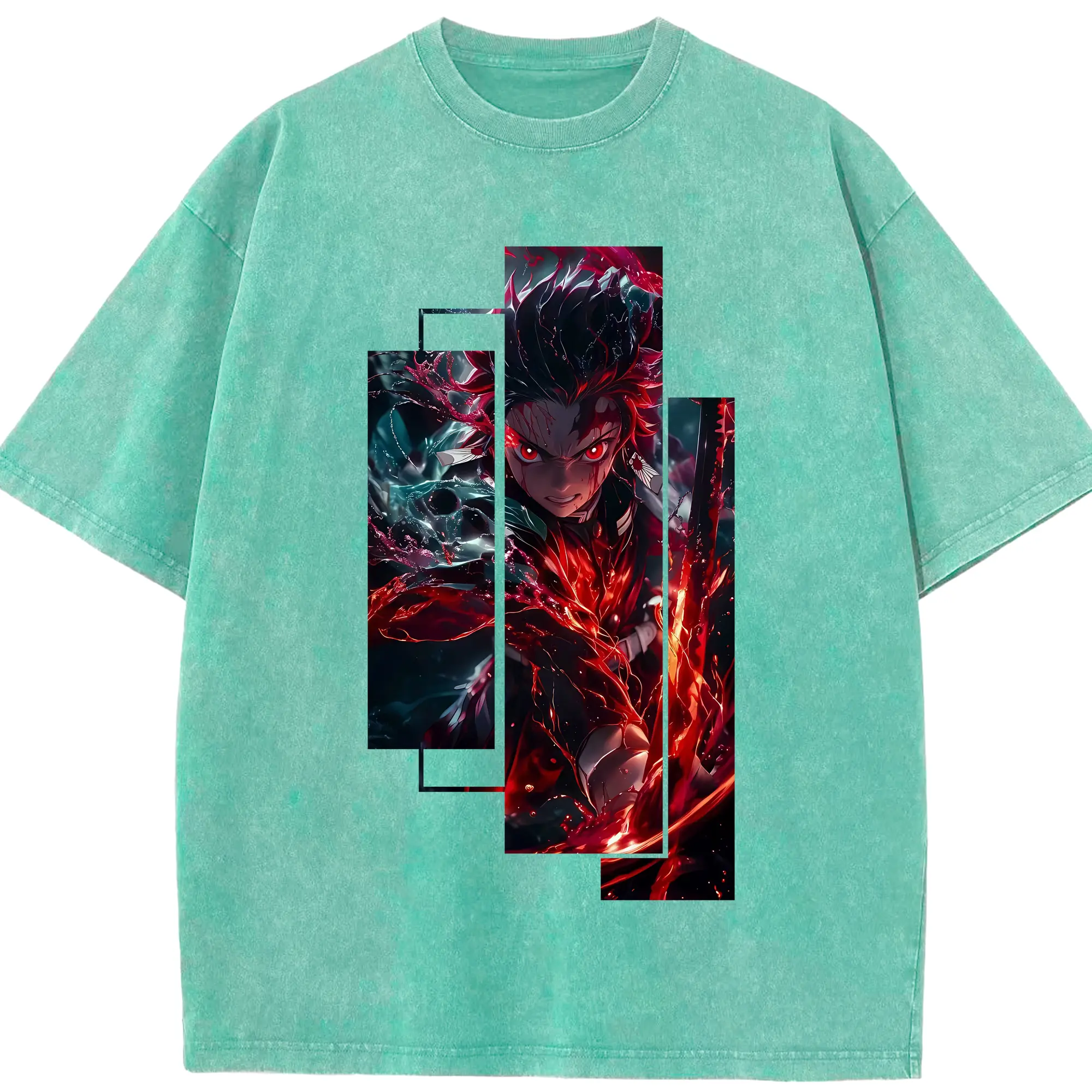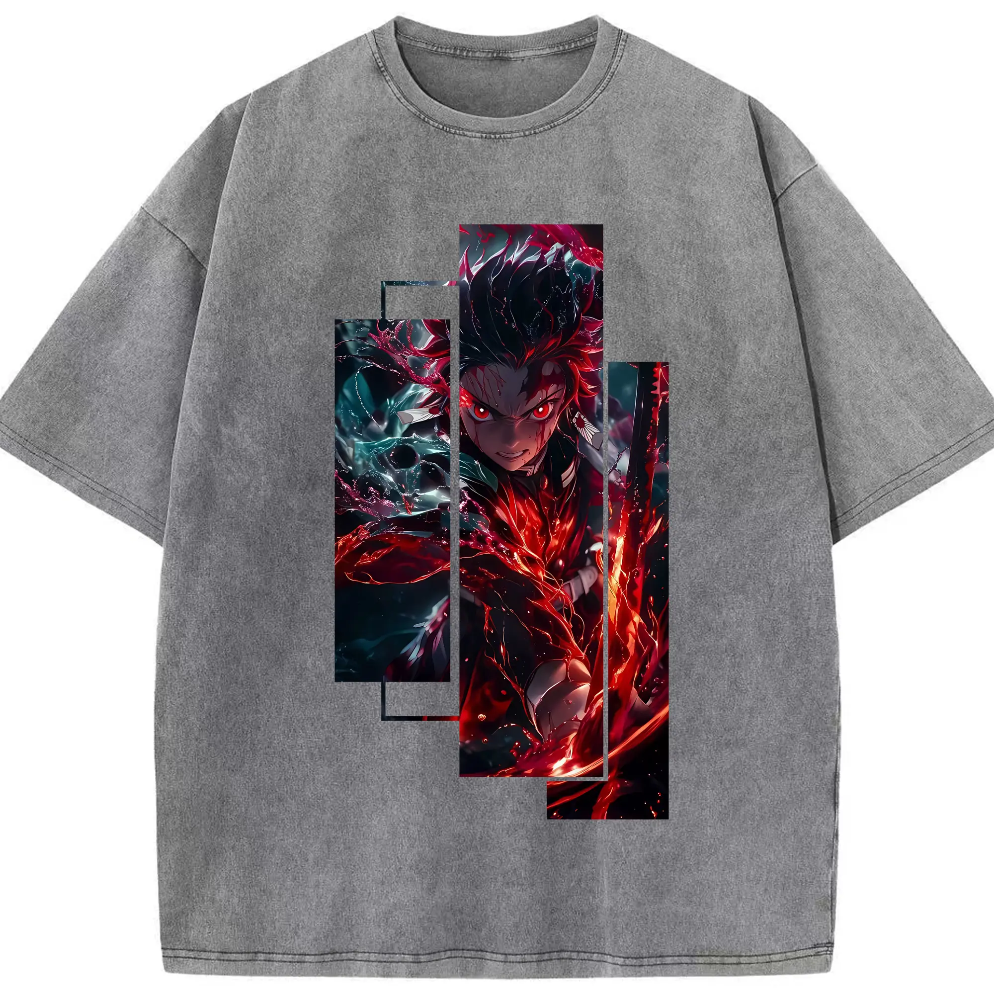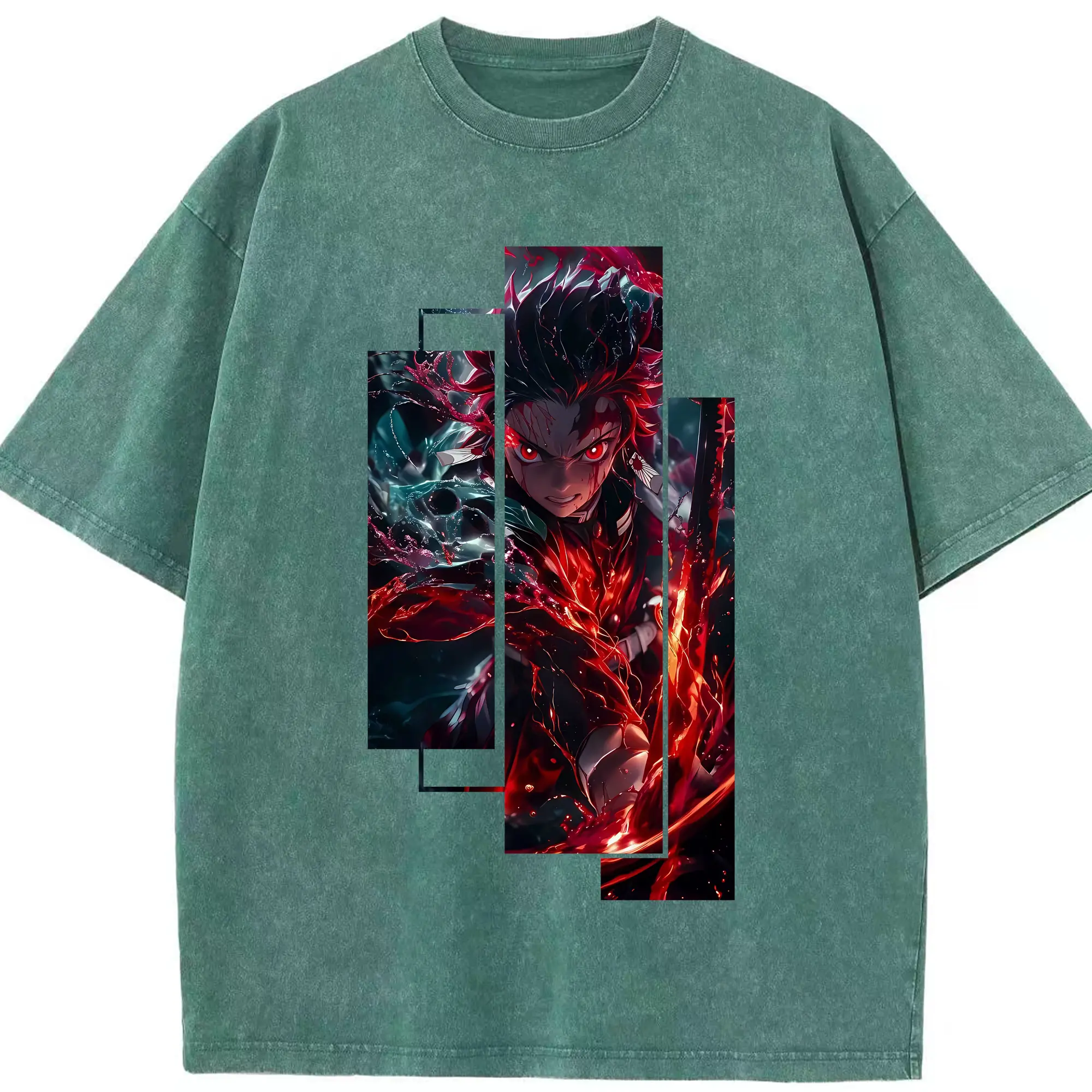 鬼滅の刃 グッズ,竈門 炭治郎 - 綿100% 半袖Tシャツ ・ フロントプリント ・ 快適 通気性 ・ 日常使い 散歩 スポーツ用