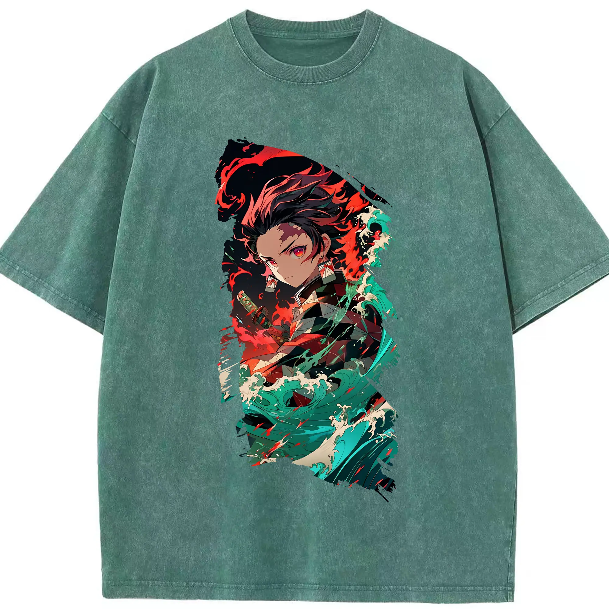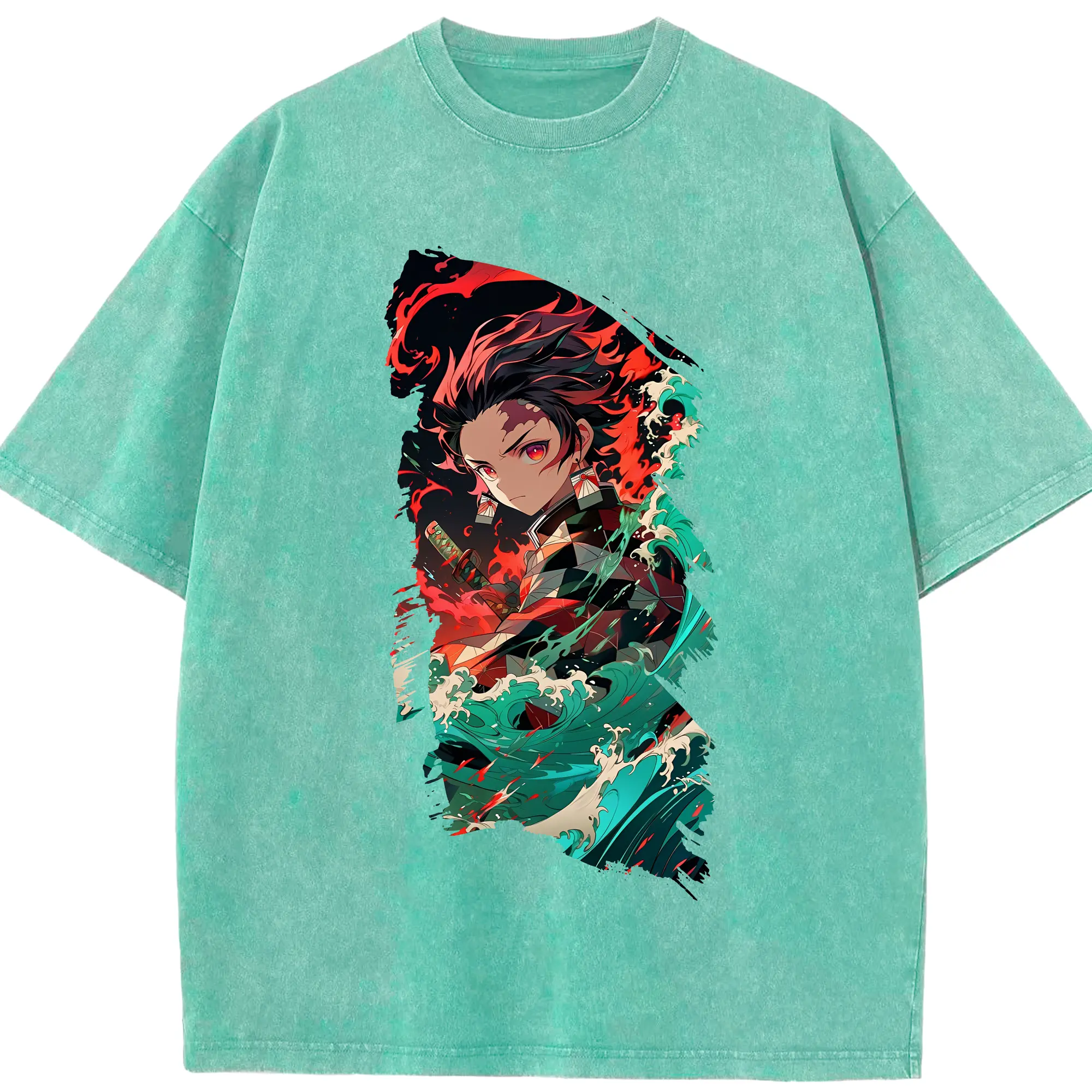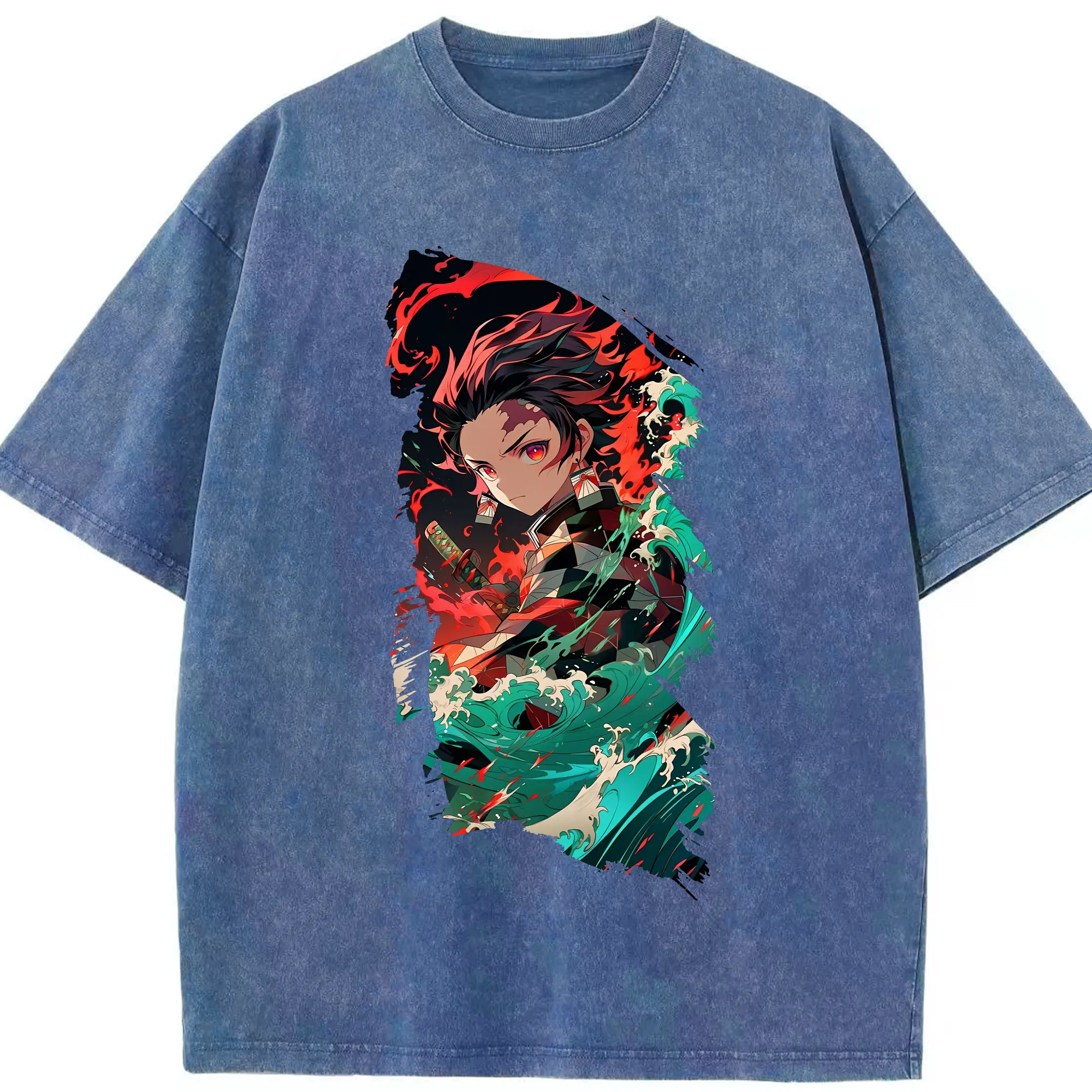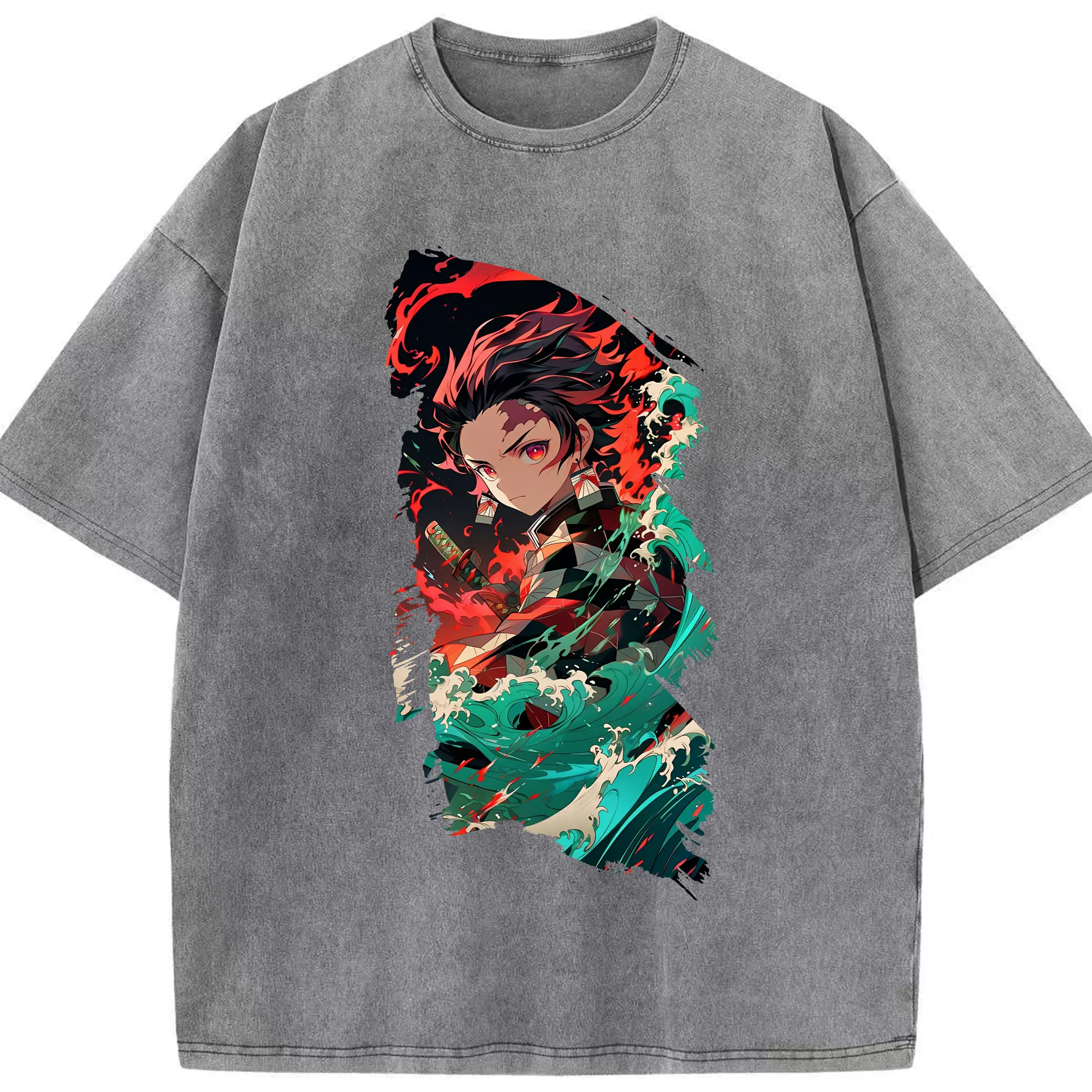 鬼滅の刃 グッズ,竈門 炭治郎 - 綿100% 半袖Tシャツ ・ フロントプリント ・ 快適 通気性 ・ 日常使い 散歩 スポーツ用