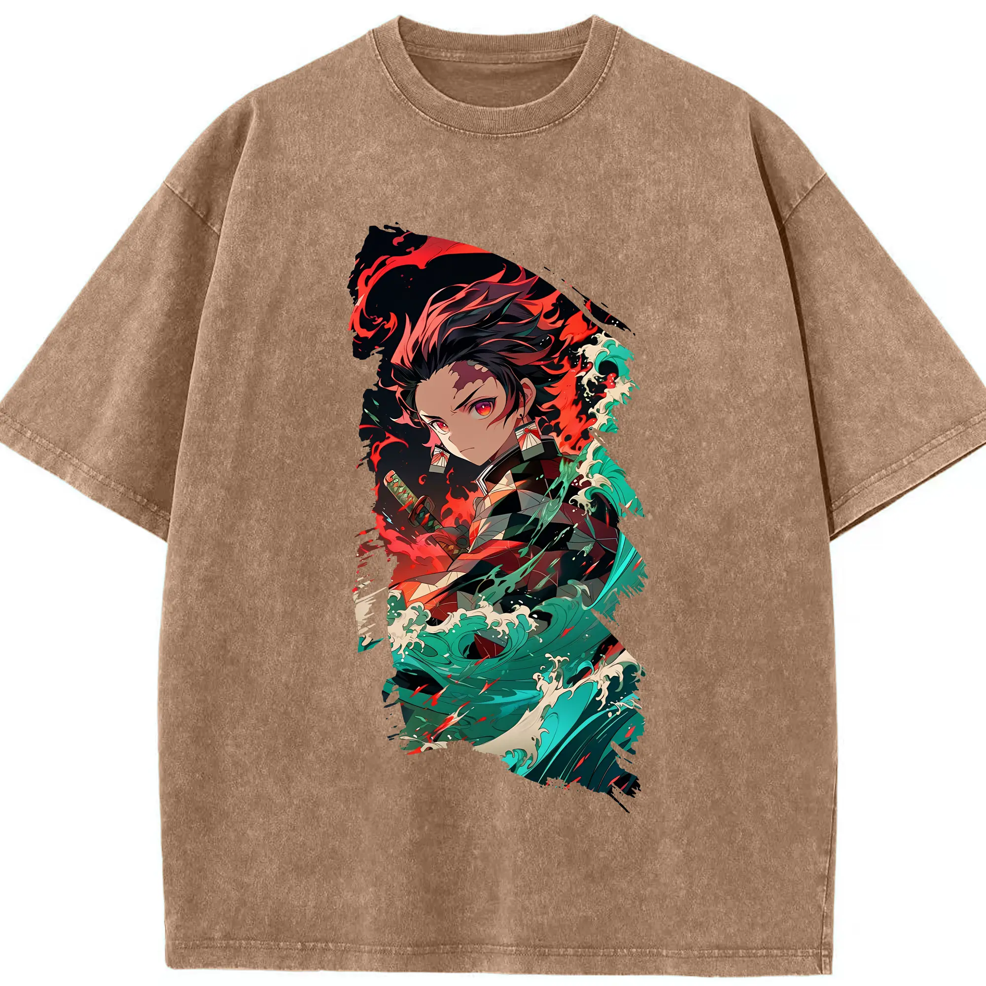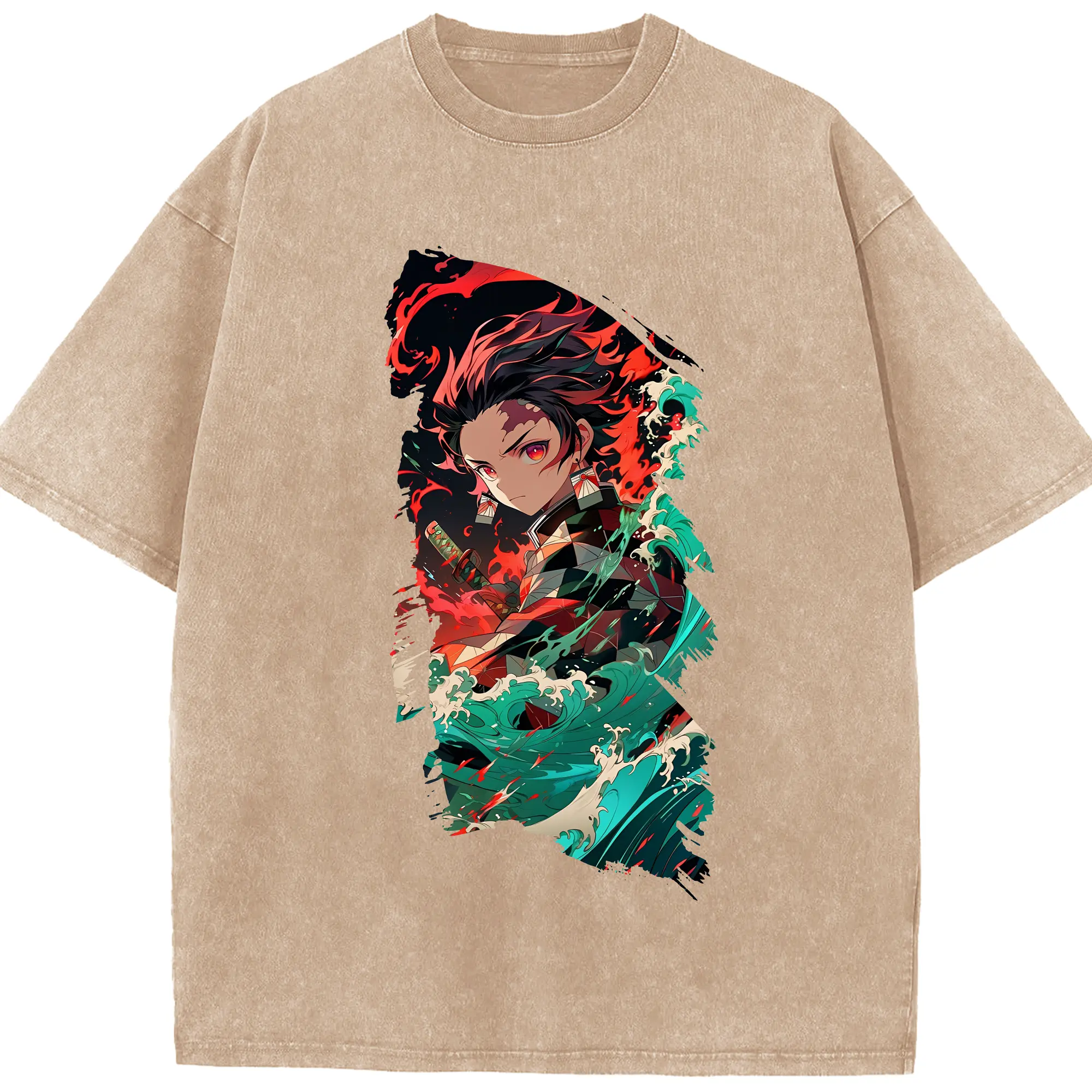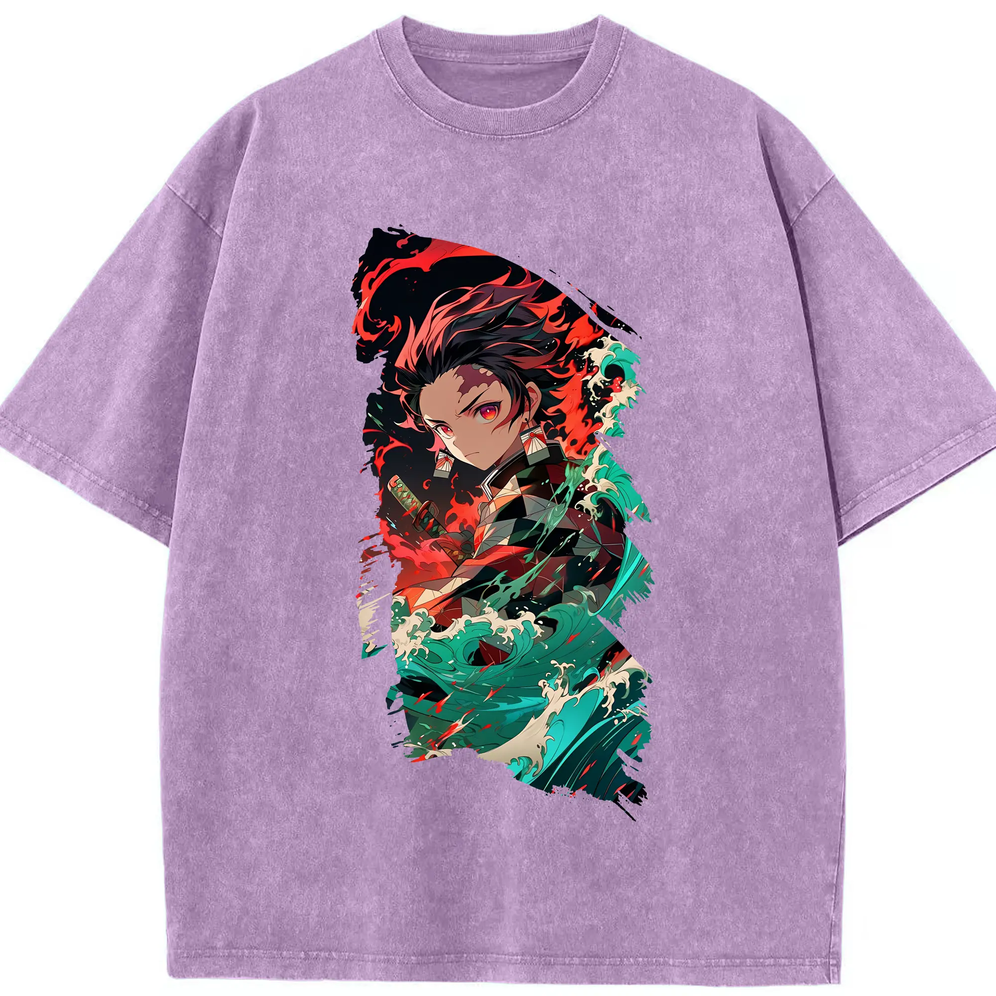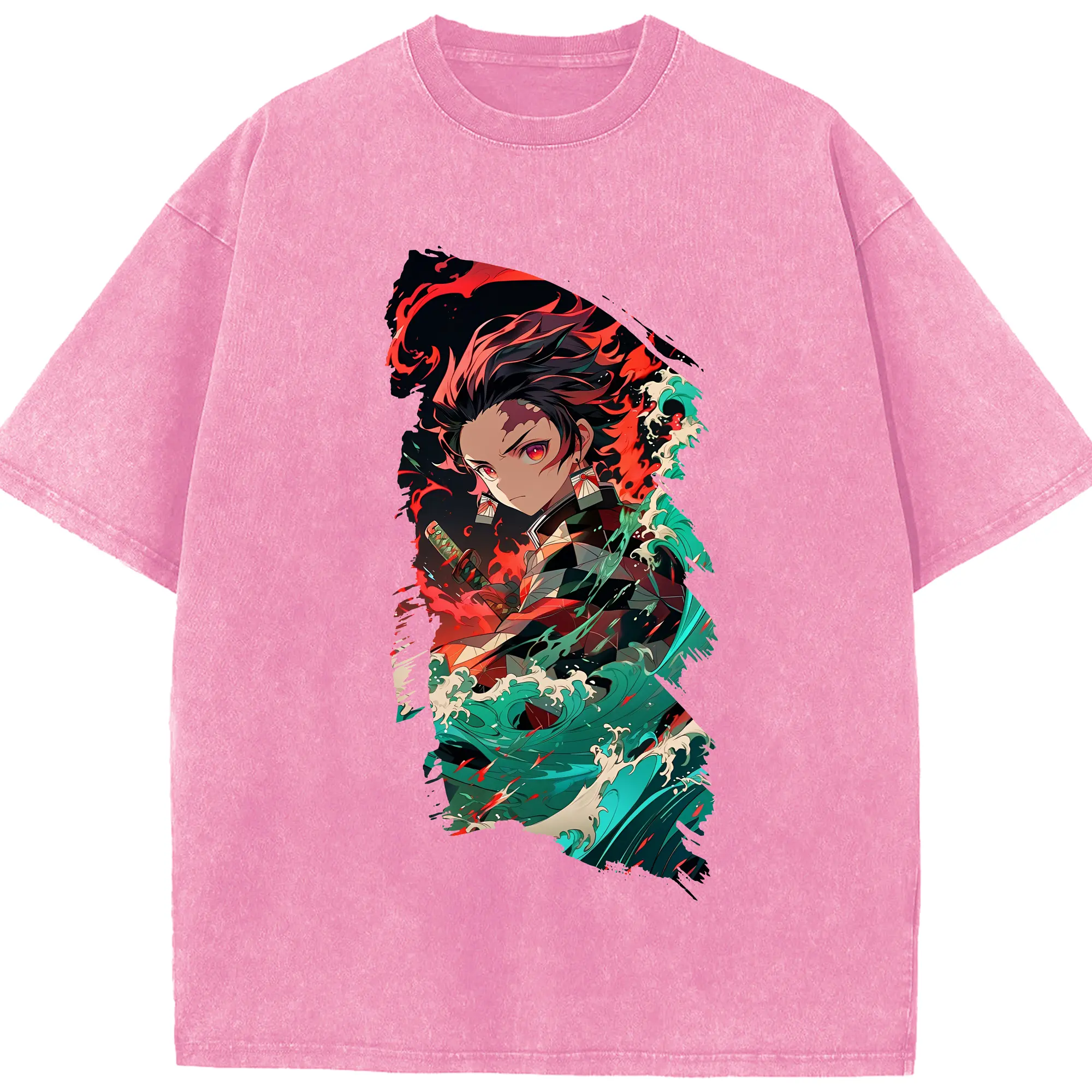 鬼滅の刃 グッズ,竈門 炭治郎 - 綿100% 半袖Tシャツ ・ フロントプリント ・ 快適 通気性 ・ 日常使い 散歩 スポーツ用
