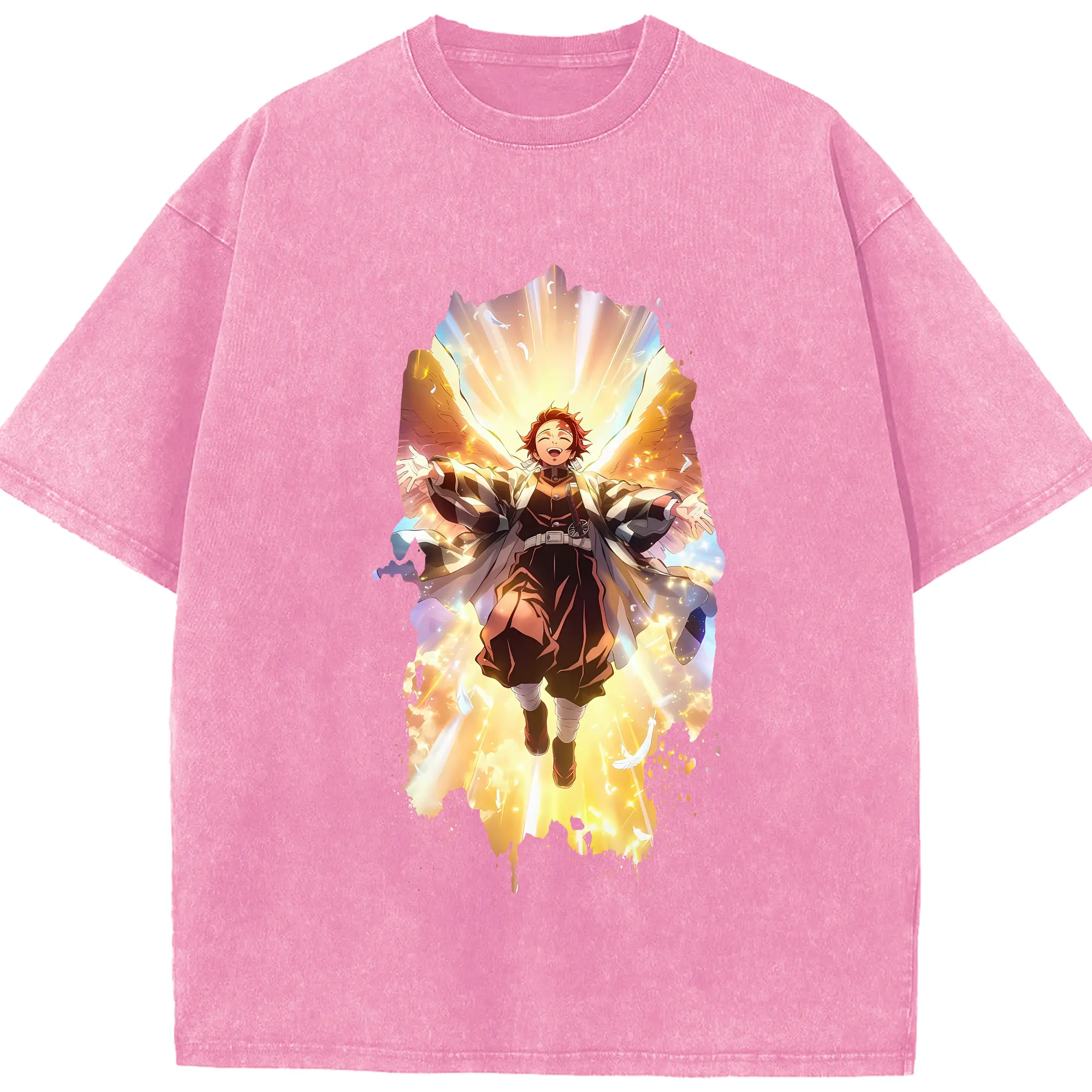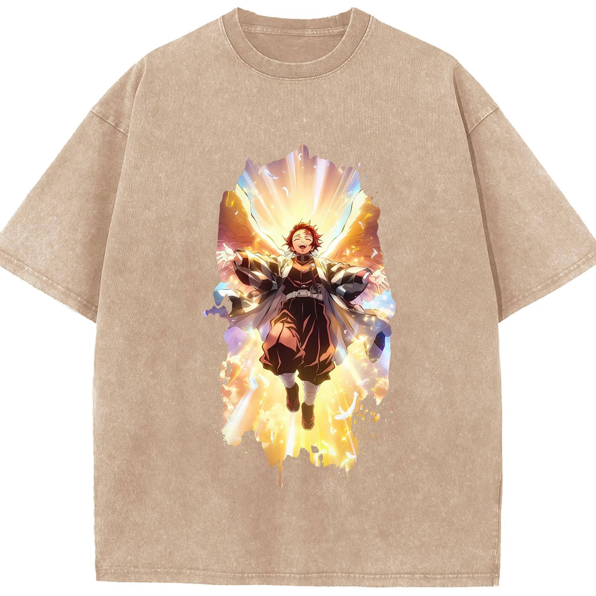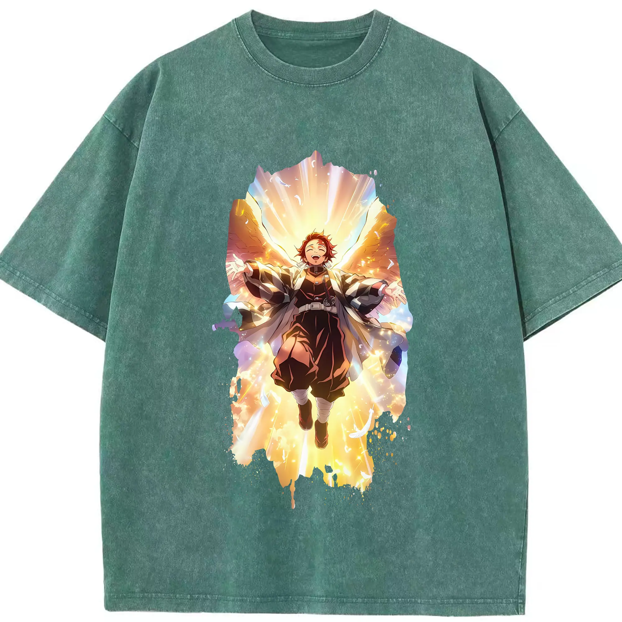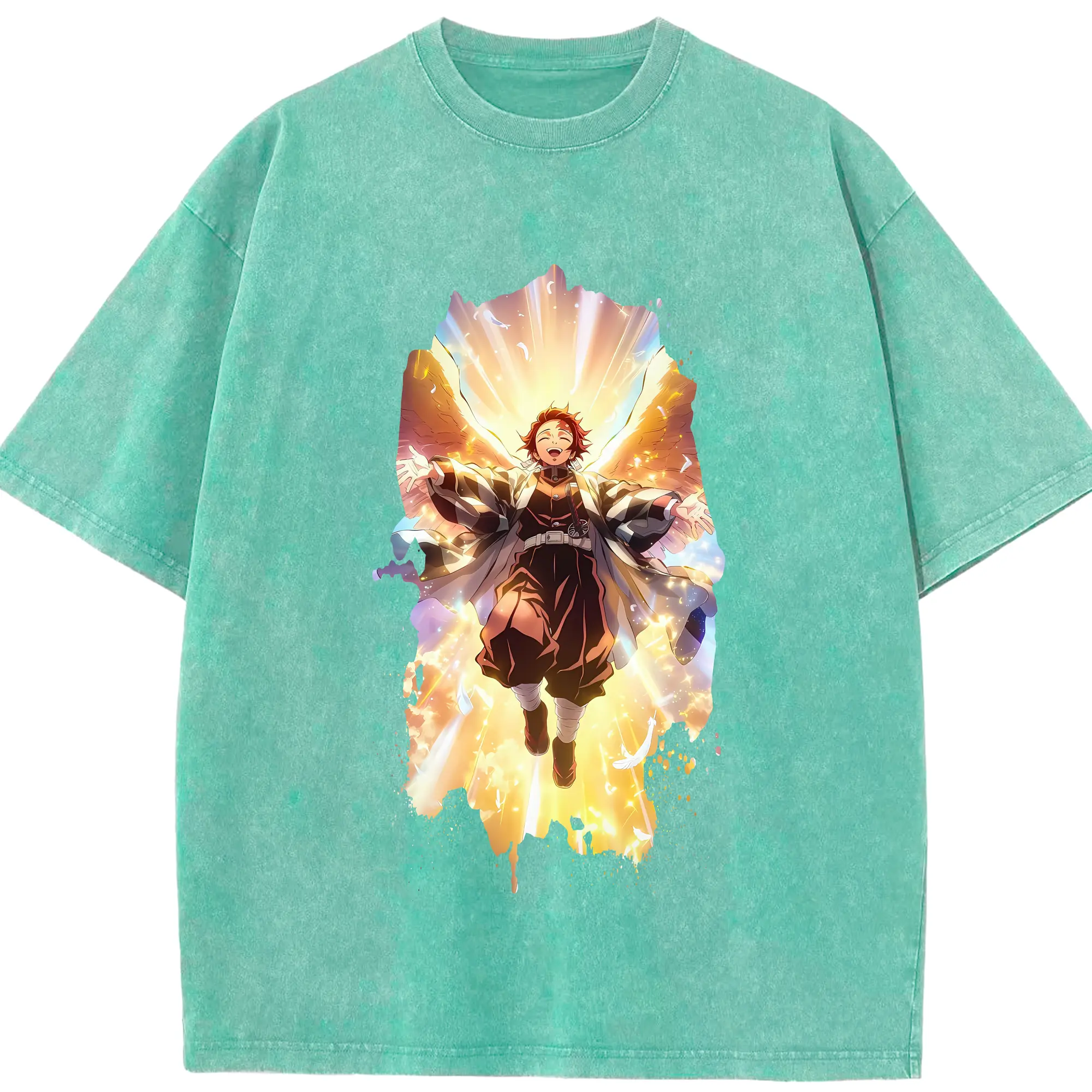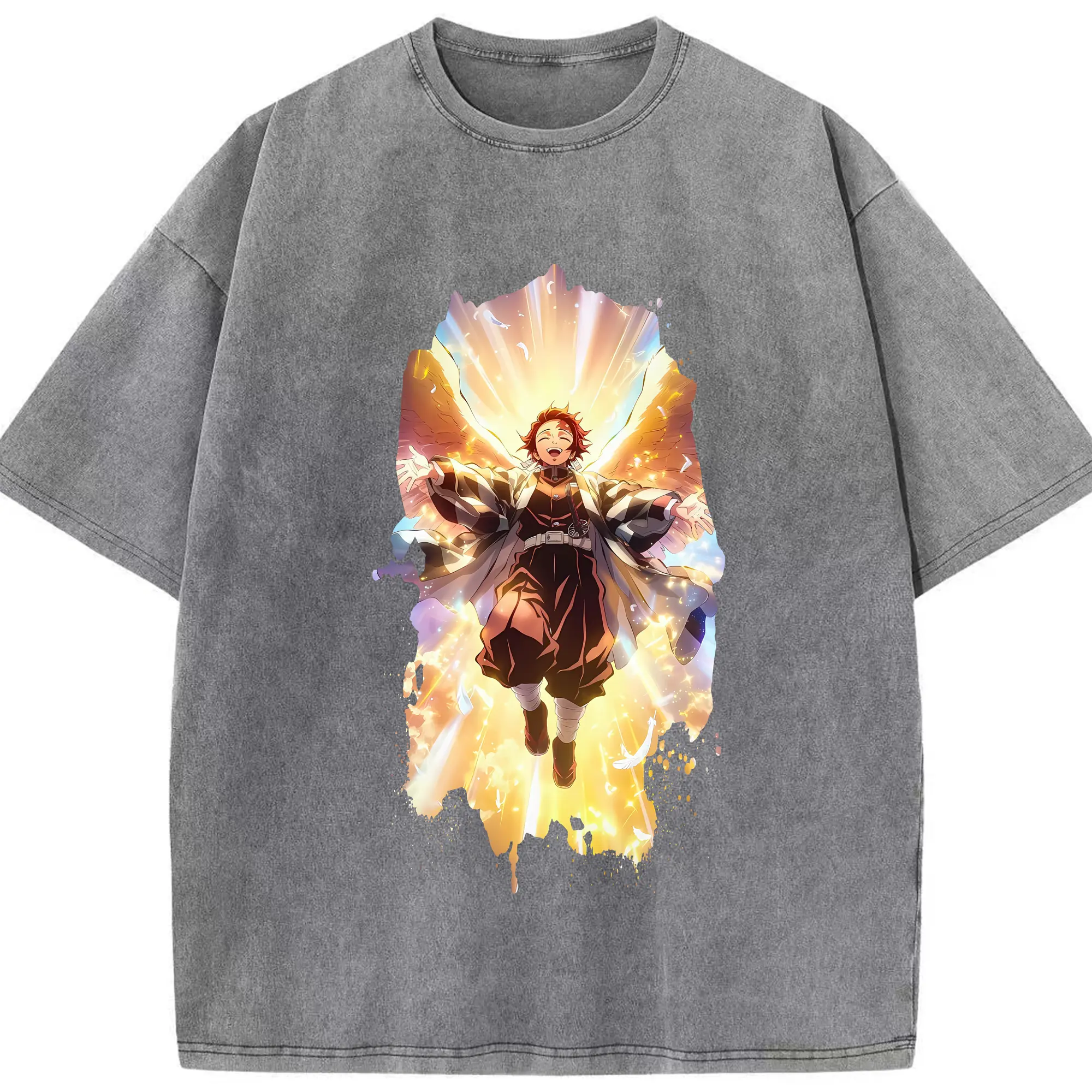 鬼滅の刃 グッズ,冨岡 義勇 - 綿100% ヴィンテージ風 半袖Tシャツ ・ フロントプリント ・ 柔らか肌触り ・ 通気性 快適 ・ スポーツ カジュアル 外出用