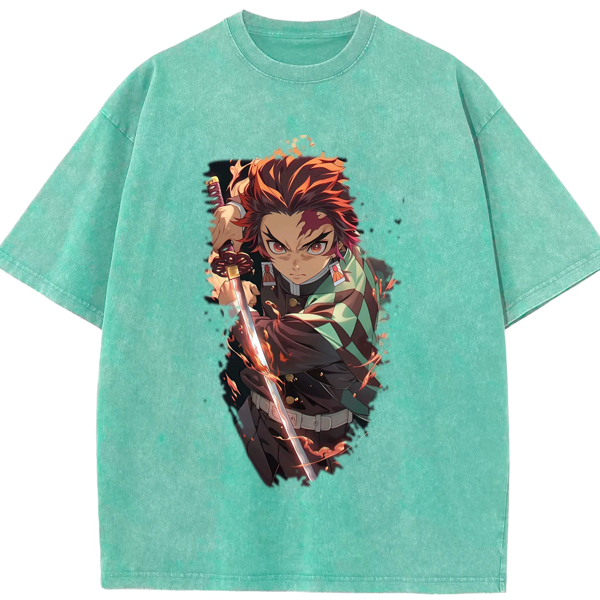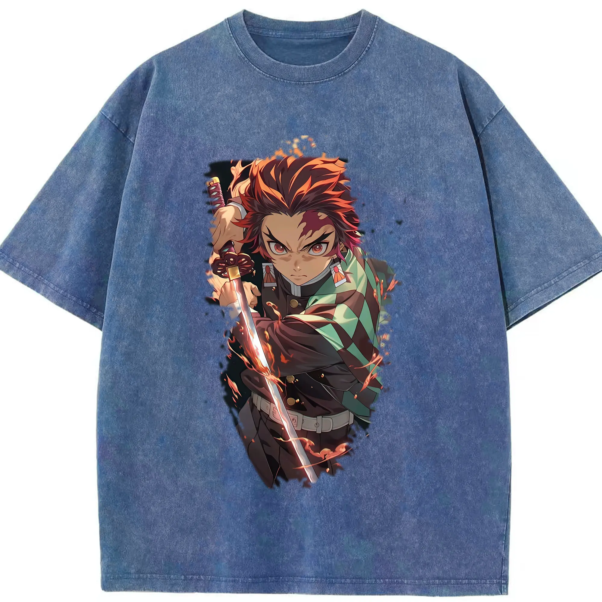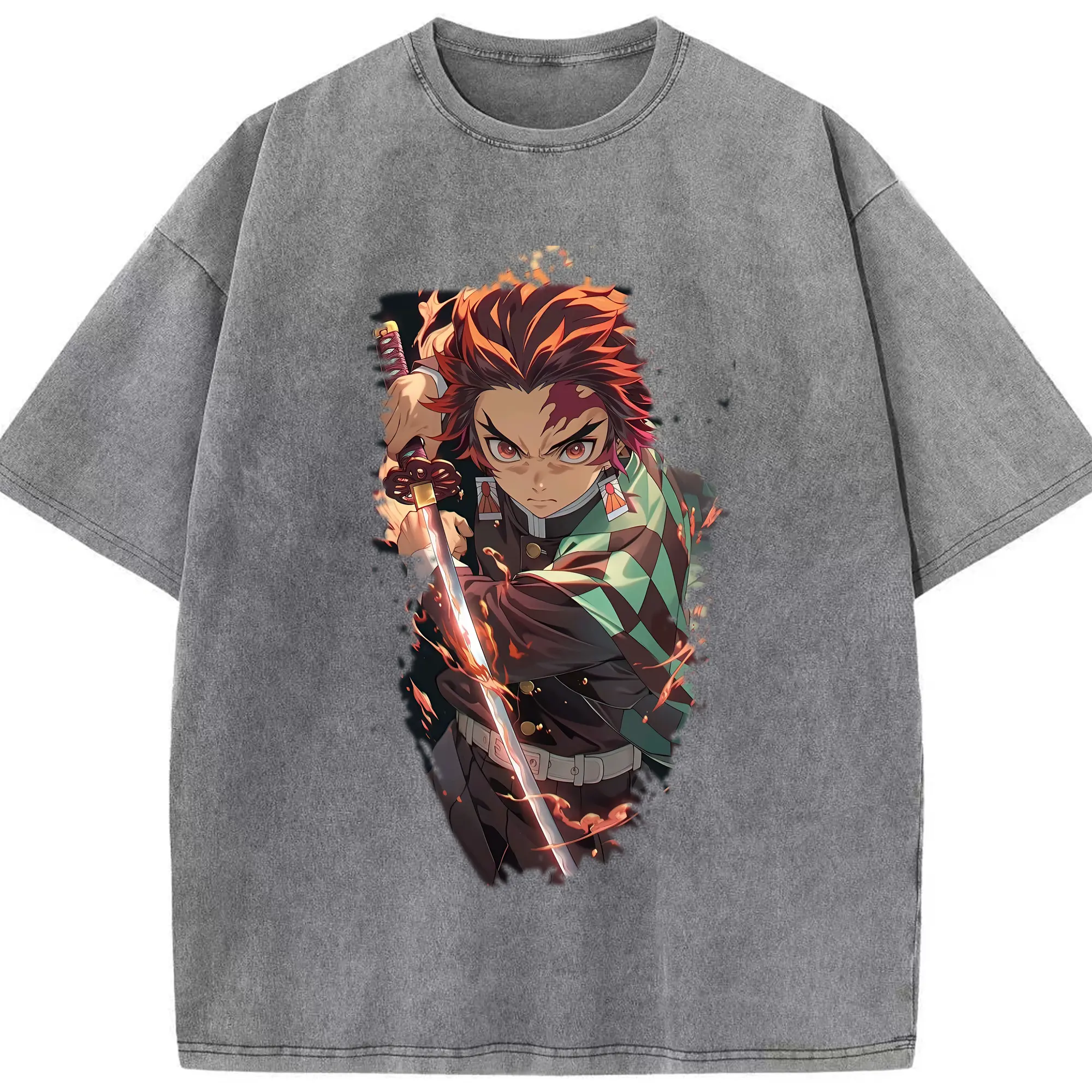 鬼滅の刃 グッズ,竈門 炭治郎 - 綿100% 半袖Tシャツ ・ フロントプリント ・ 快適 通気性 ・ 日常使い 散歩 スポーツ用