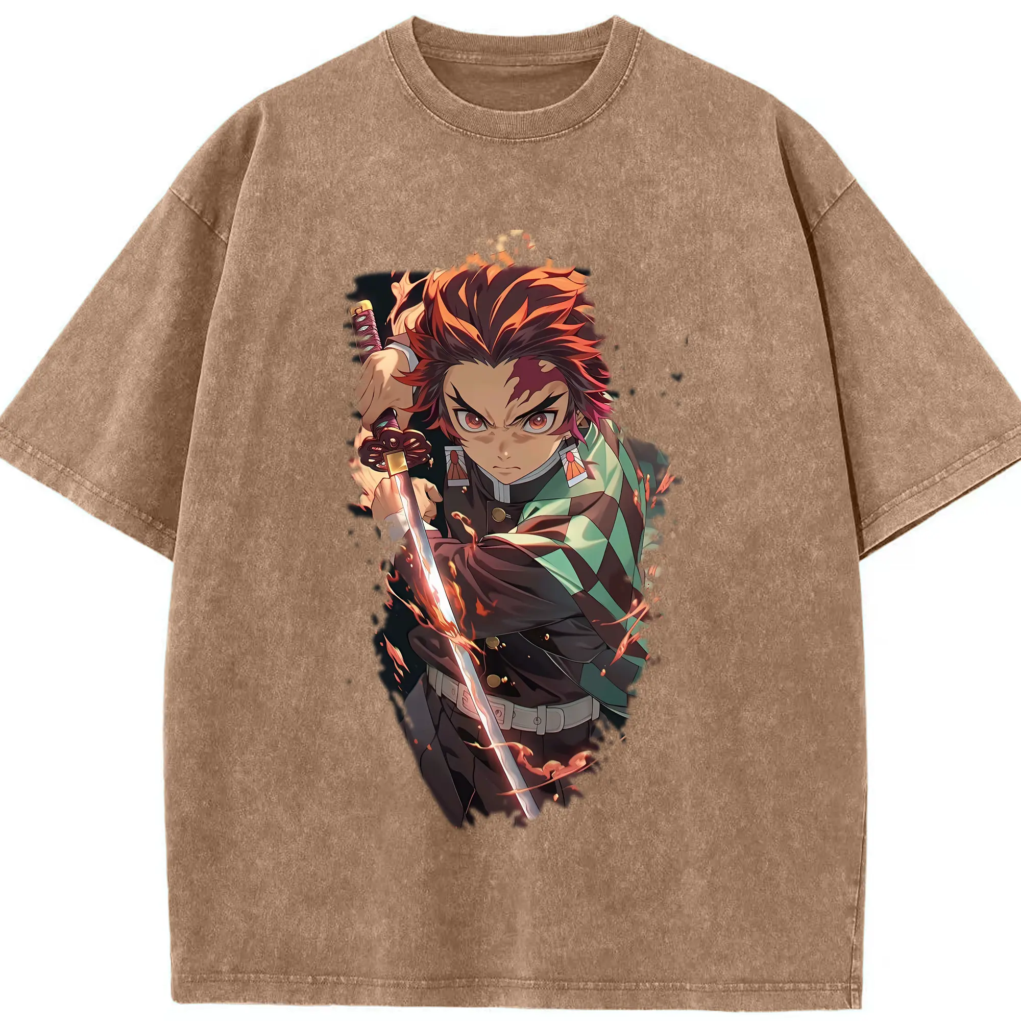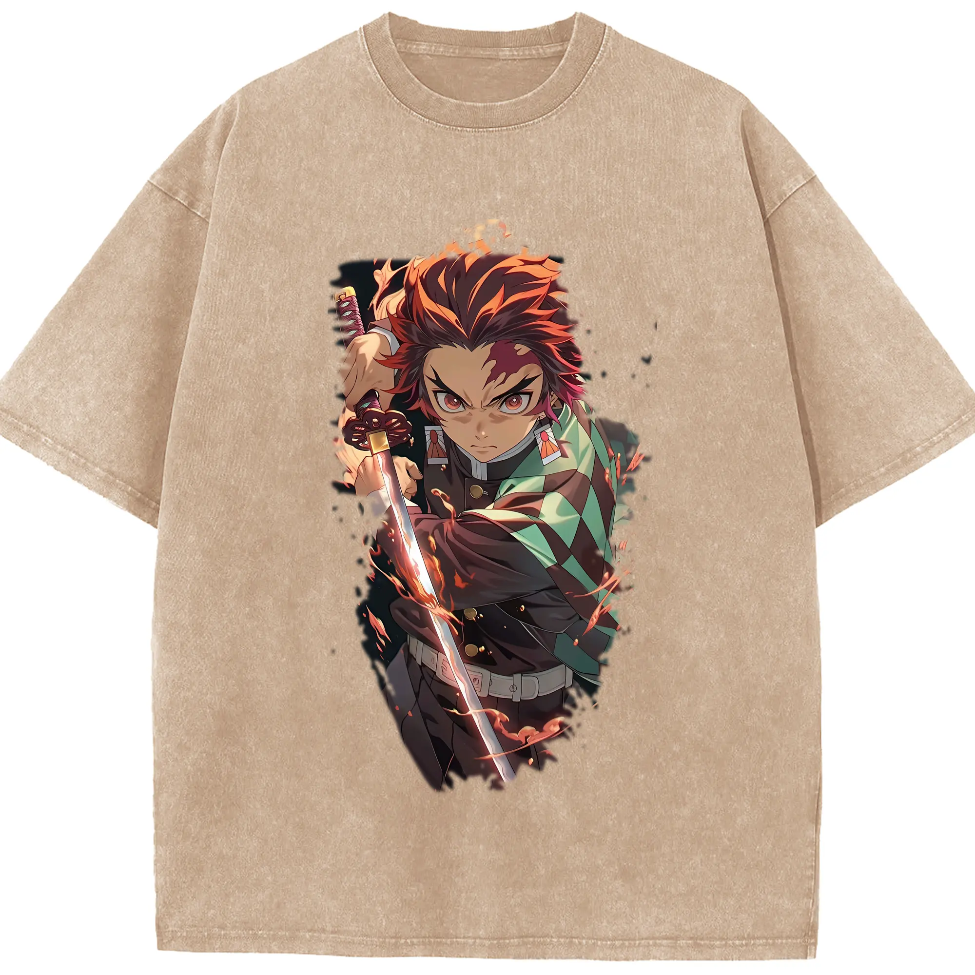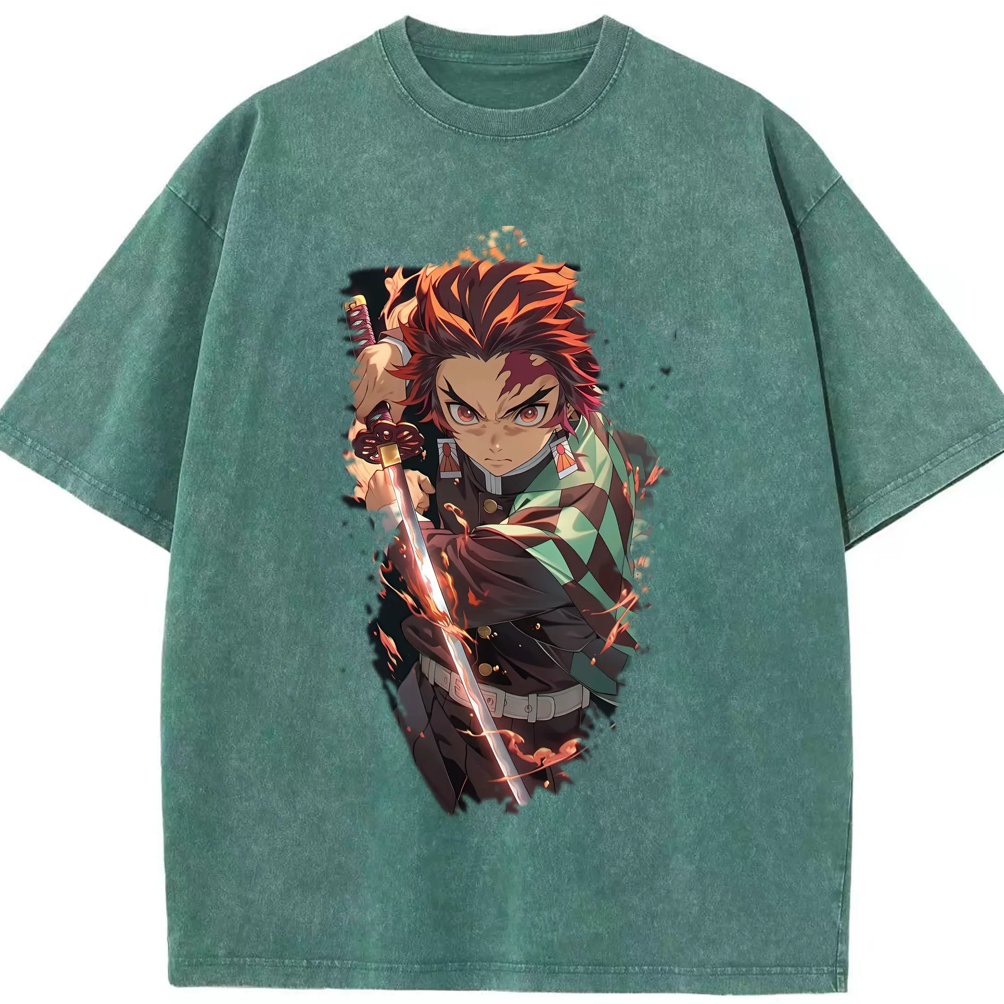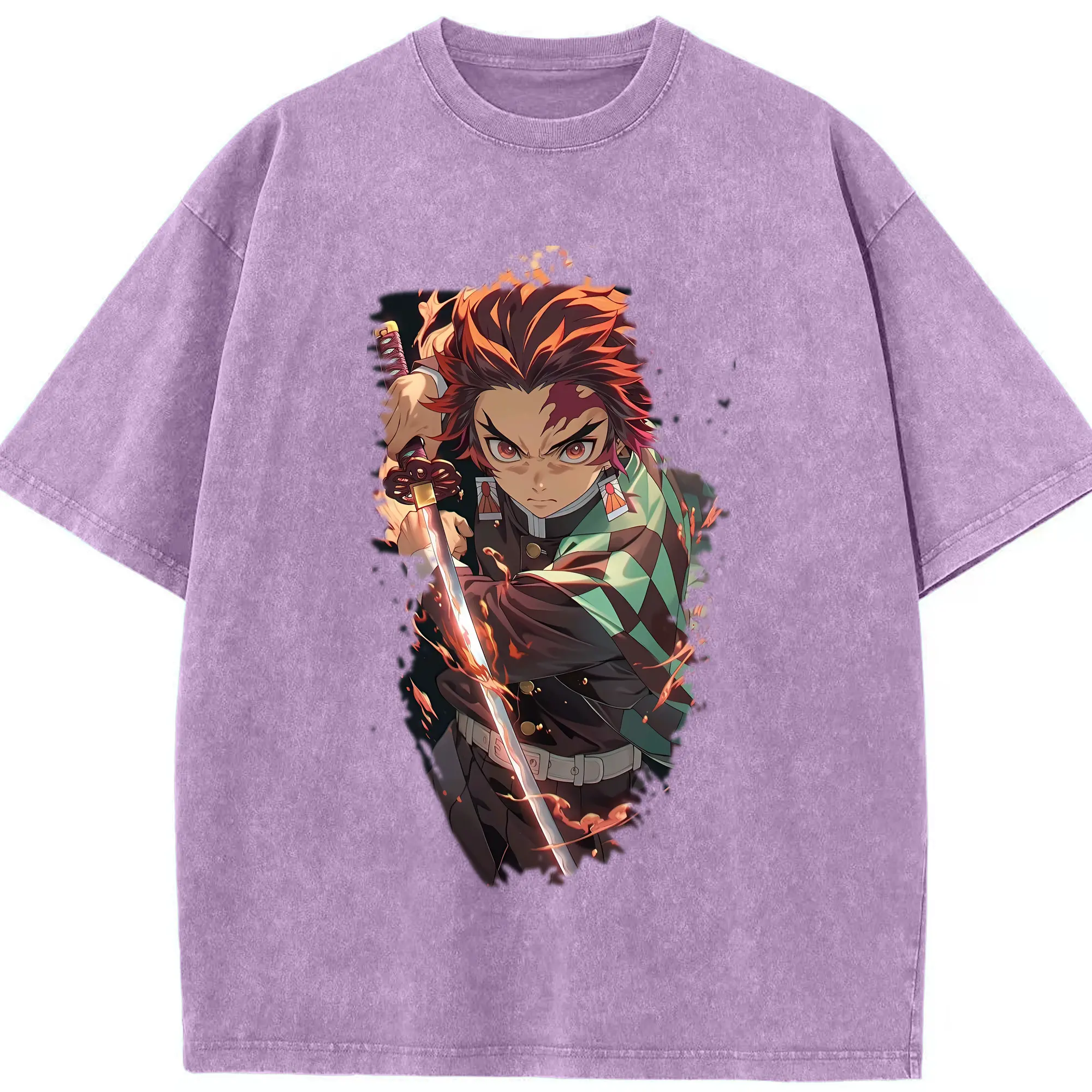 鬼滅の刃 グッズ,竈門 炭治郎 - 綿100% 半袖Tシャツ ・ フロントプリント ・ 快適 通気性 ・ 日常使い 散歩 スポーツ用