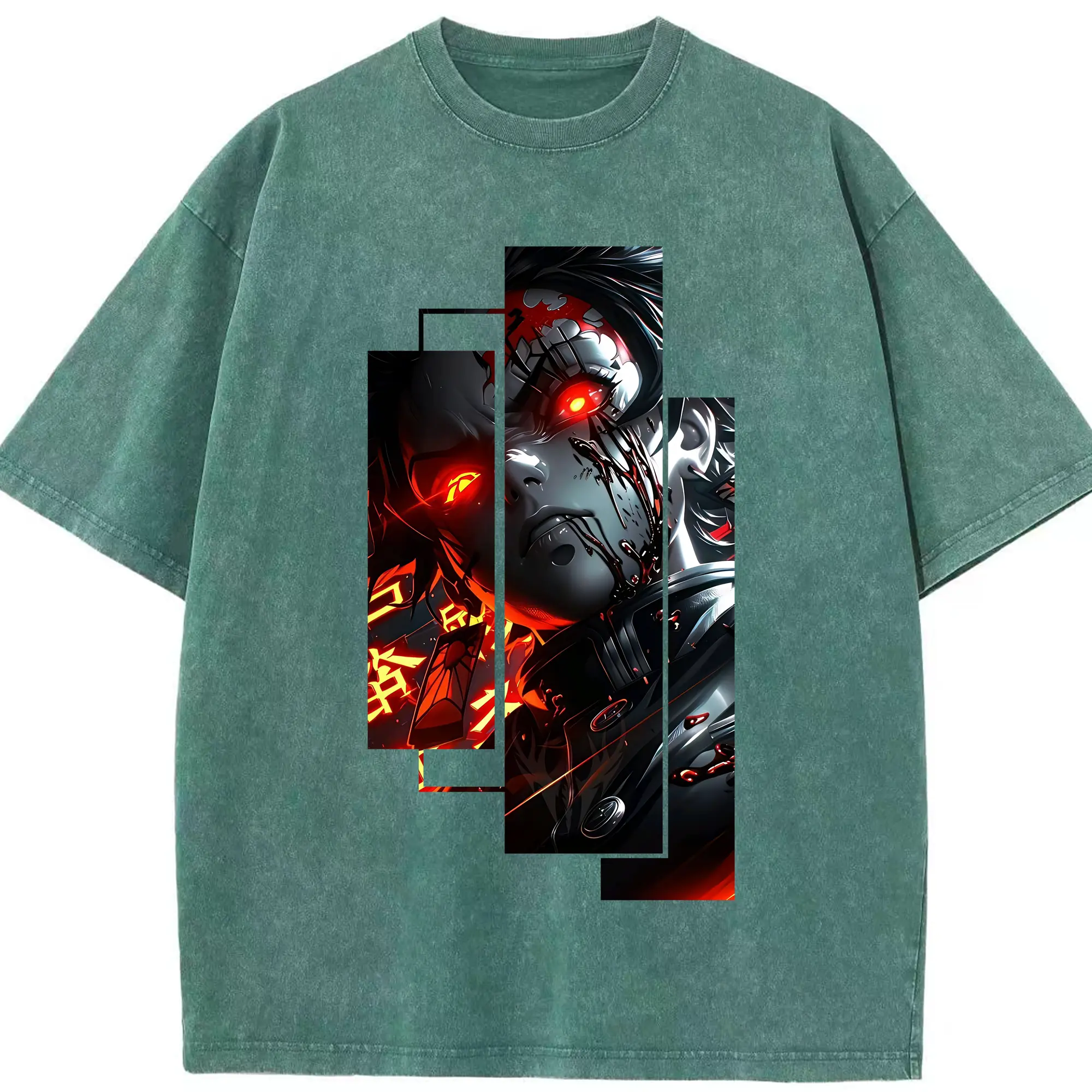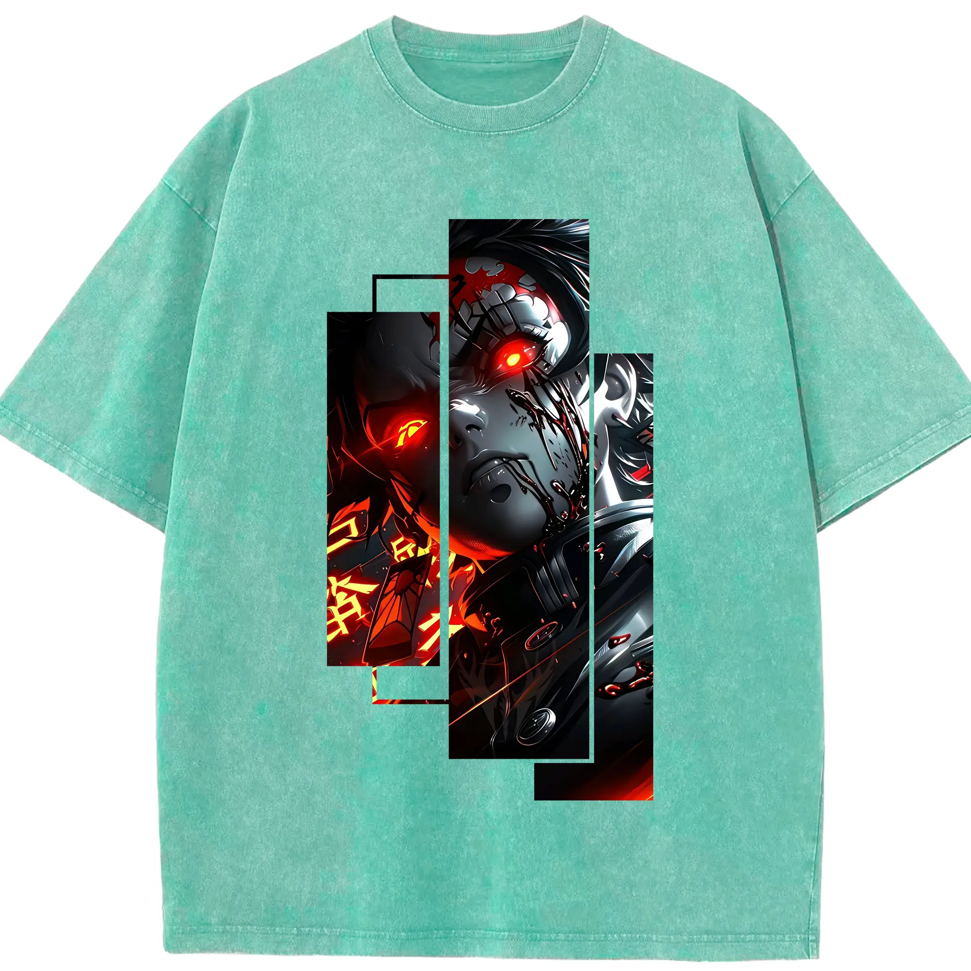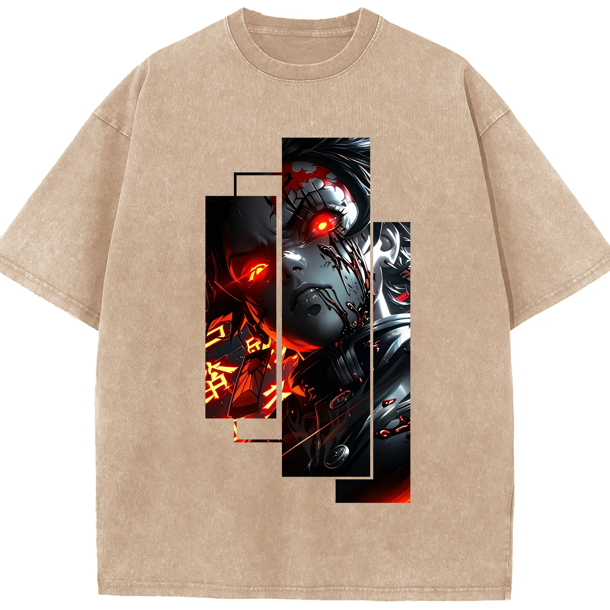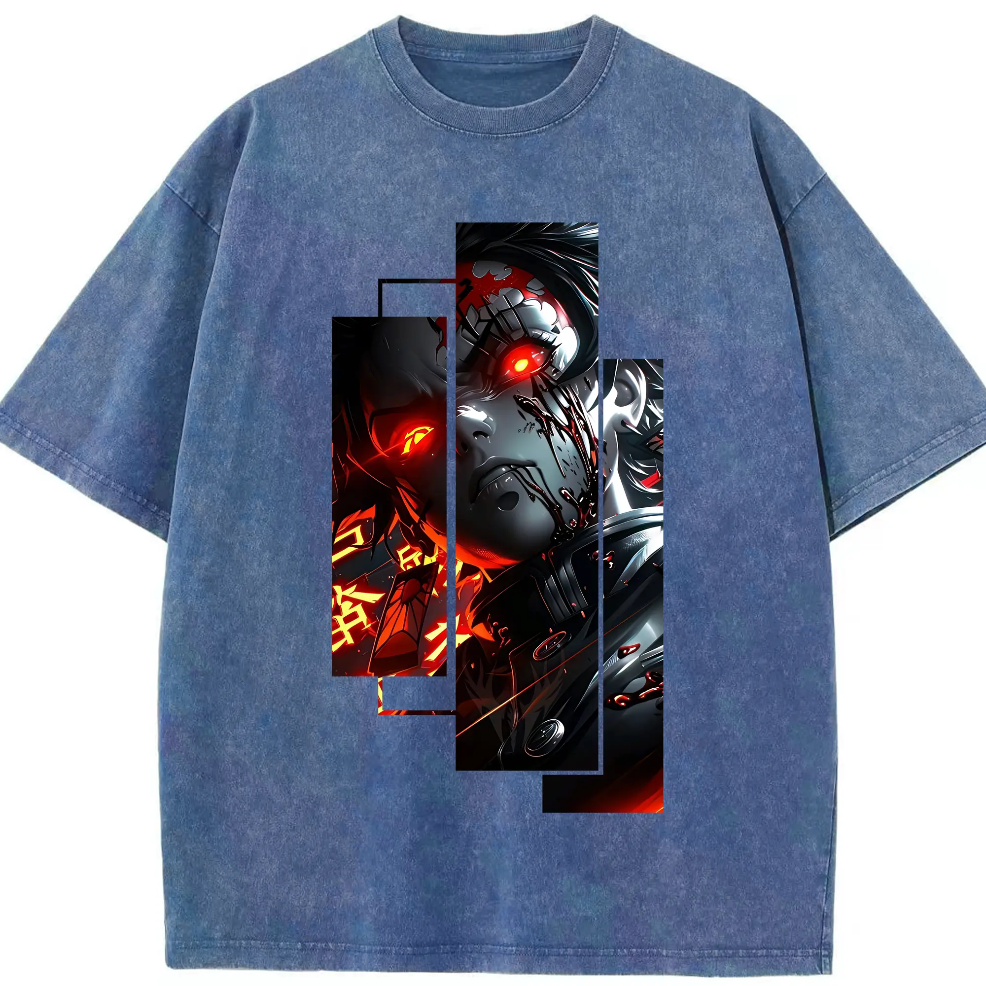 鬼滅の刃 グッズ,煉獄 杏寿郎 - 綿100% ヴィンテージ風 半袖Tシャツ ・ フロントプリント ・ 柔らか肌触り ・ 通気性 快適 ・ スポーツ カジュアル 外出用
