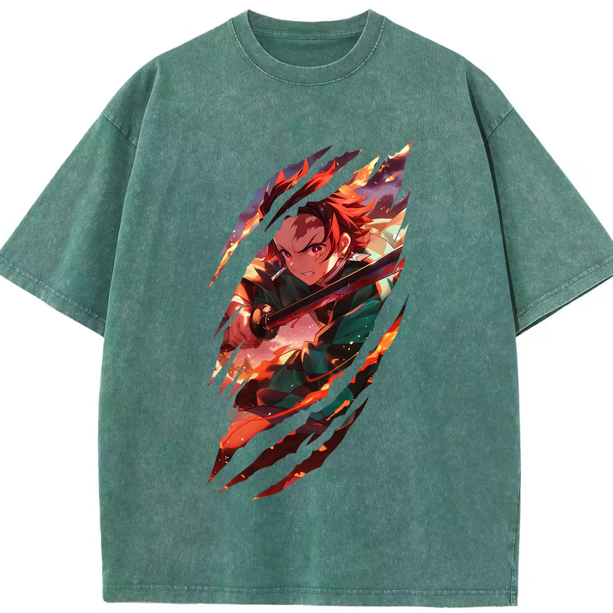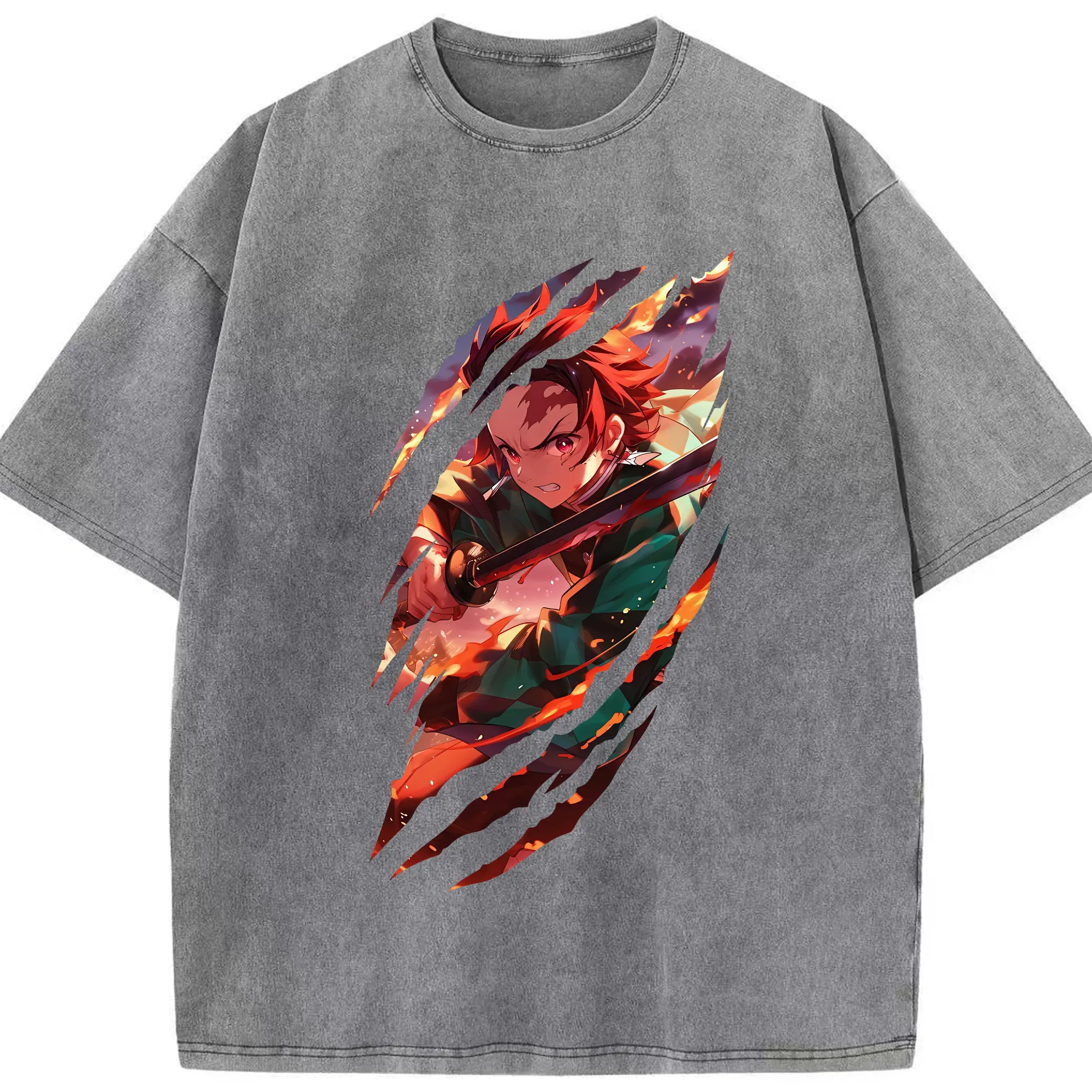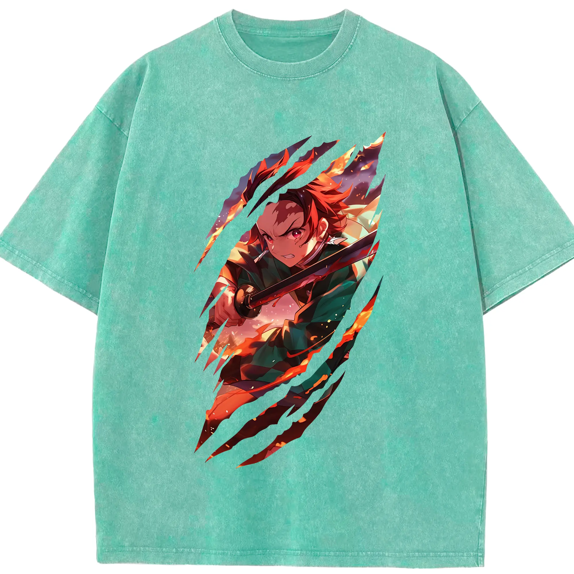 鬼滅の刃 グッズ,竈門 炭治郎 - 綿100% 半袖Tシャツ ・ フロントプリント ・ 快適 通気性 ・ 日常使い 散歩 スポーツ用