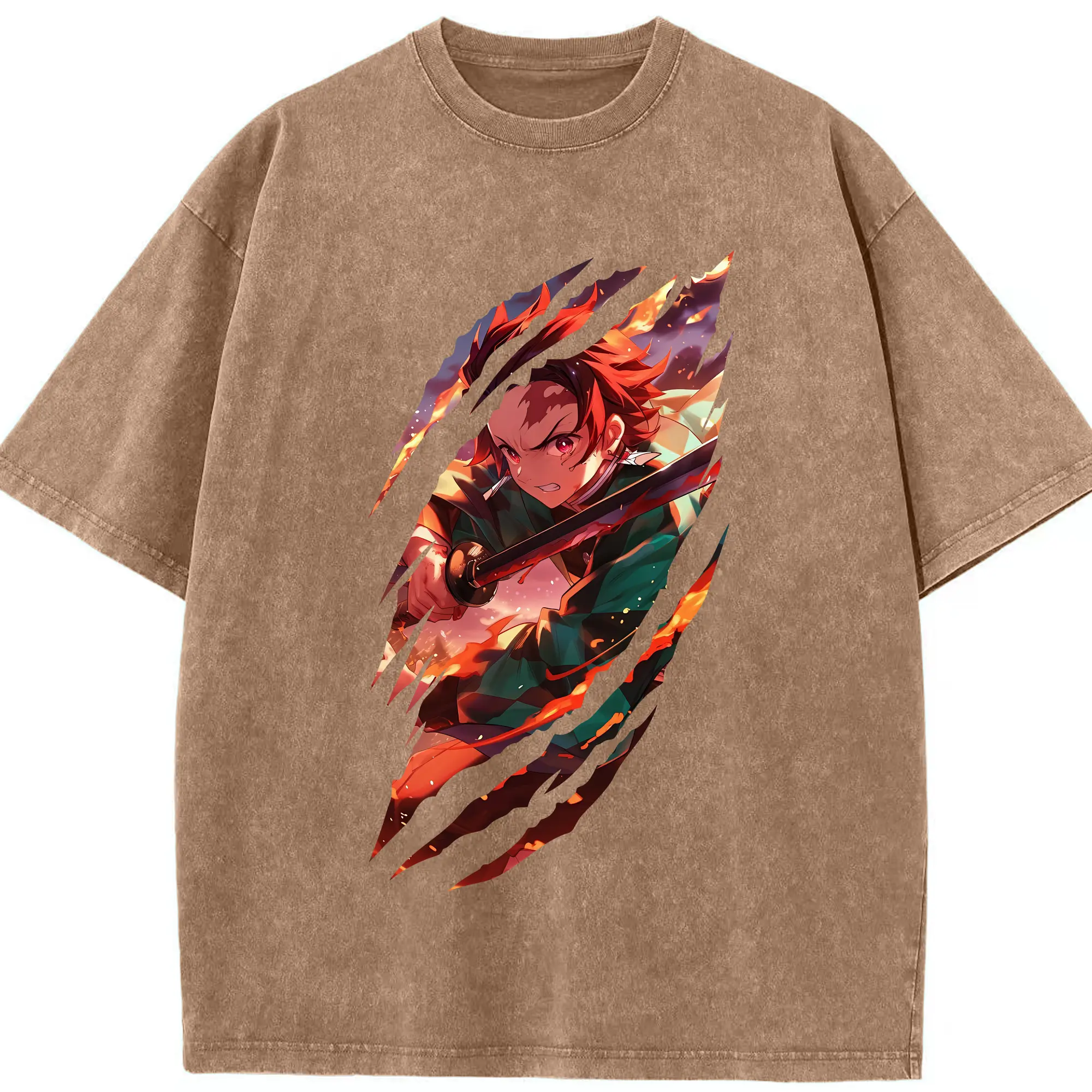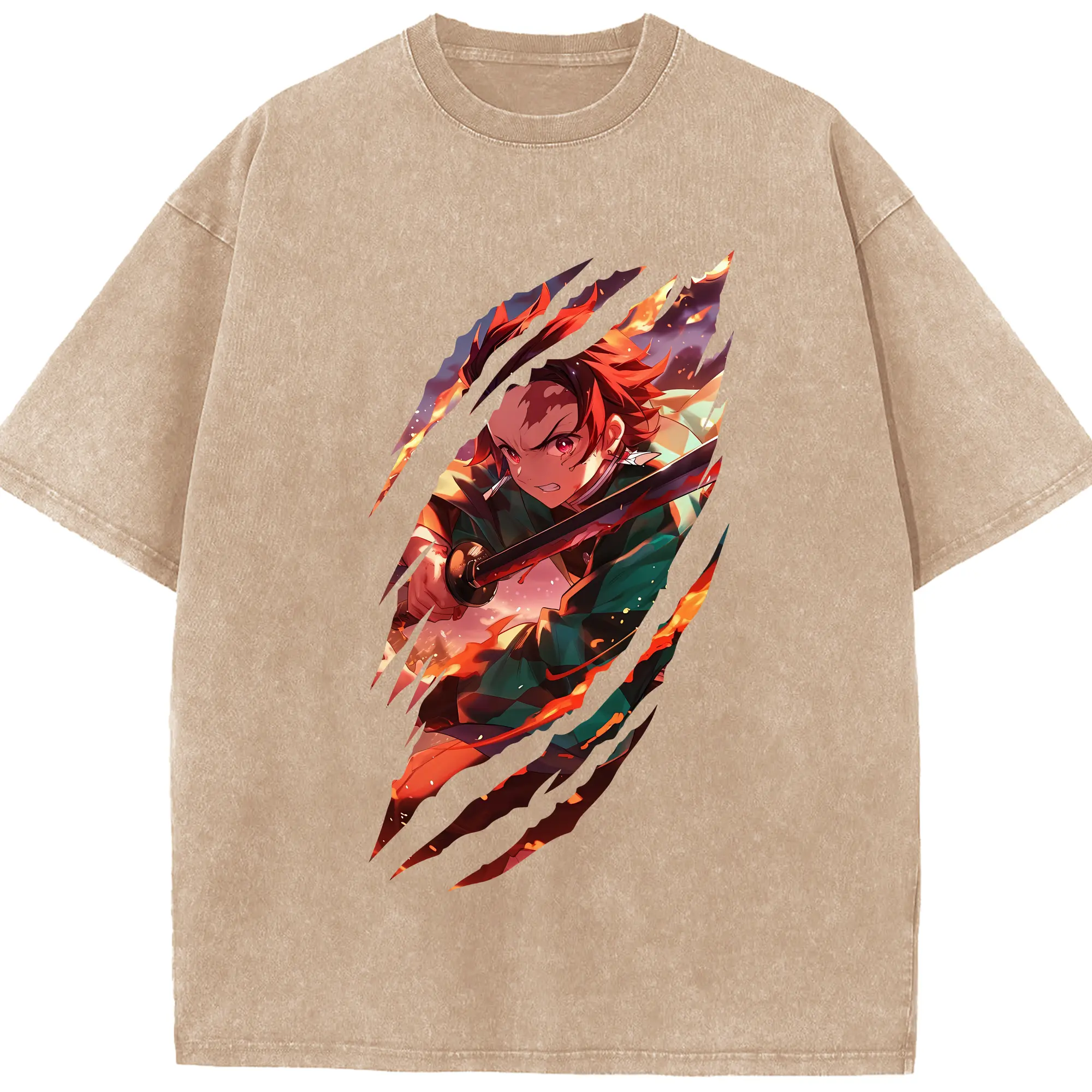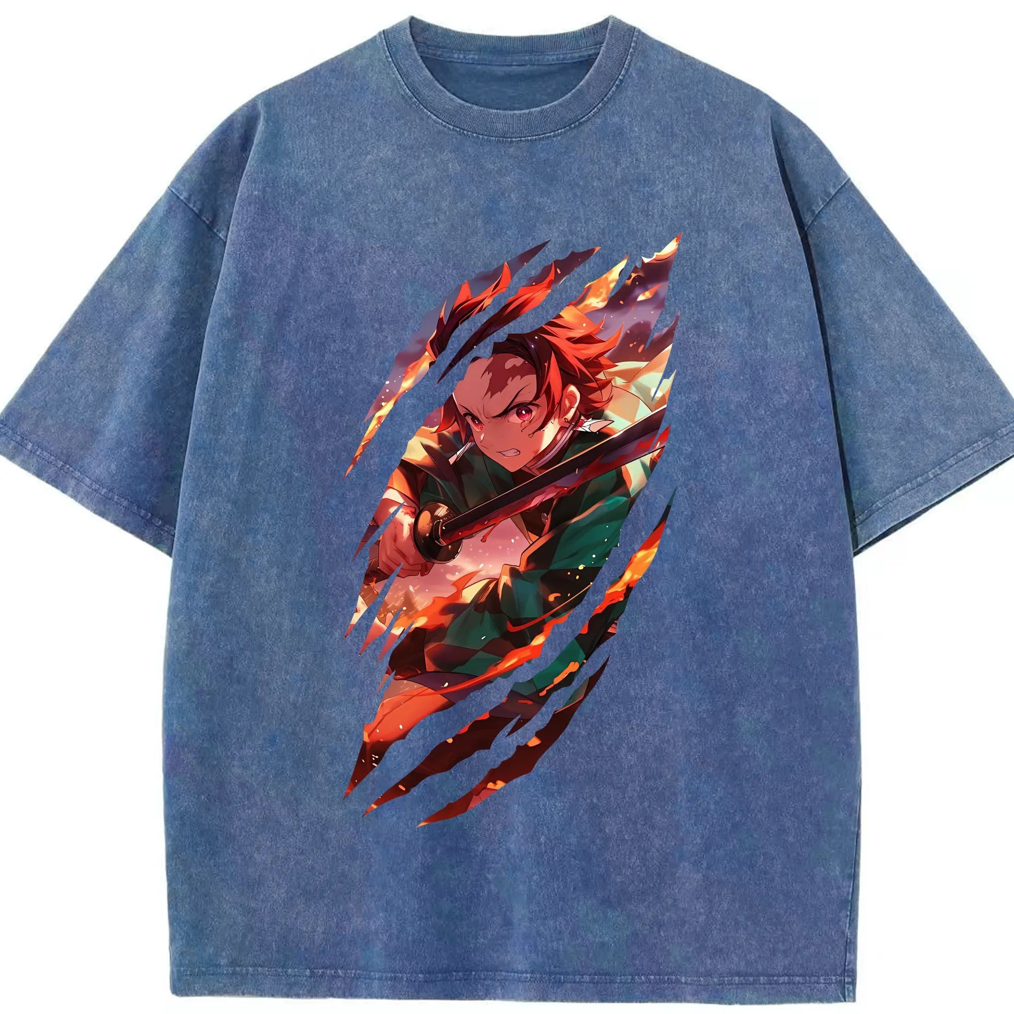 鬼滅の刃 グッズ,竈門 炭治郎 - 綿100% 半袖Tシャツ ・ フロントプリント ・ 快適 通気性 ・ 日常使い 散歩 スポーツ用