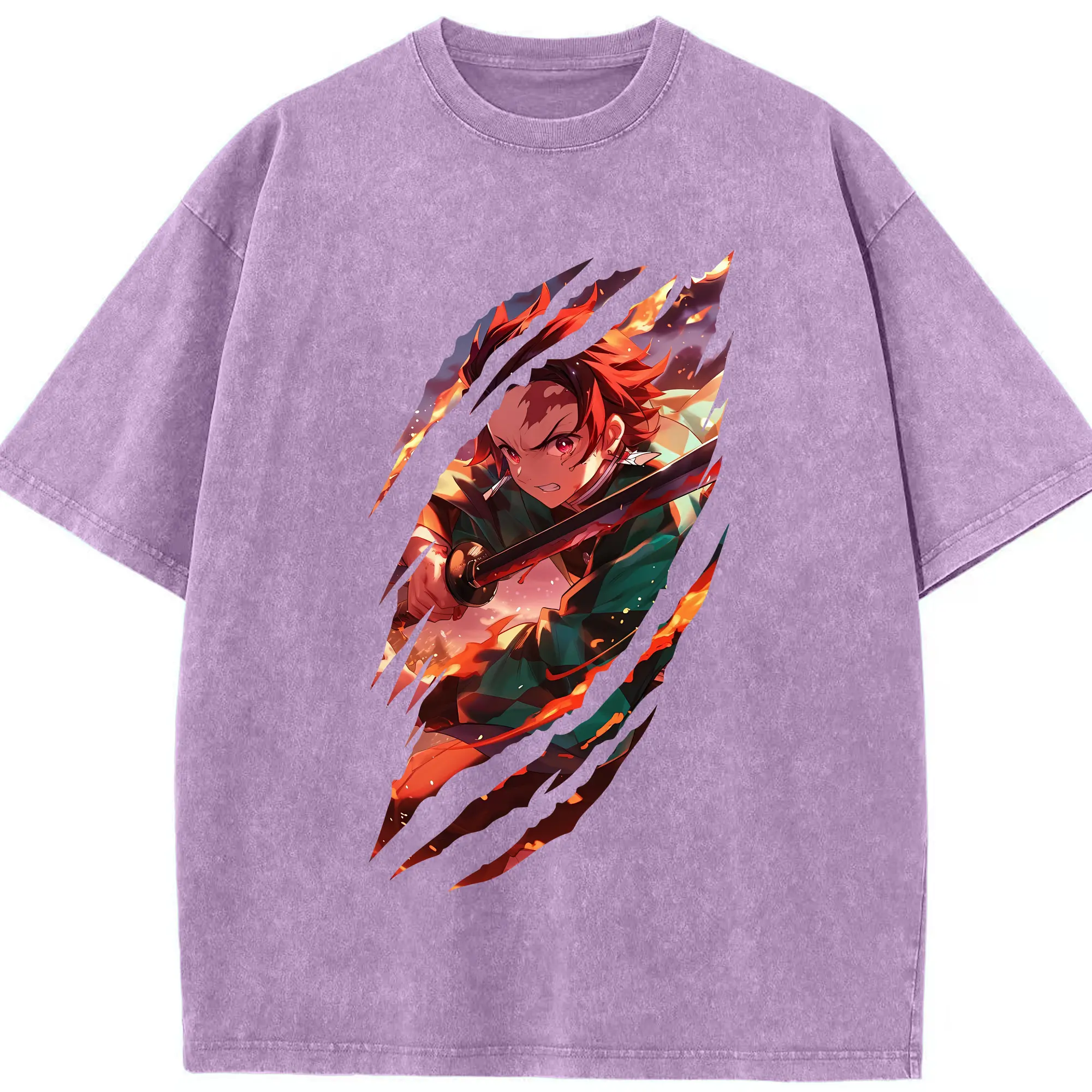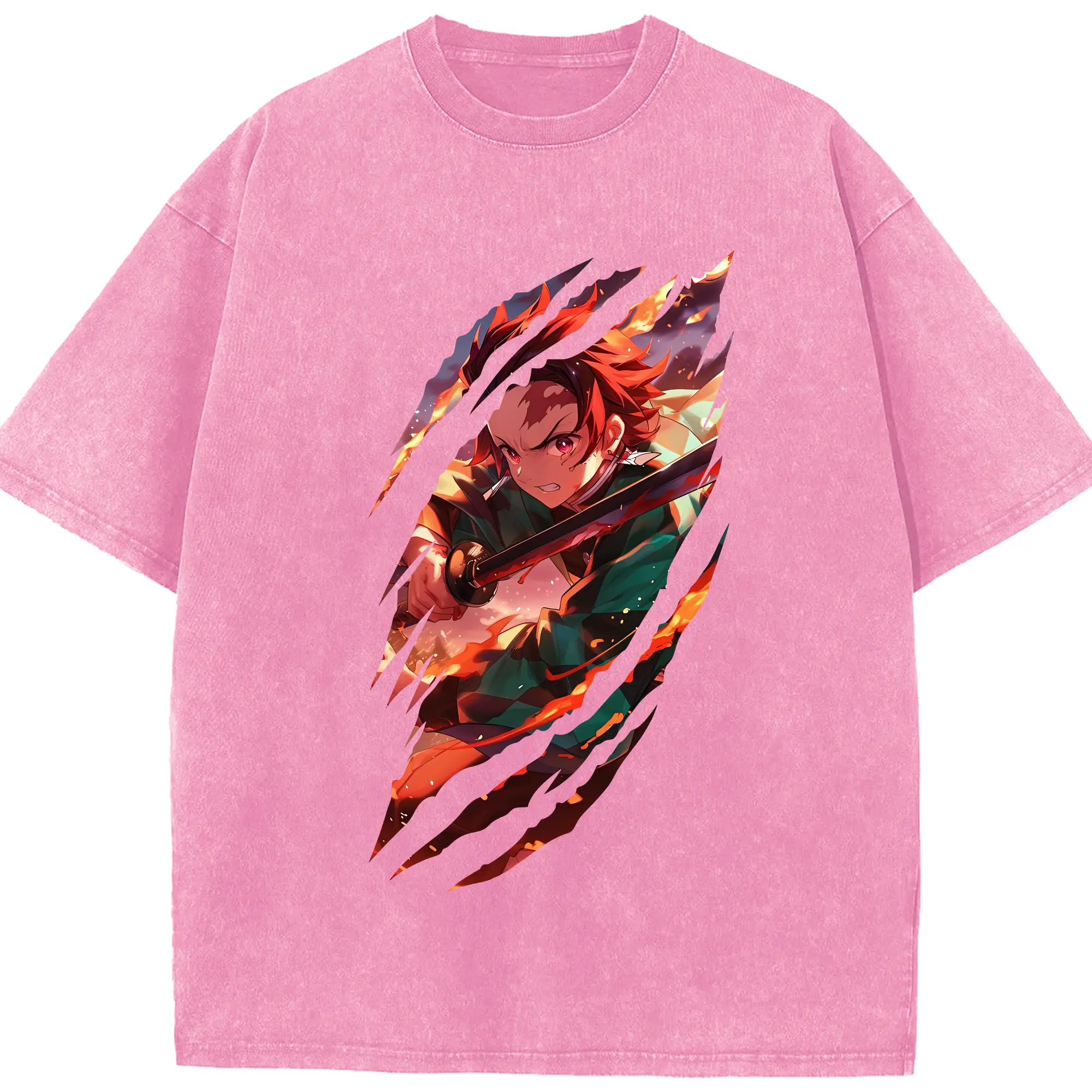 鬼滅の刃 グッズ,竈門 炭治郎 - 綿100% 半袖Tシャツ ・ バックプリント ・ 快適 通気性 ・ 日常使い 散歩 スポーツ用