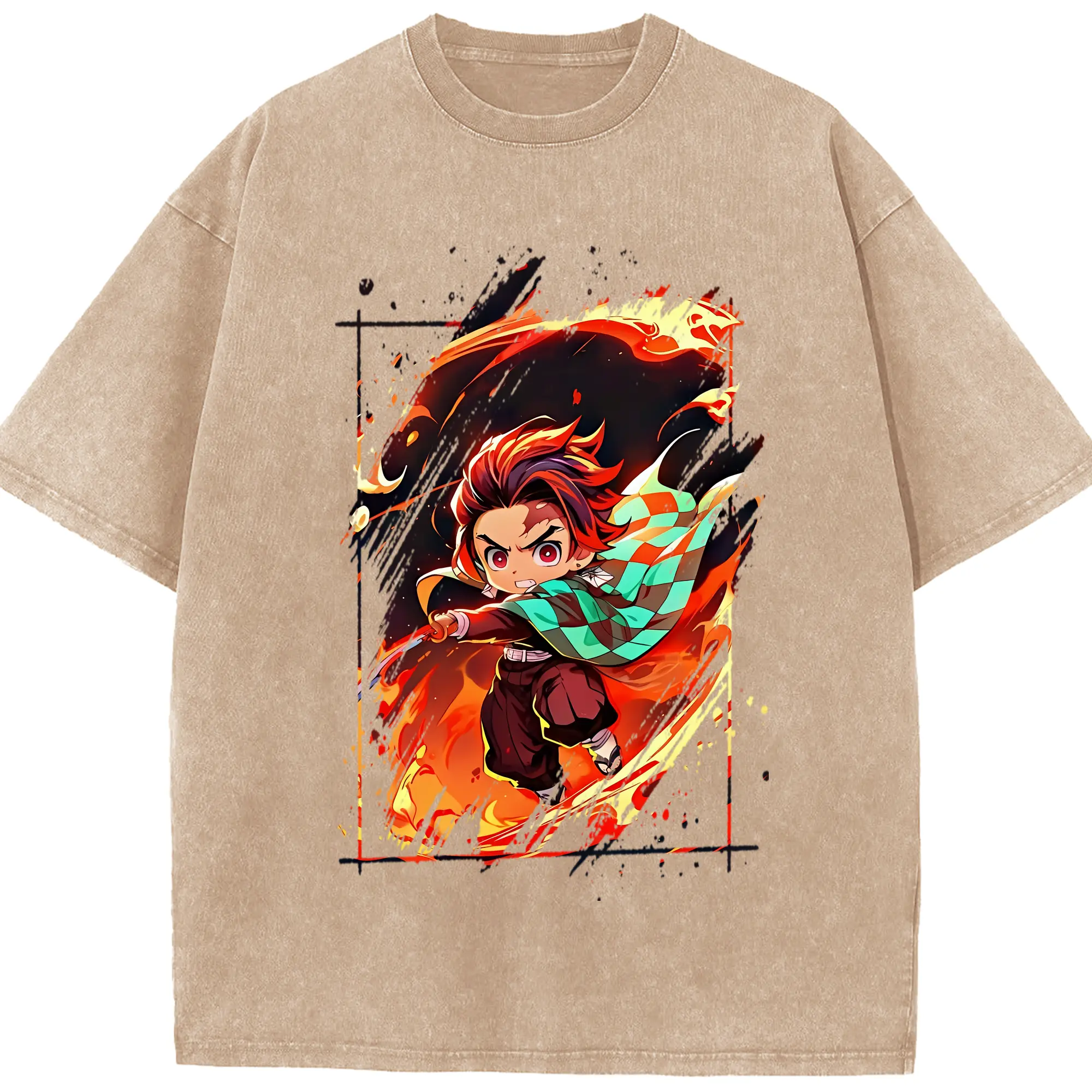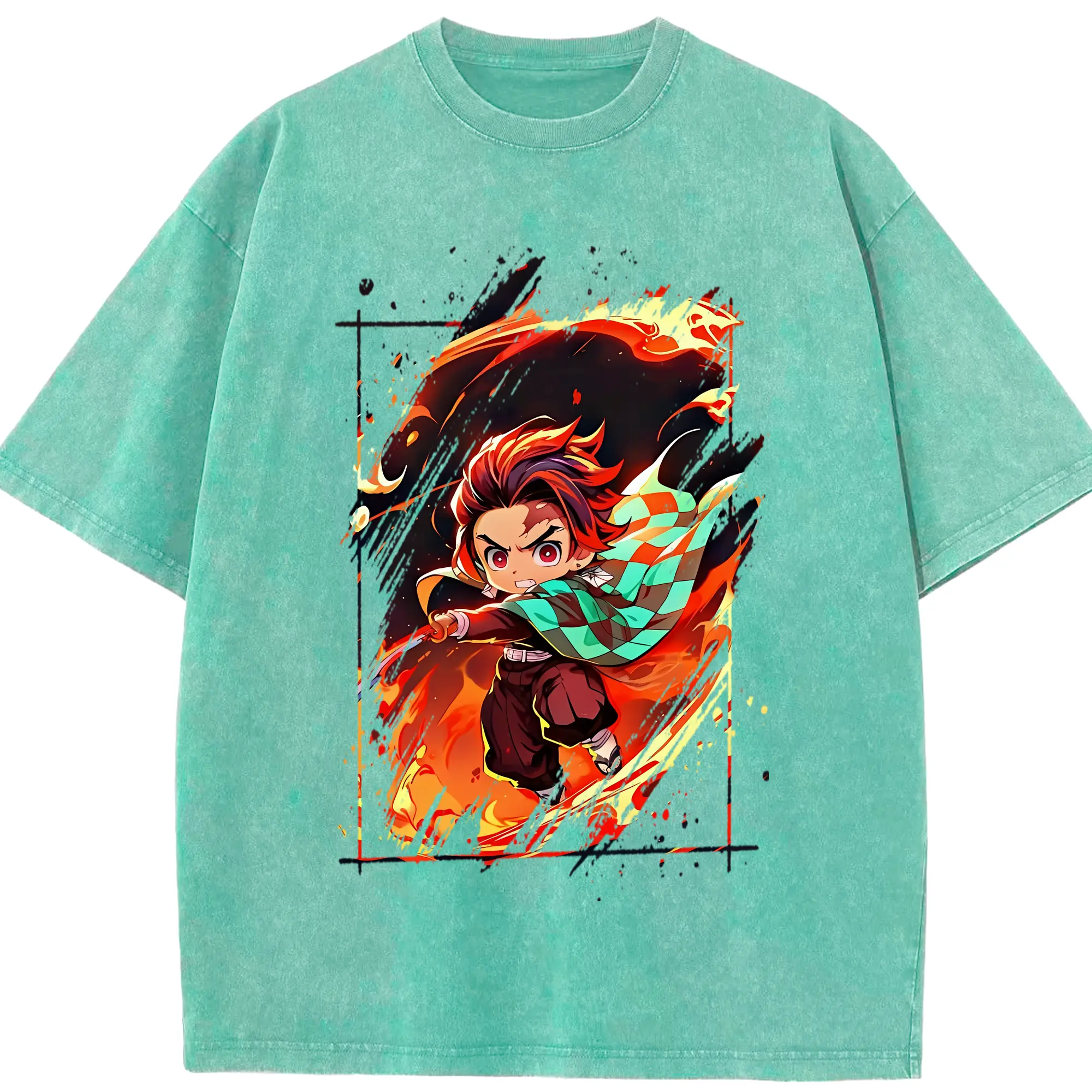 鬼滅の刃 グッズ,竈門 炭治郎 - 綿100% 半袖Tシャツ ・ フロントプリント ・ 快適 通気性 ・ 日常使い 散歩 スポーツ用
