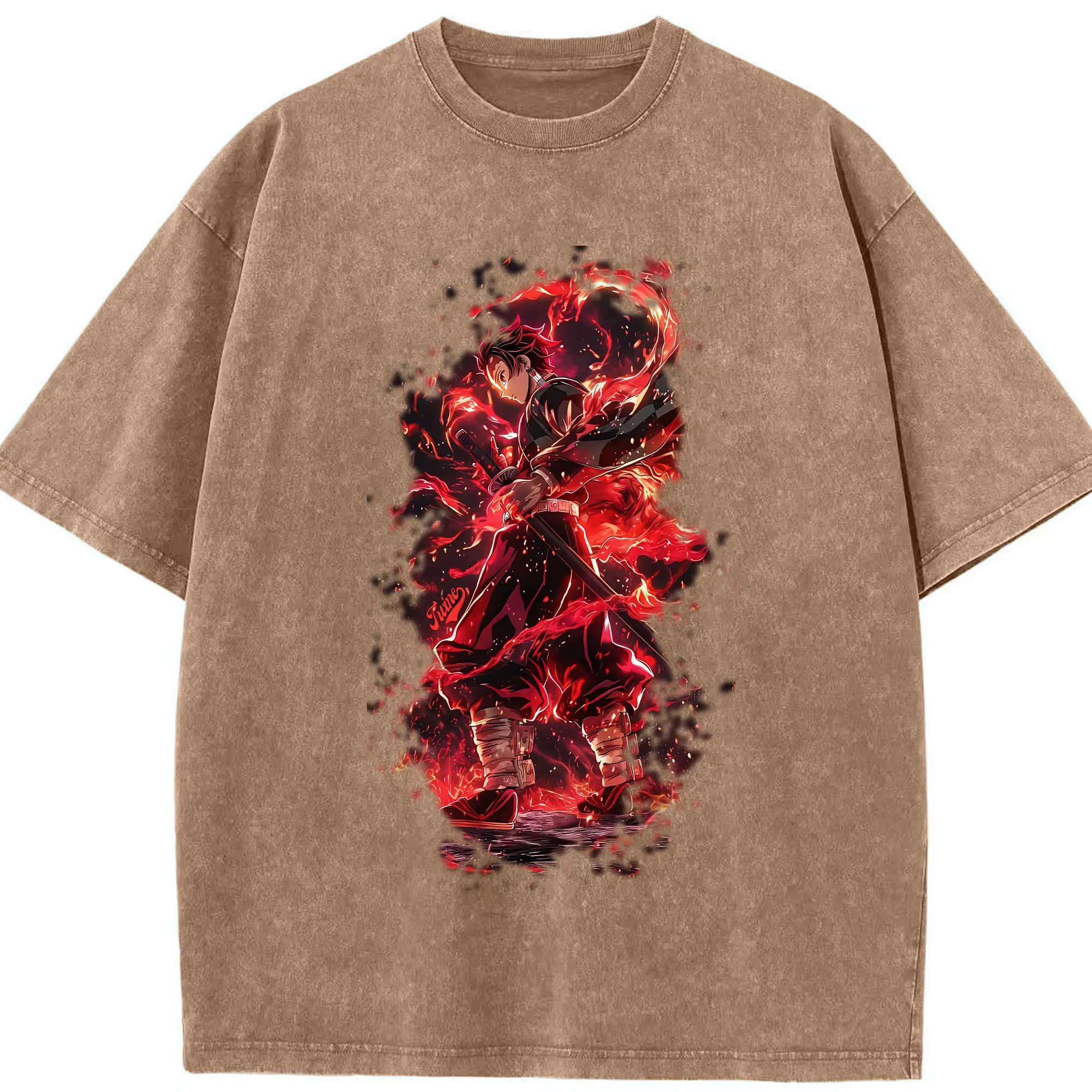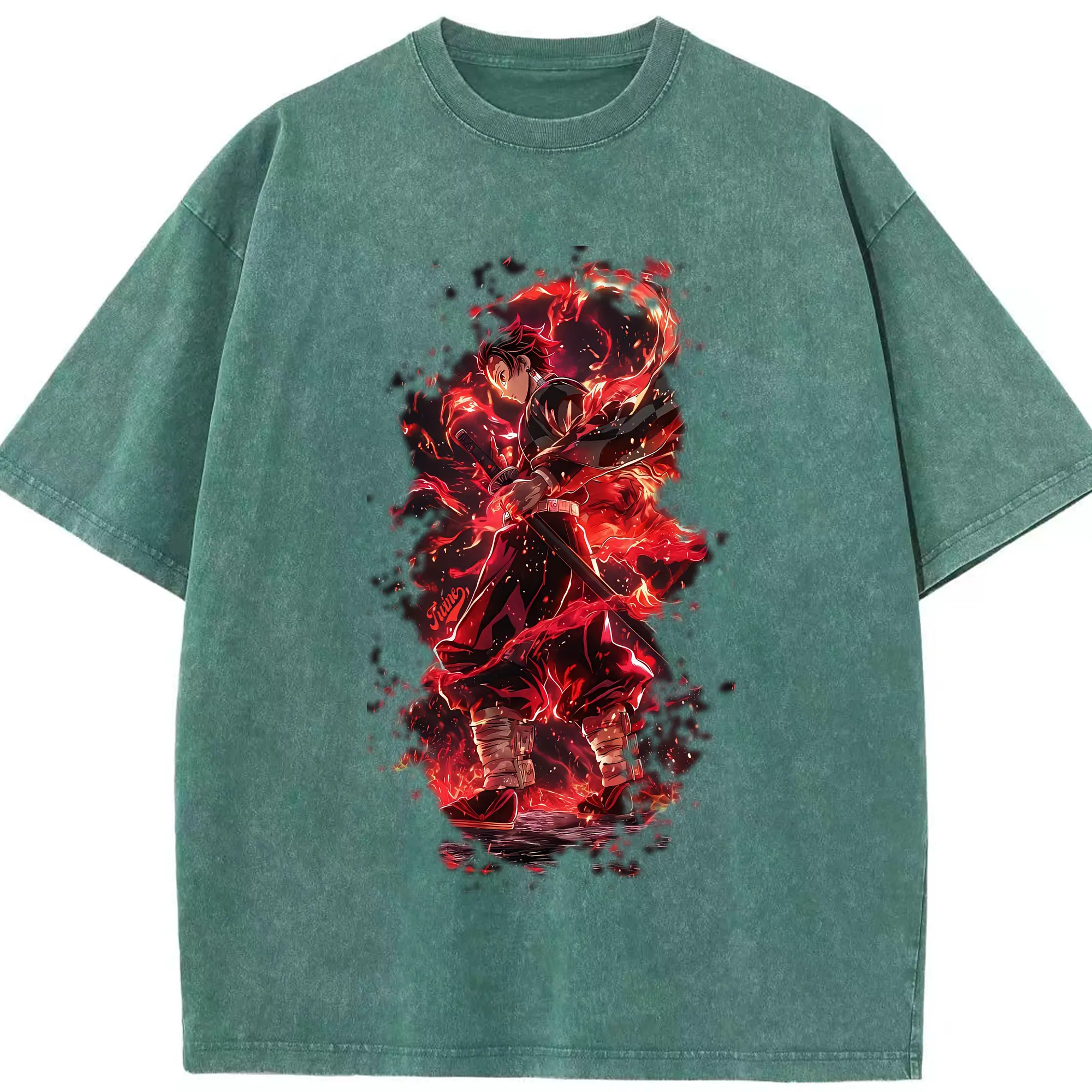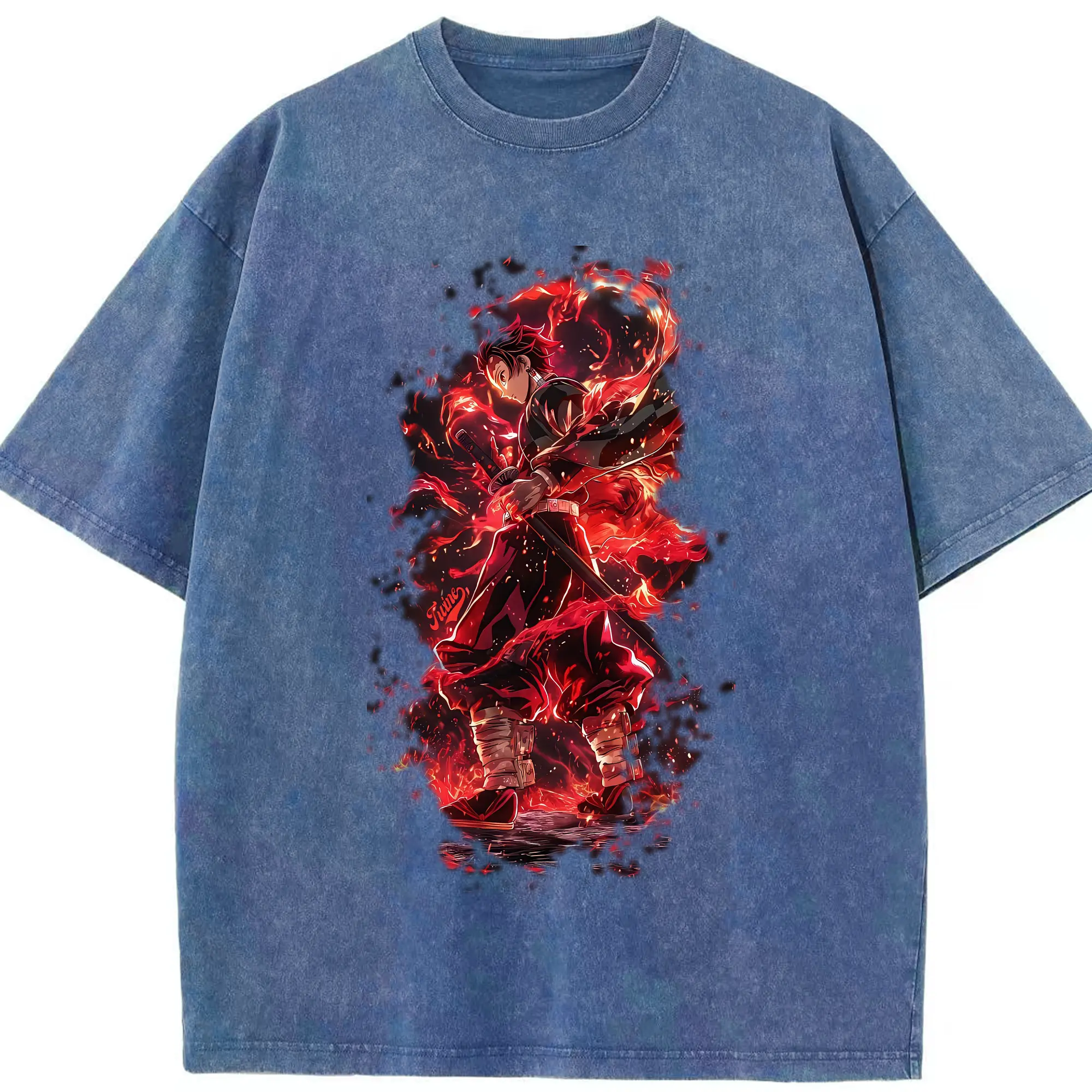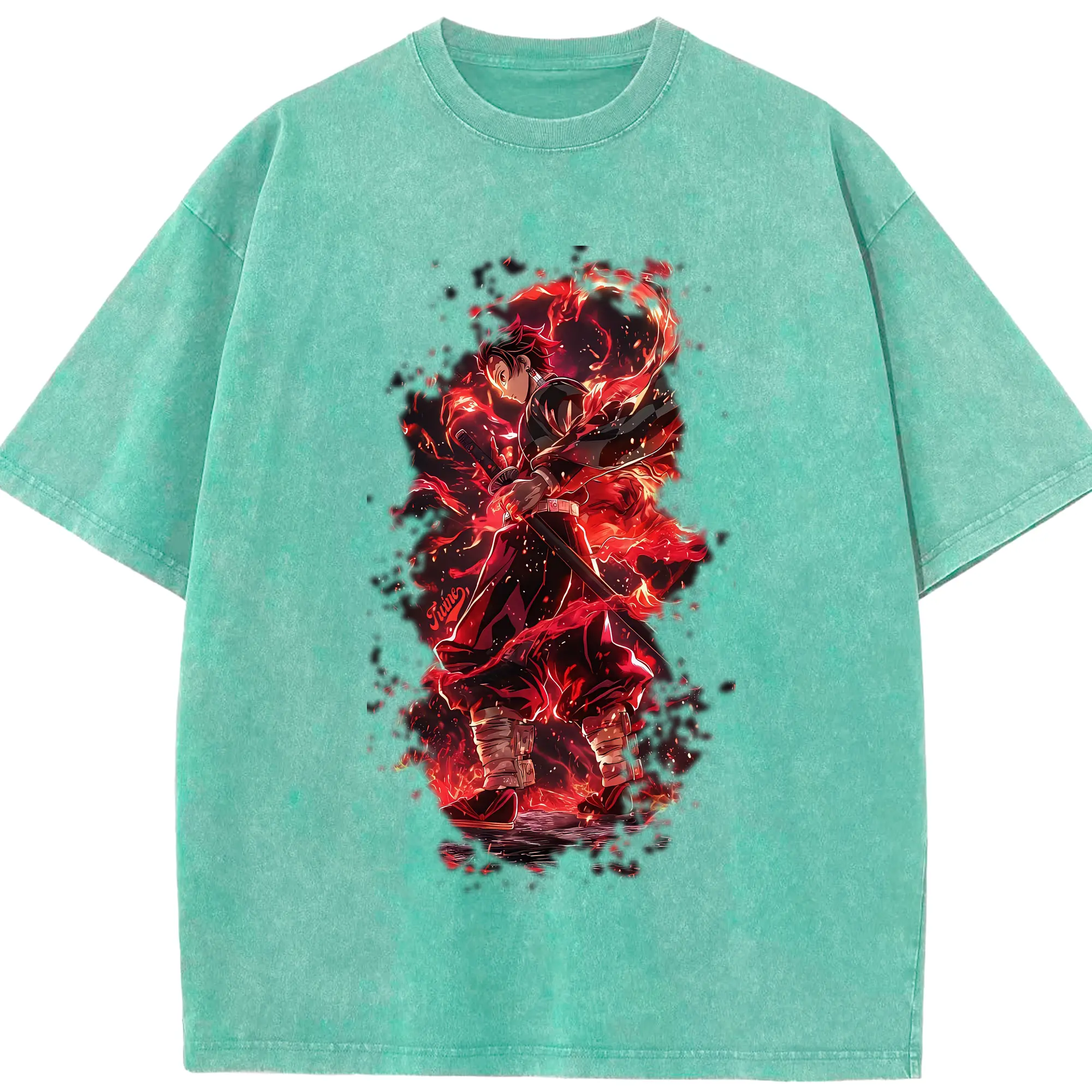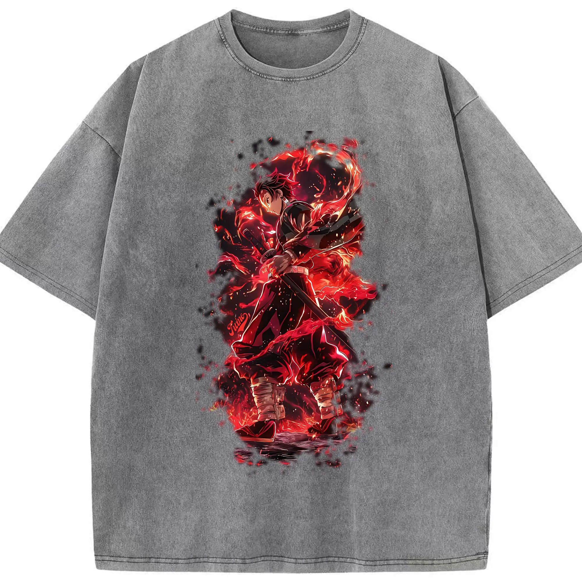 鬼滅の刃 グッズ,竈門 炭治郎 - 綿100% 半袖Tシャツ ・ フロントプリント ・ 快適 通気性 ・ 日常使い 散歩 スポーツ用