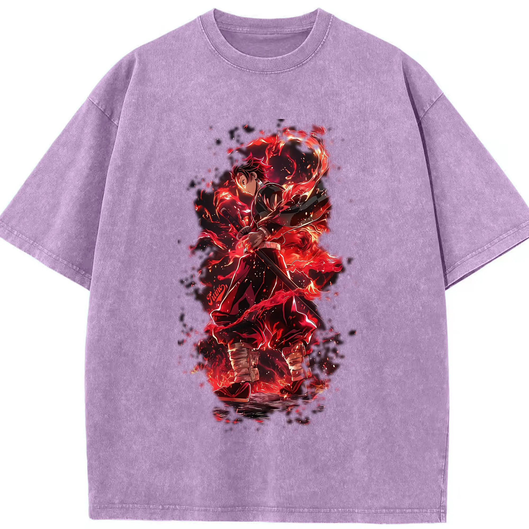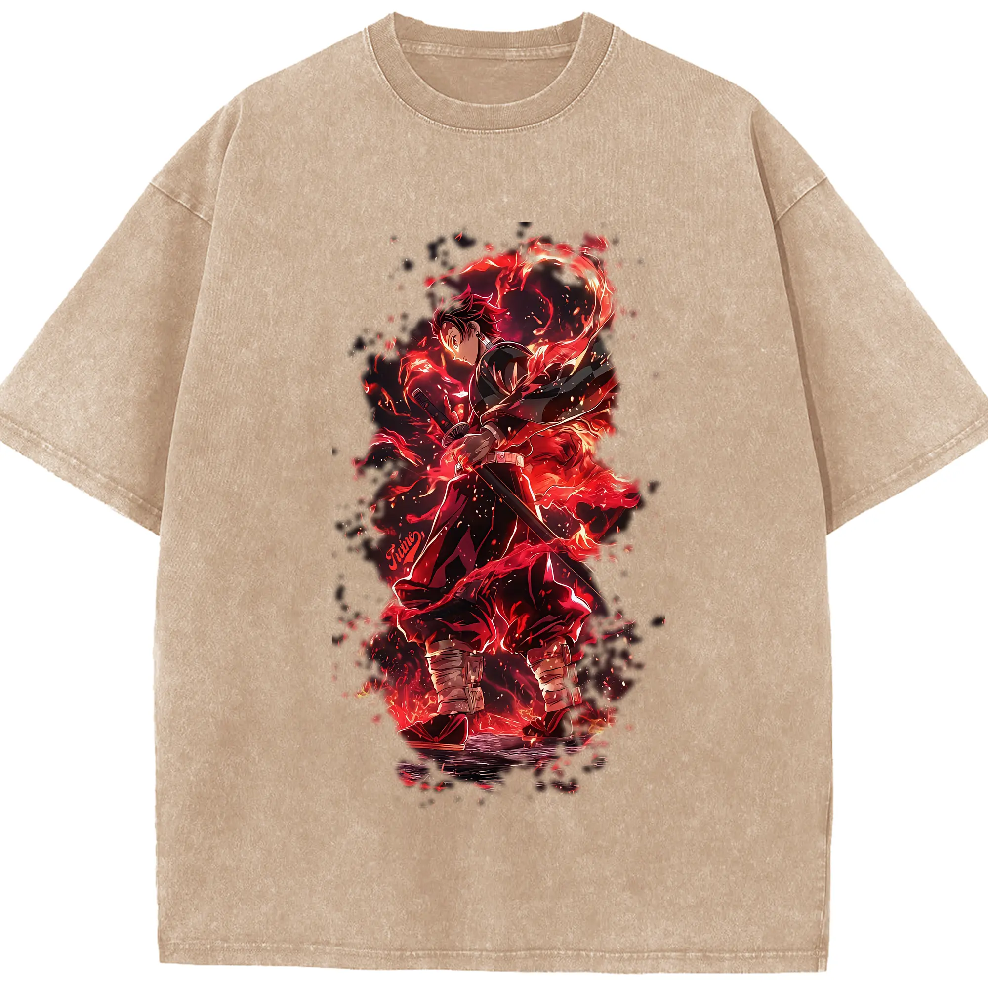 鬼滅の刃 グッズ,竈門 炭治郎 - 綿100% 半袖Tシャツ ・ バックプリント ・ 快適 通気性 ・ 日常使い 散歩 スポーツ用