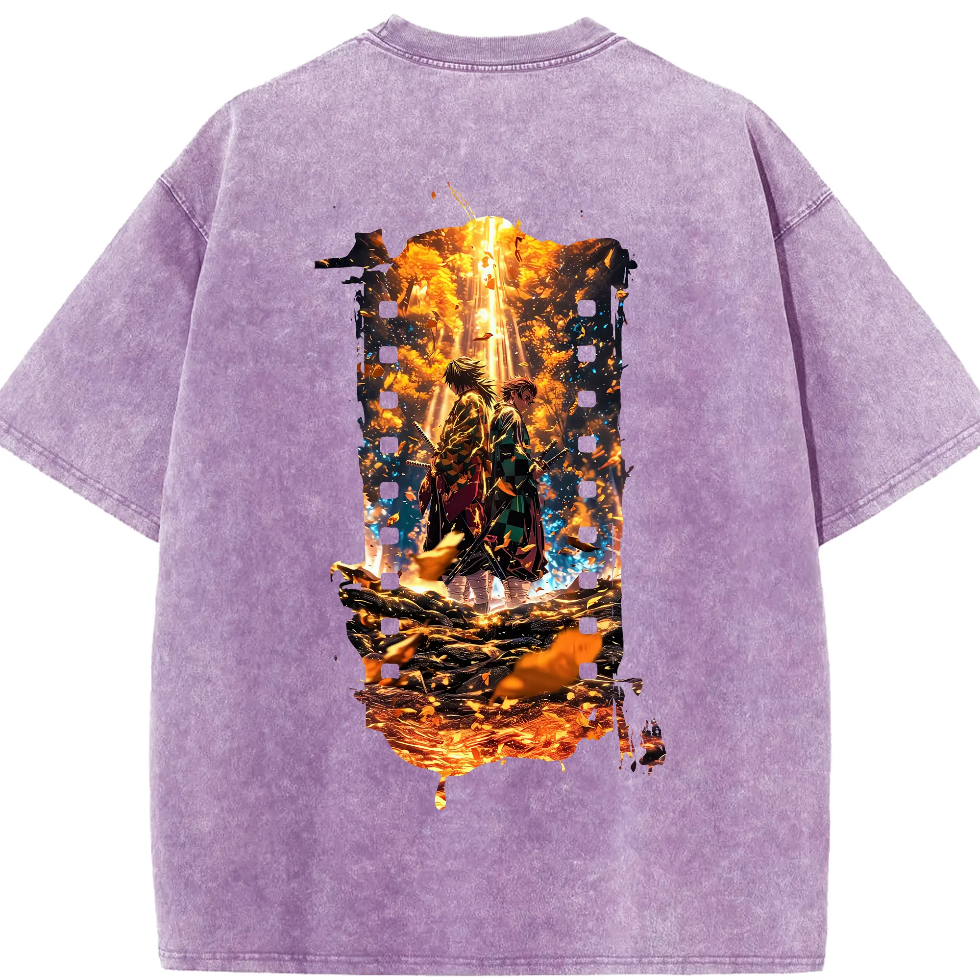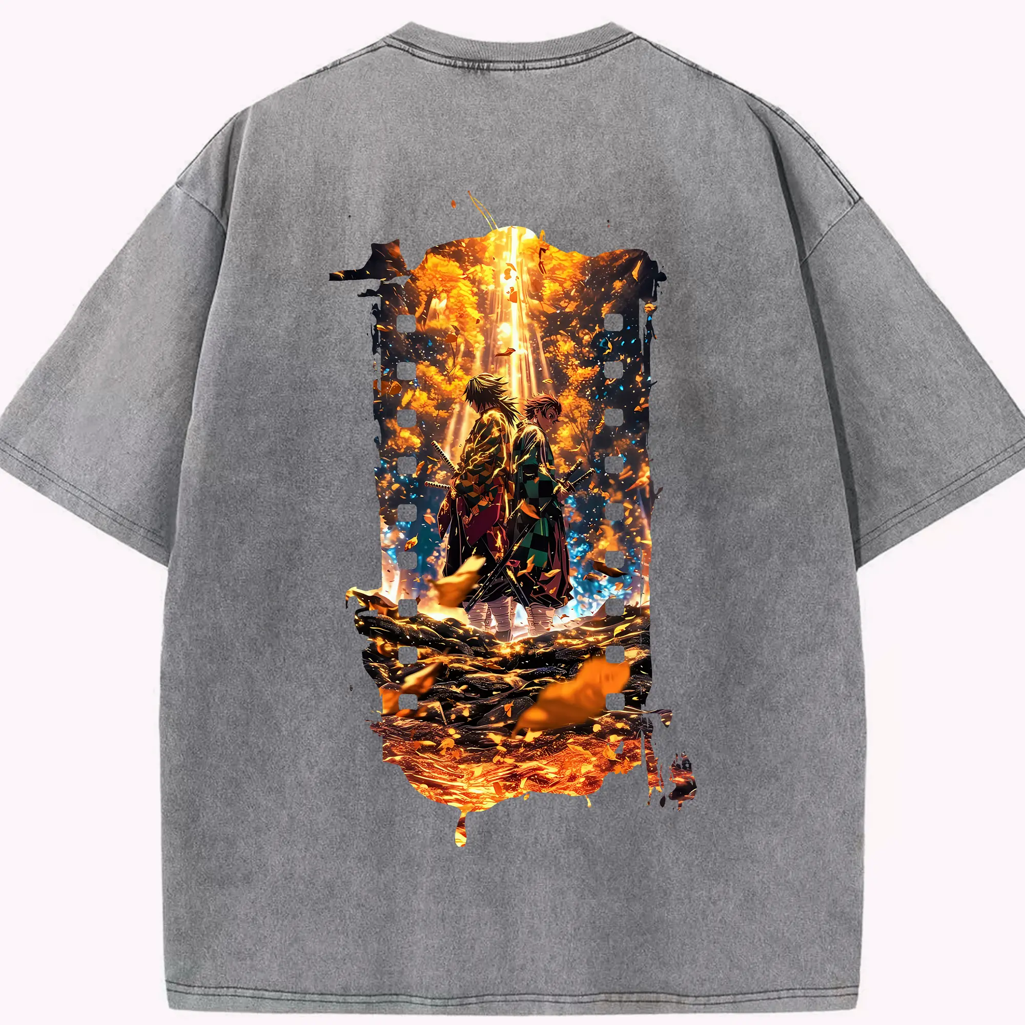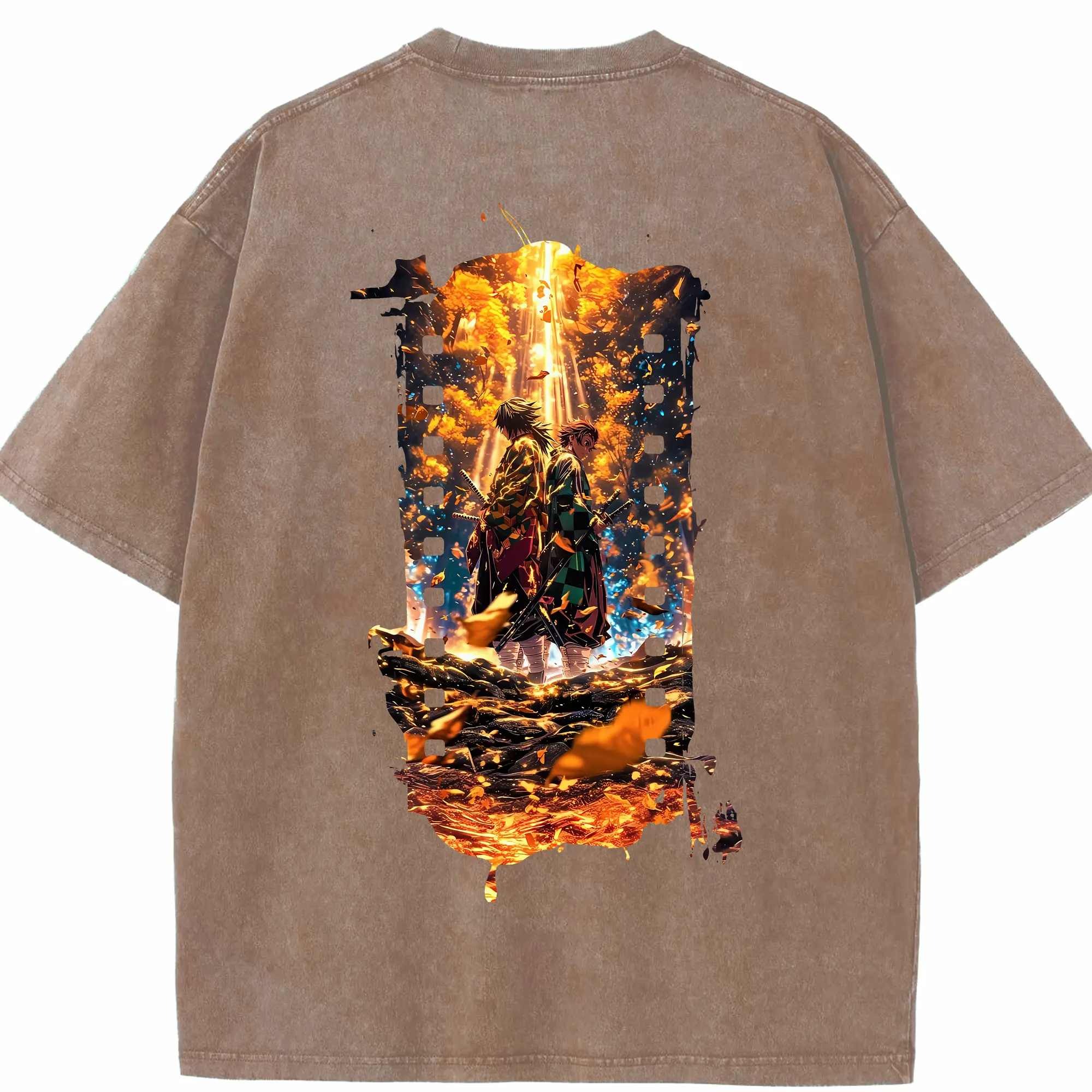 鬼滅の刃 グッズ,竈門 炭治郎 - 綿100% 半袖Tシャツ ・ バックプリント ・ 快適 通気性 ・ 日常使い 散歩 スポーツ用