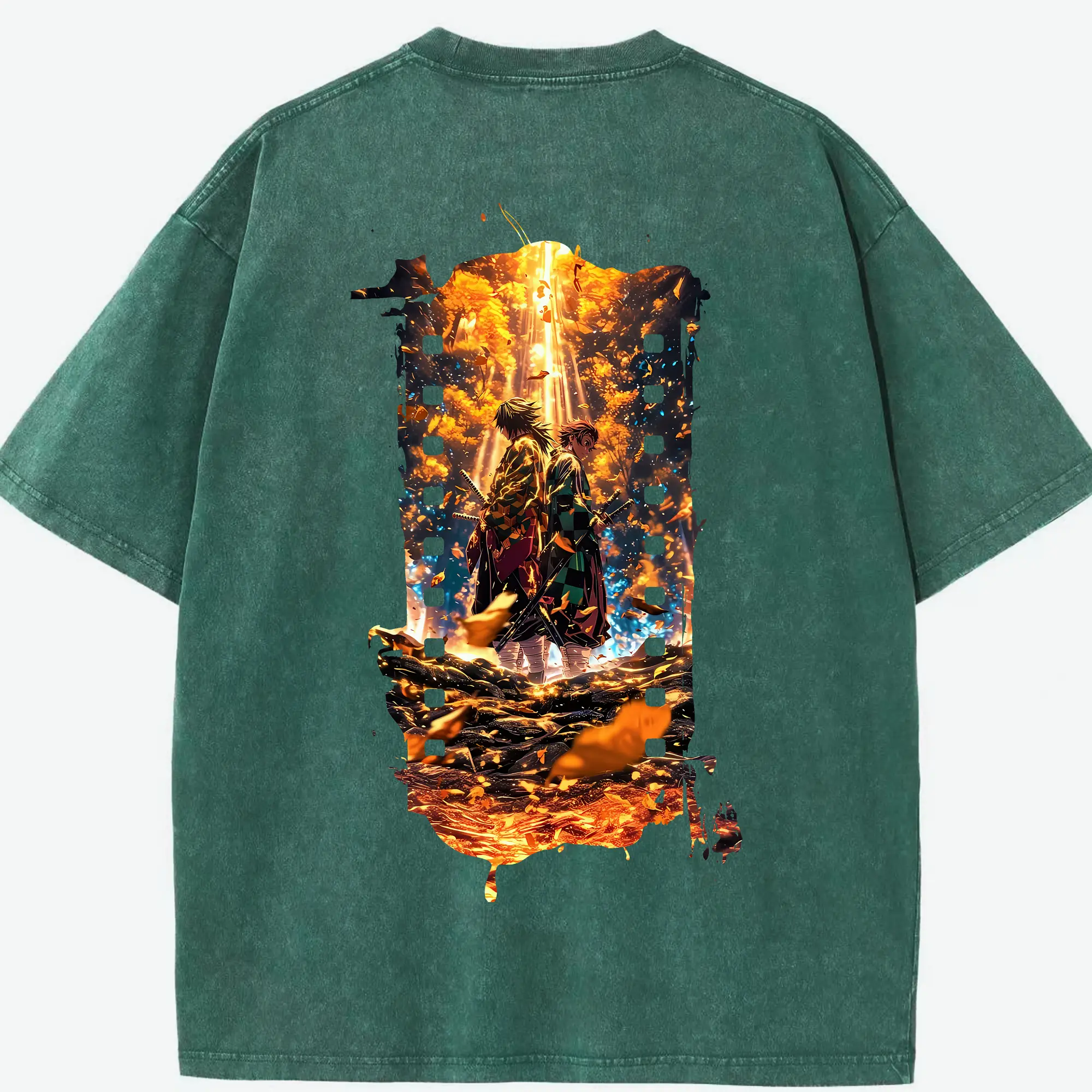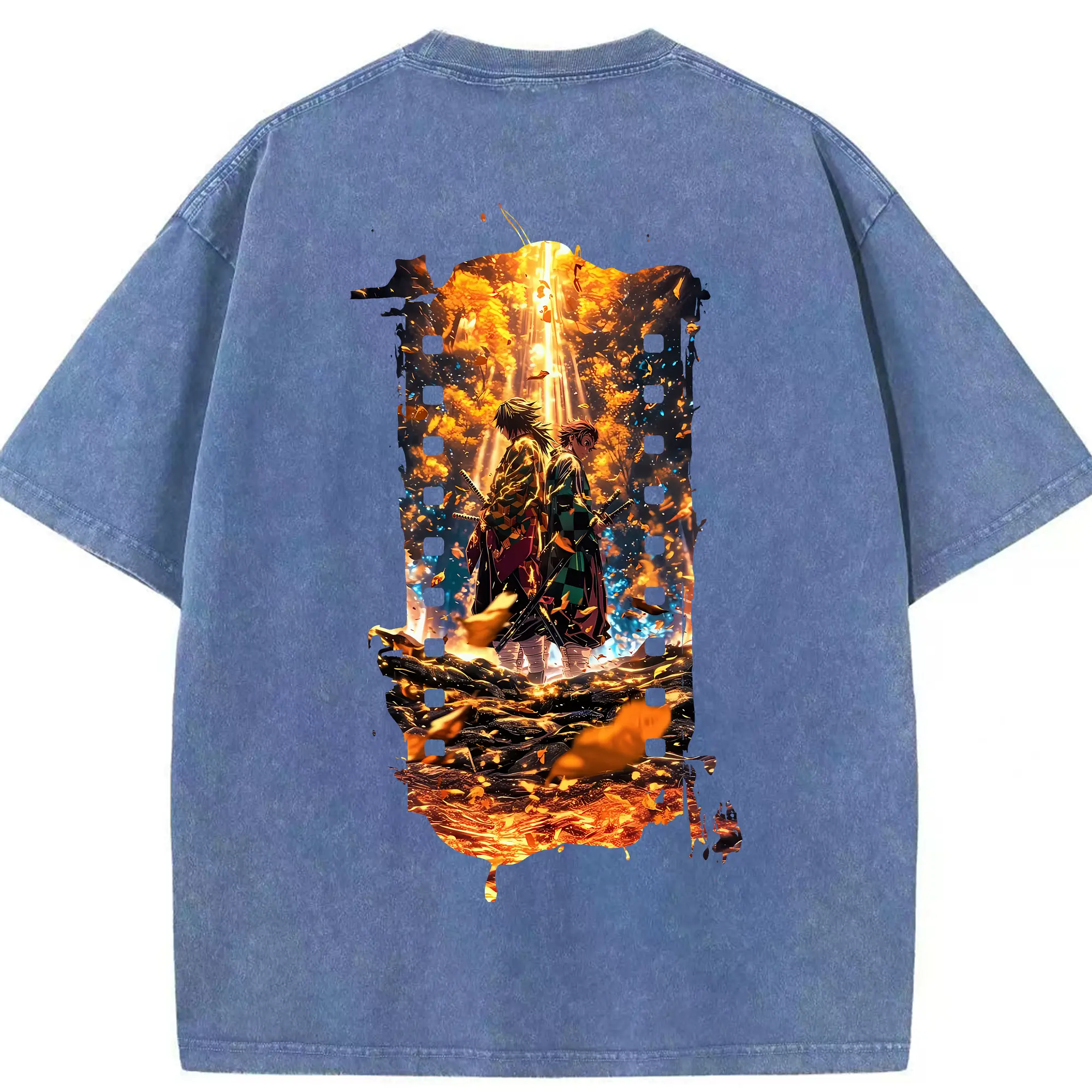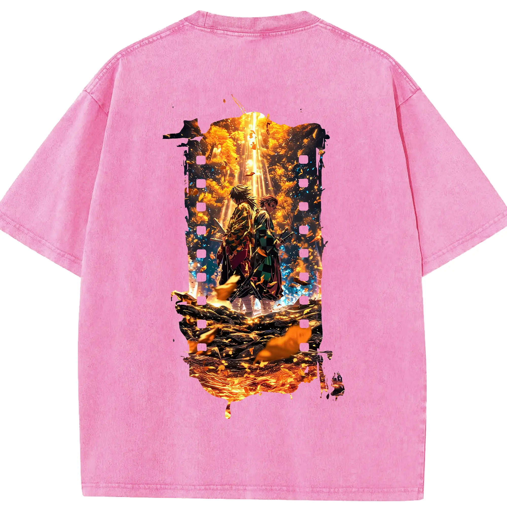 鬼滅の刃 グッズ,竈門 炭治郎 - 綿100% 半袖Tシャツ ・ バックプリント ・ 快適 通気性 ・ 日常使い 散歩 スポーツ用