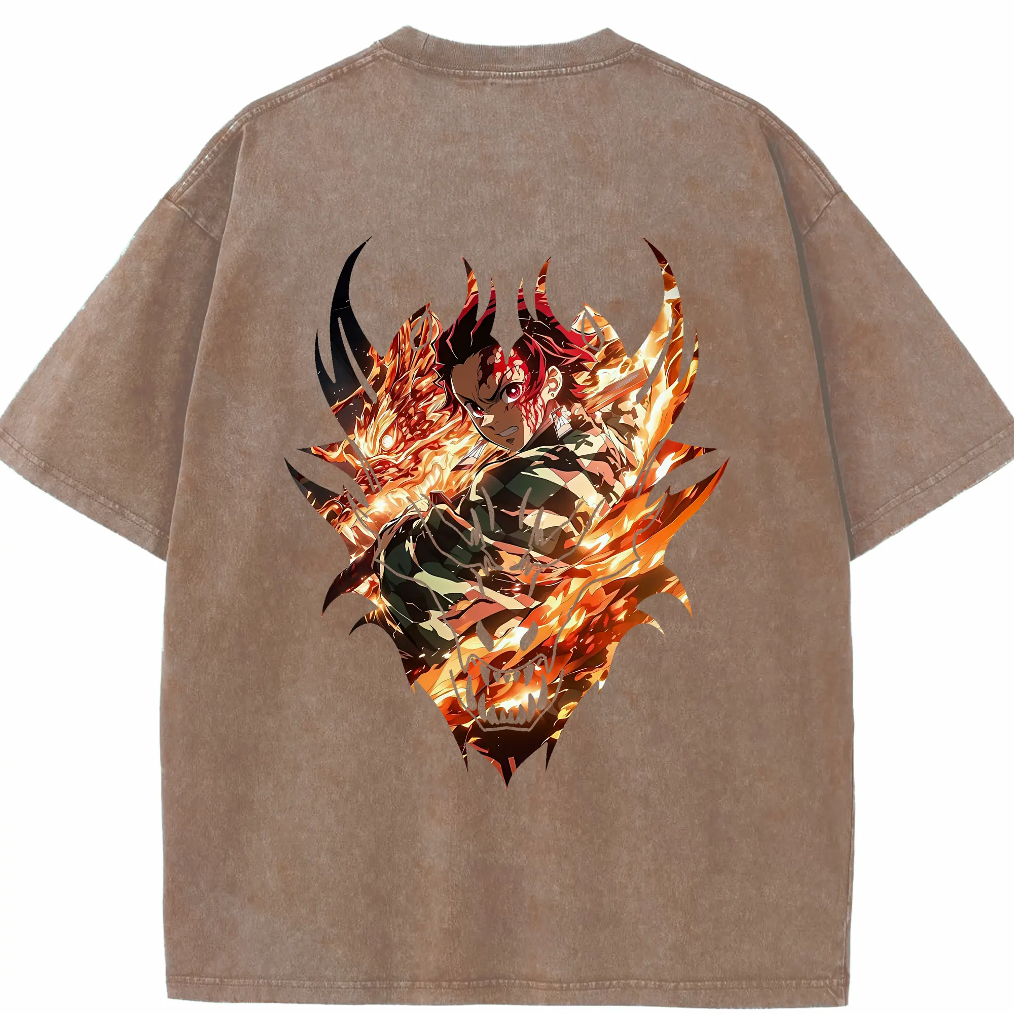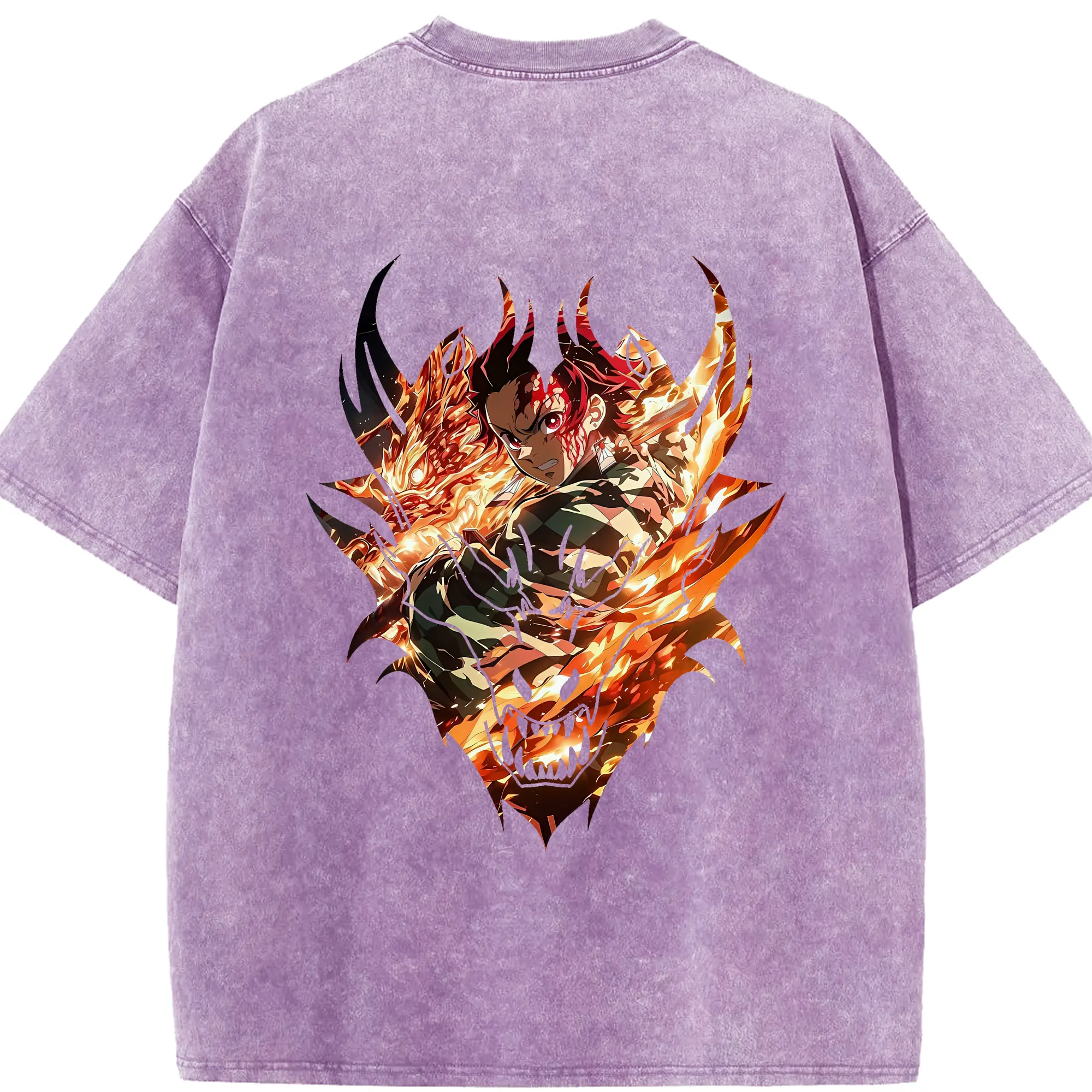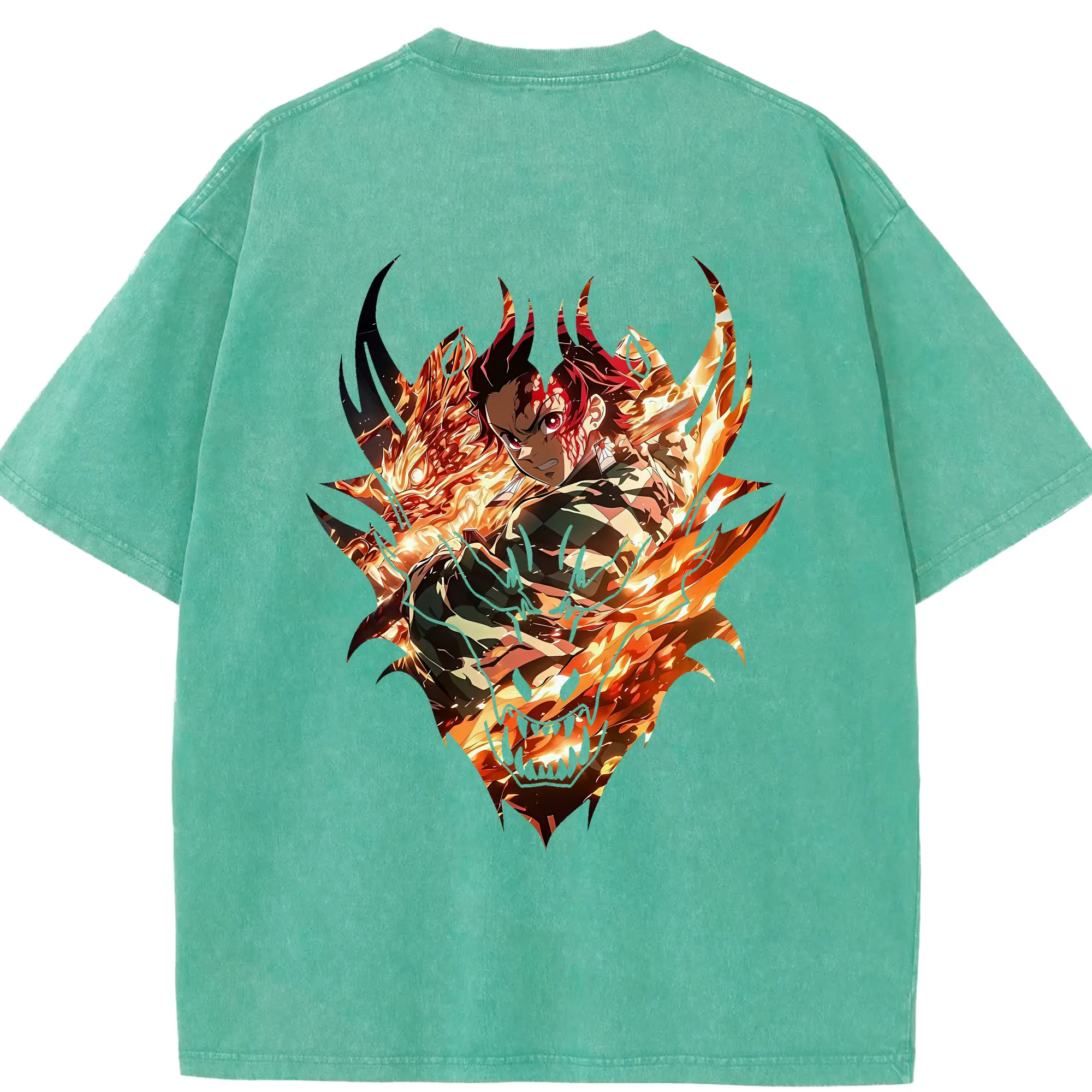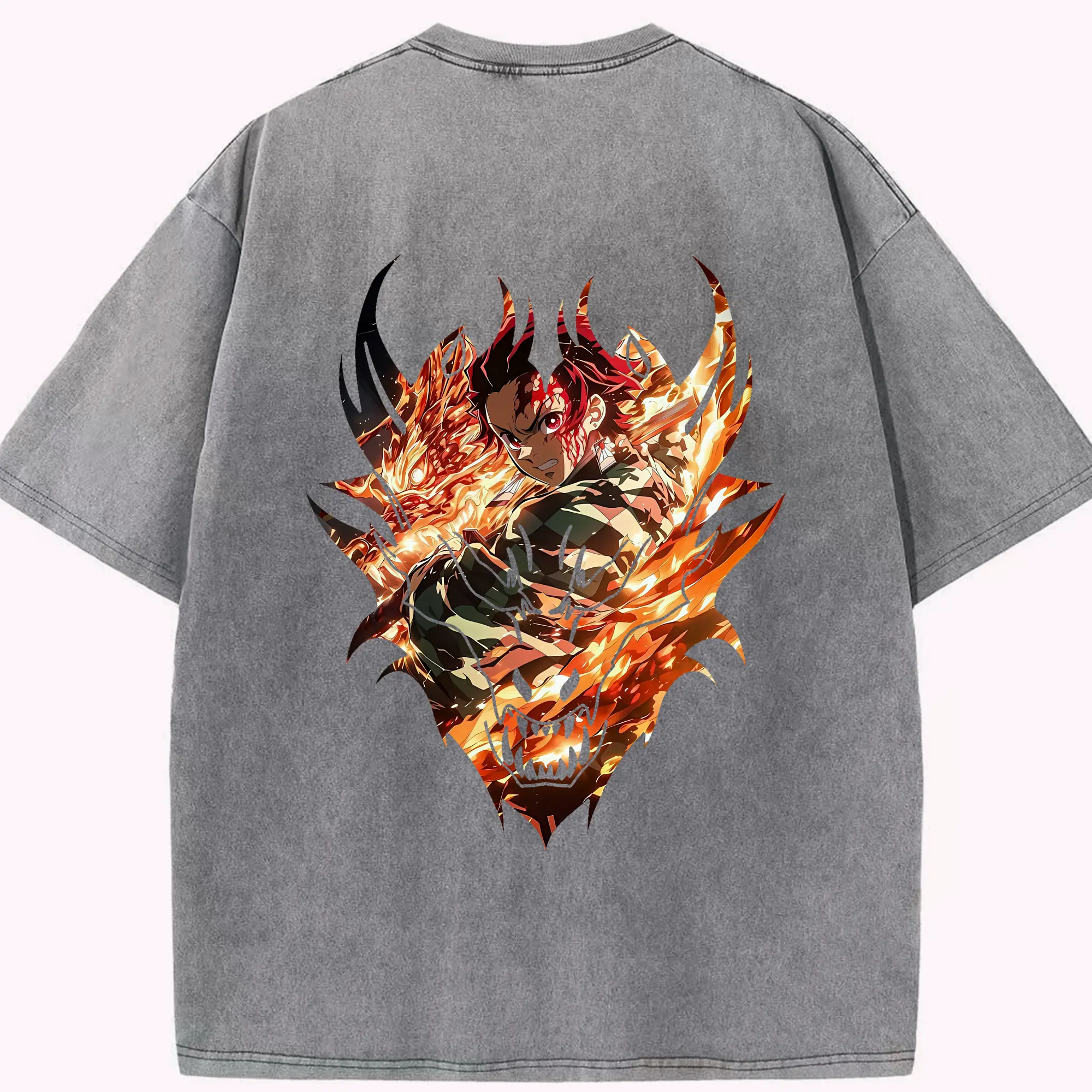 鬼滅の刃 グッズ,竈門 炭治郎 - 綿100% 半袖Tシャツ ・ バックプリント ・ 快適 通気性 ・ 日常使い 散歩 スポーツ用