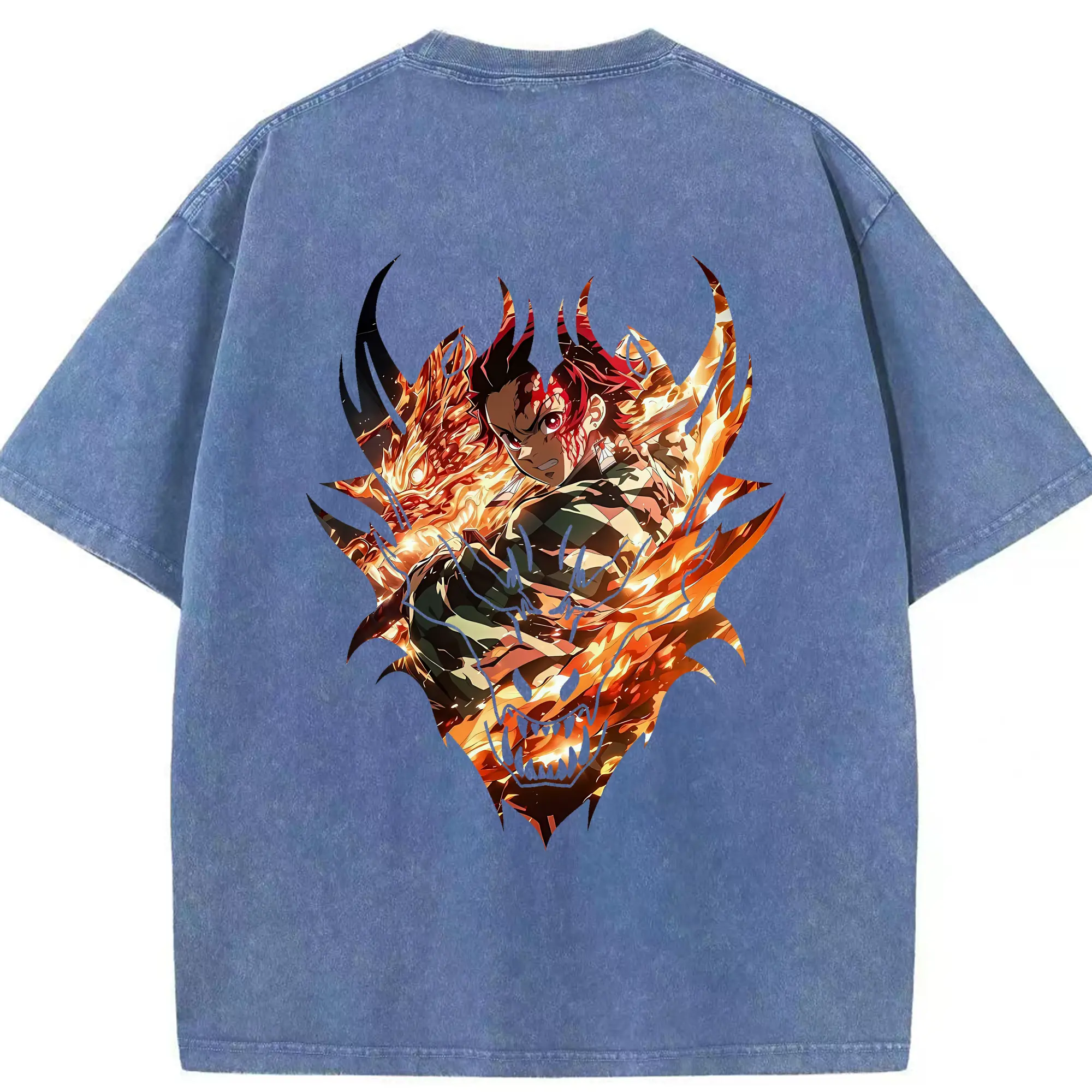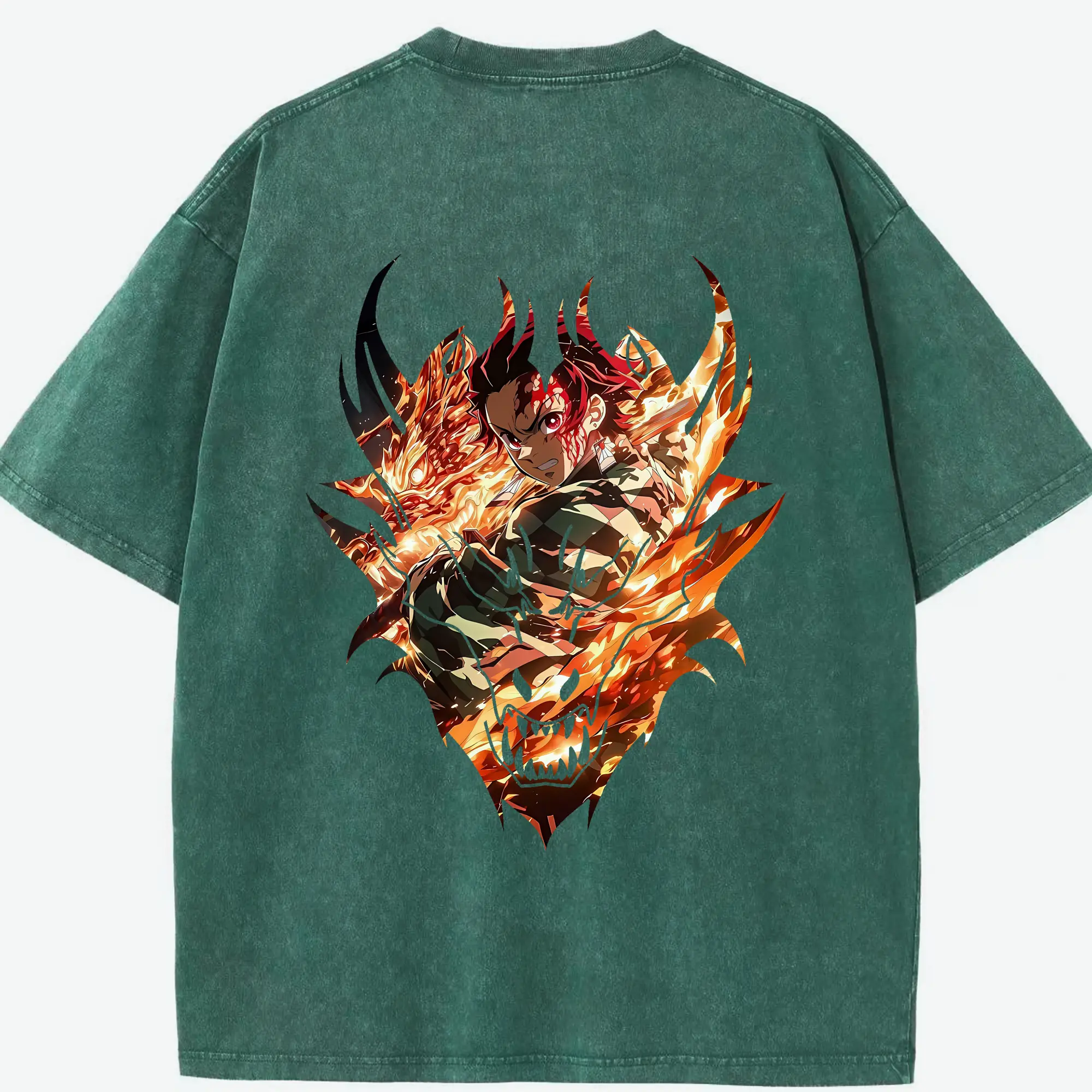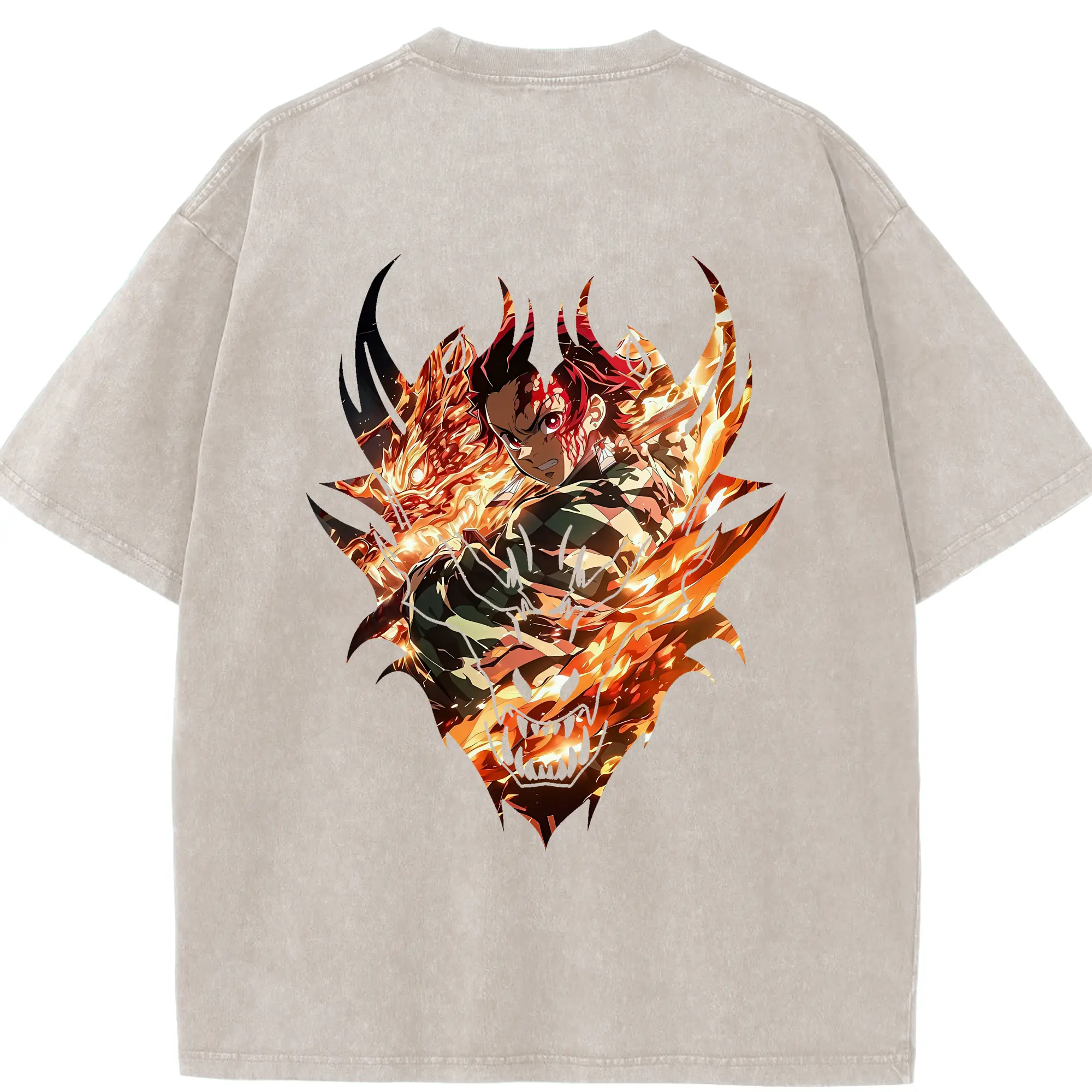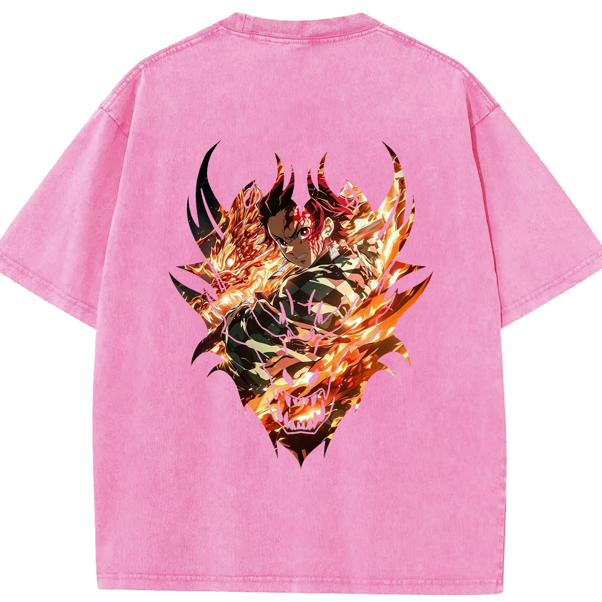鬼滅の刃 グッズ,竈門 炭治郎 - 綿100% 半袖Tシャツ ・ バックプリント ・ 快適 通気性 ・ 日常使い 散歩 スポーツ用