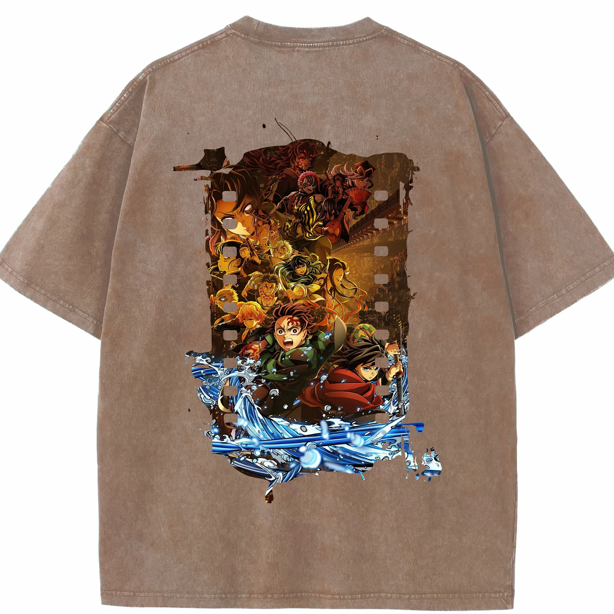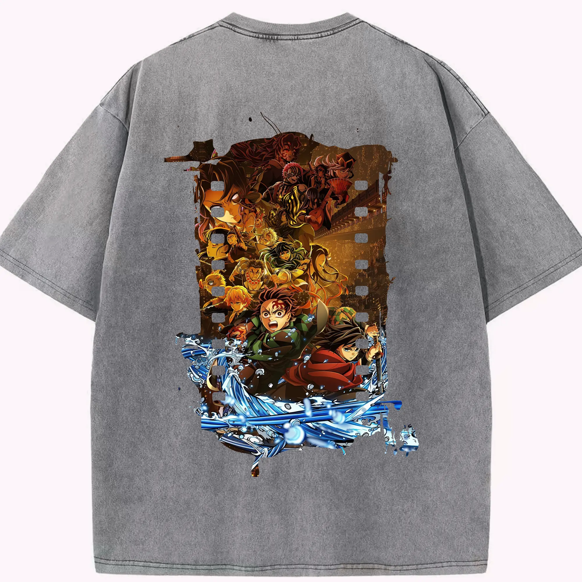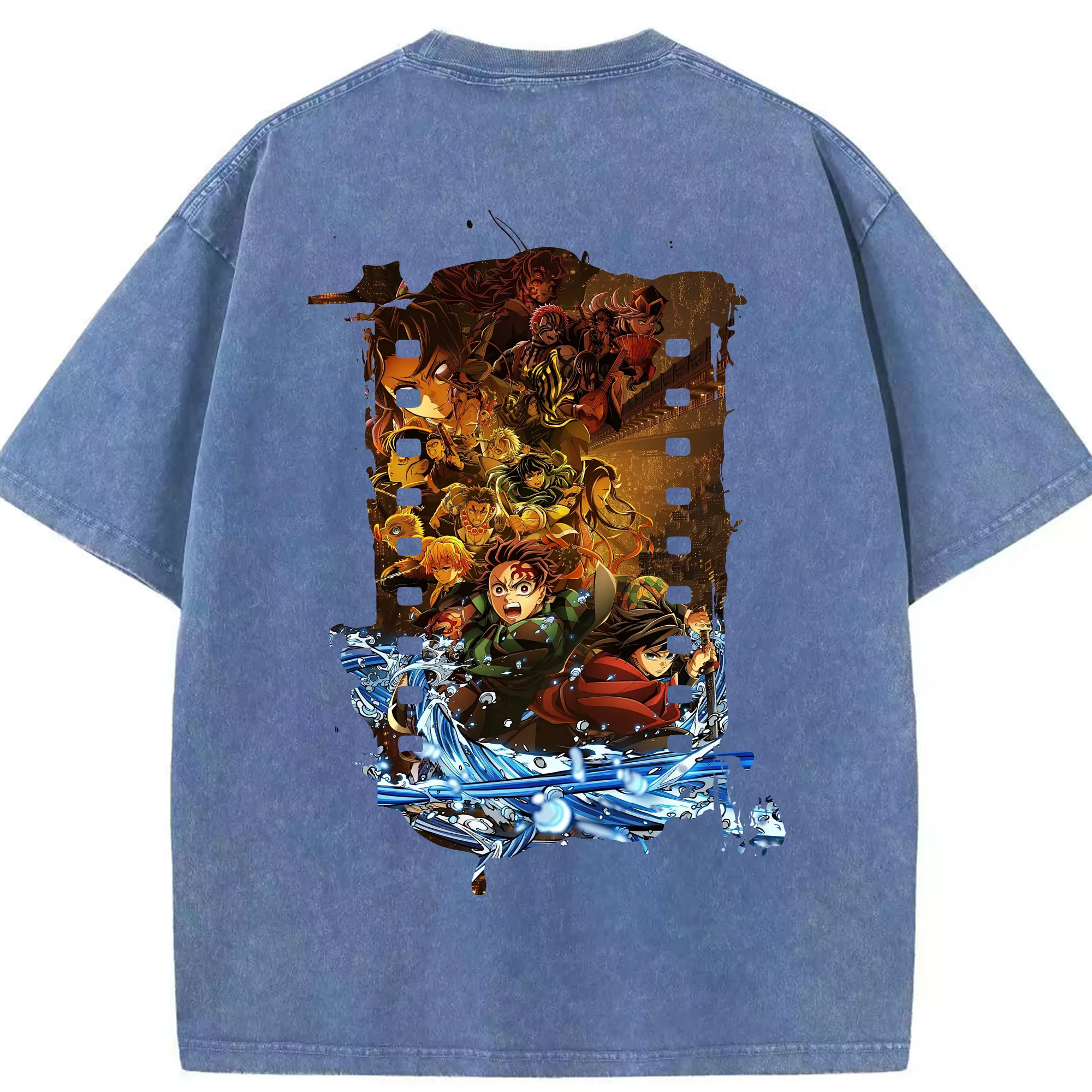 鬼滅の刃 グッズ,猗窩座 - 綿100% ヴィンテージ風 半袖Tシャツ ・ 背面プリント ・ 柔らか肌触り ・ 通気性 快適 ・ スポーツ カジュアル 外出用