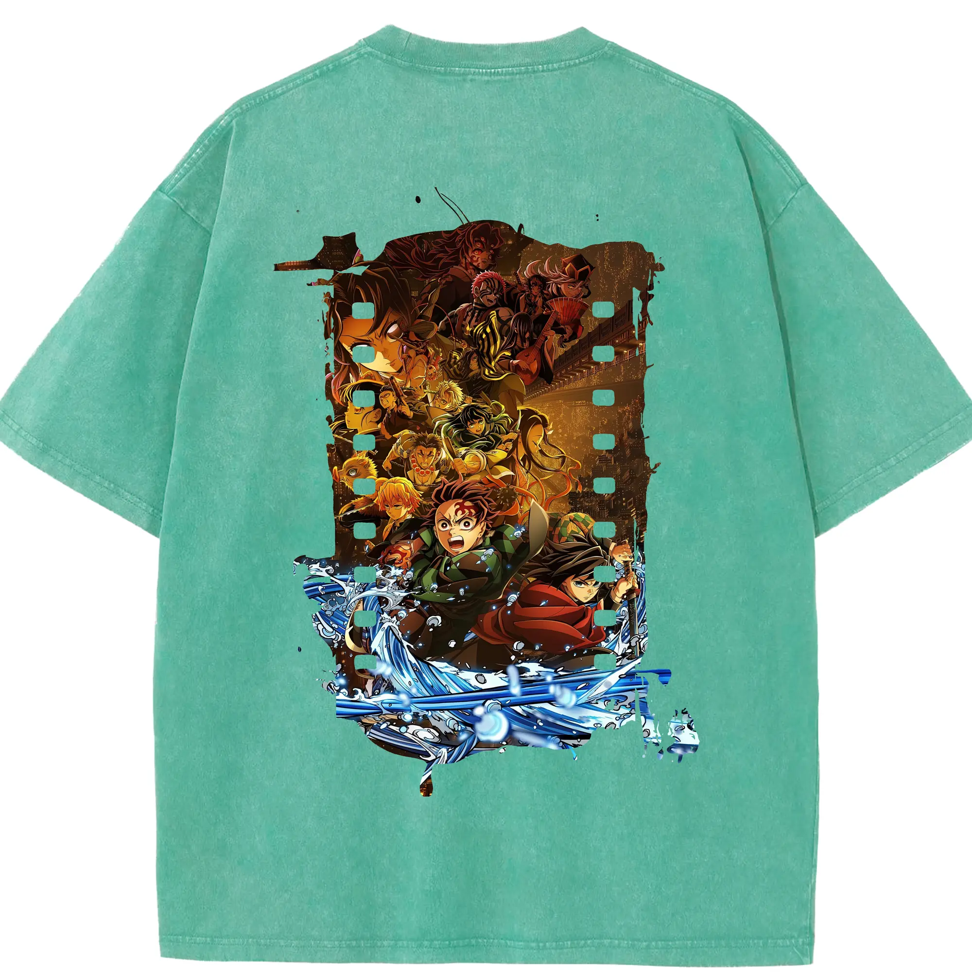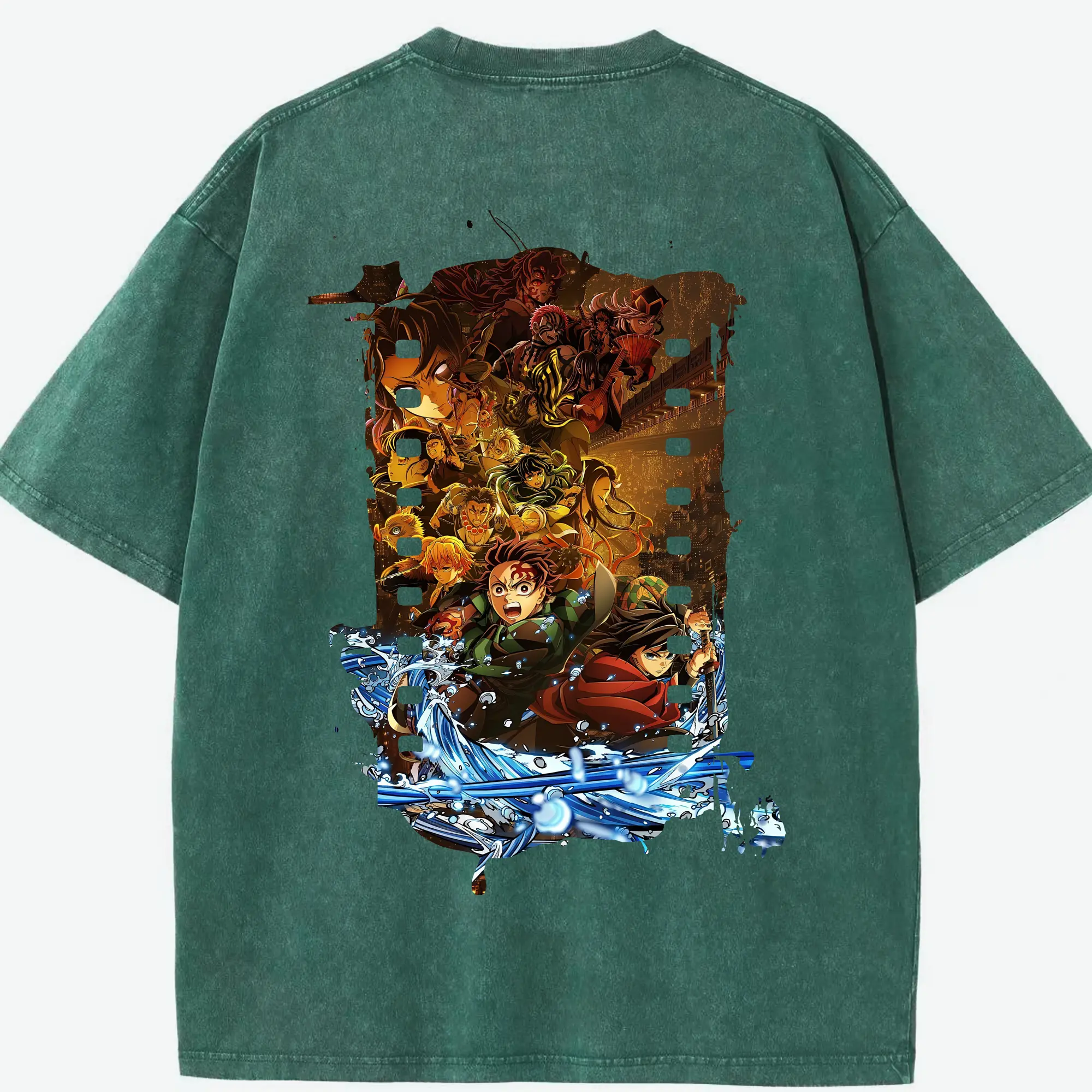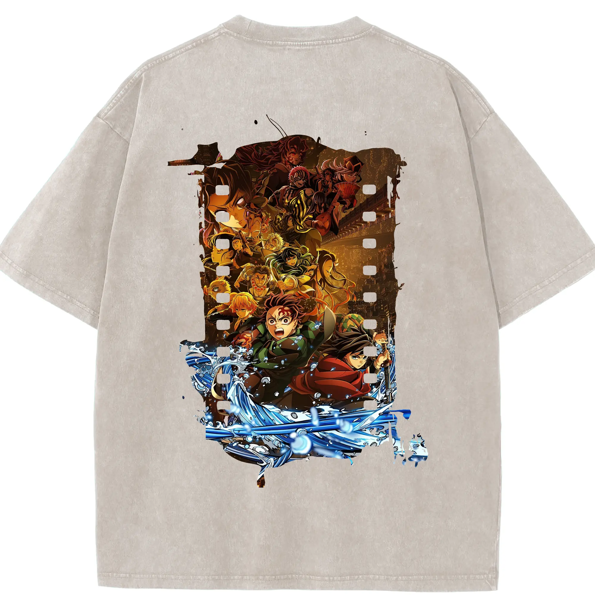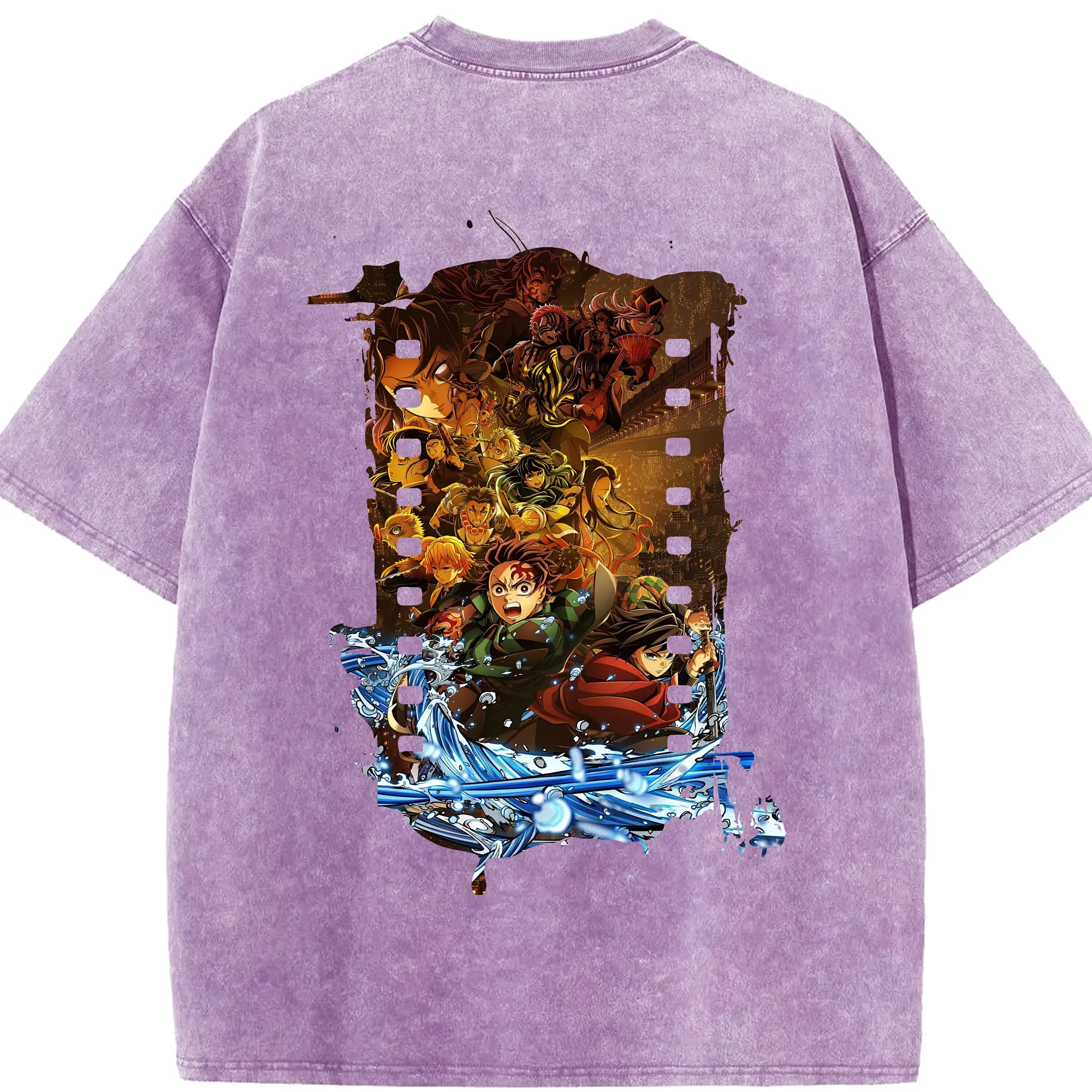 鬼滅の刃 グッズ,猗窩座 - 綿100% ヴィンテージ風 半袖Tシャツ ・ 背面プリント ・ 柔らか肌触り ・ 通気性 快適 ・ スポーツ カジュアル 外出用