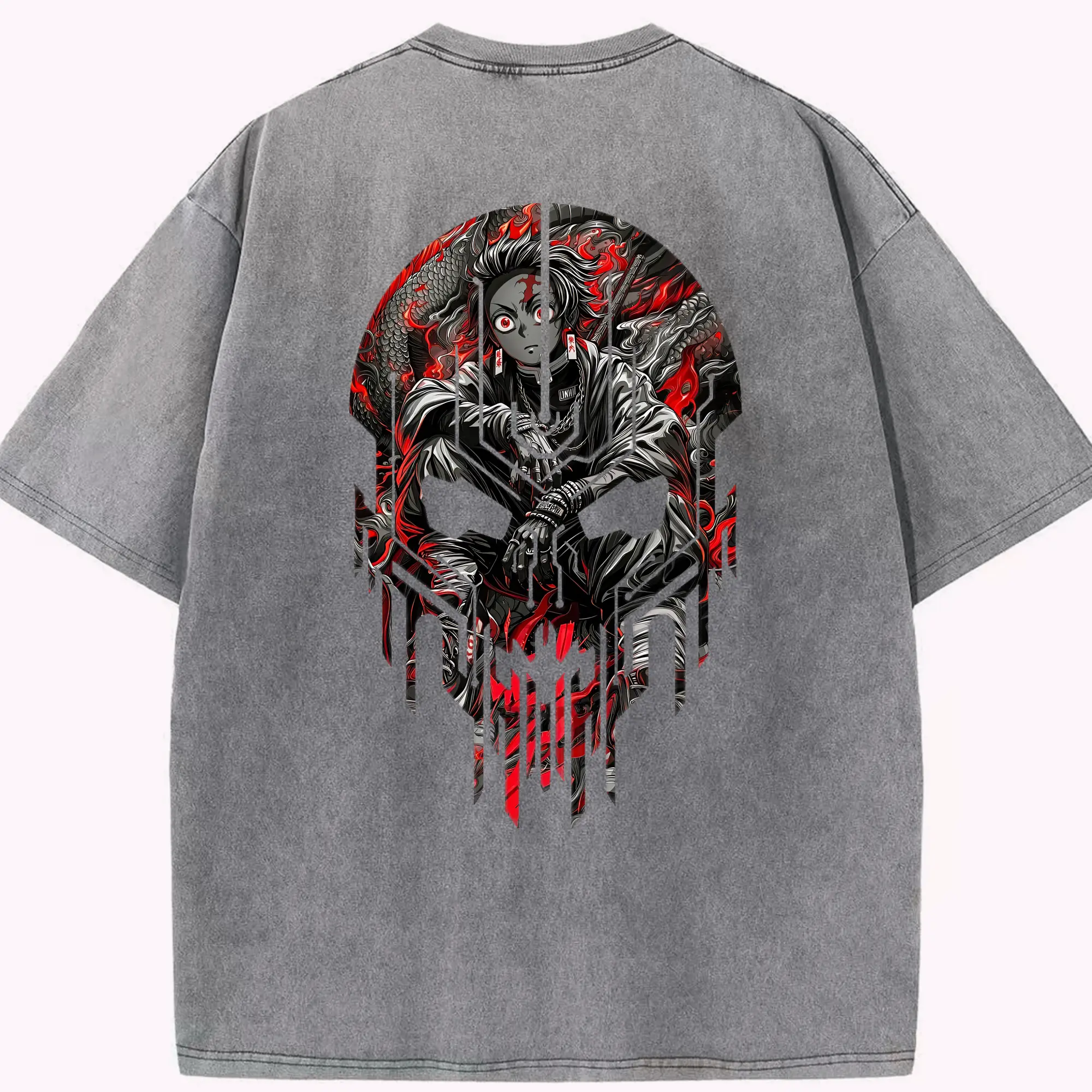 鬼滅の刃 グッズ,竈門 炭治郎 - 綿100% 半袖Tシャツ ・ バックプリント ・ 快適 通気性 ・ 日常使い 散歩 スポーツ用