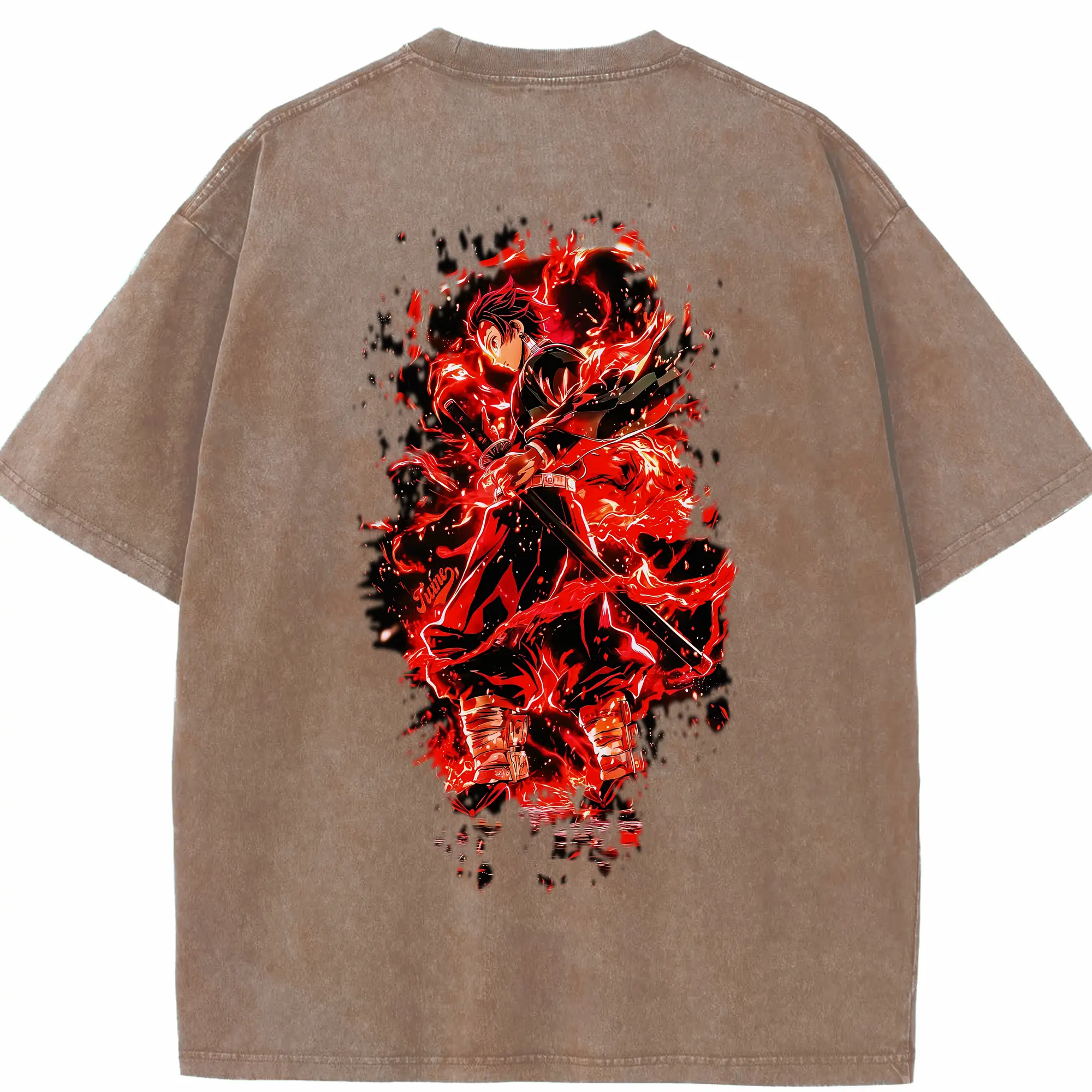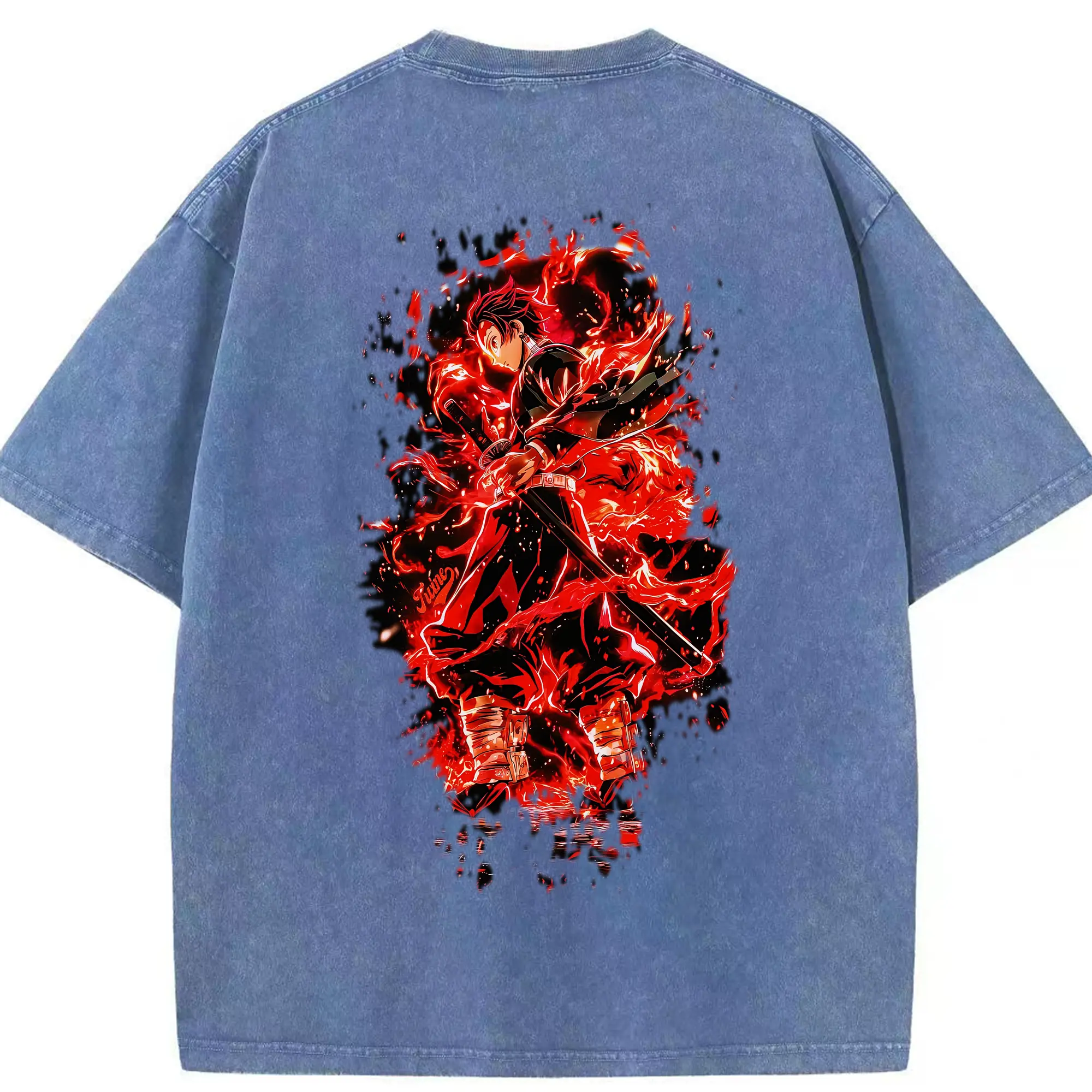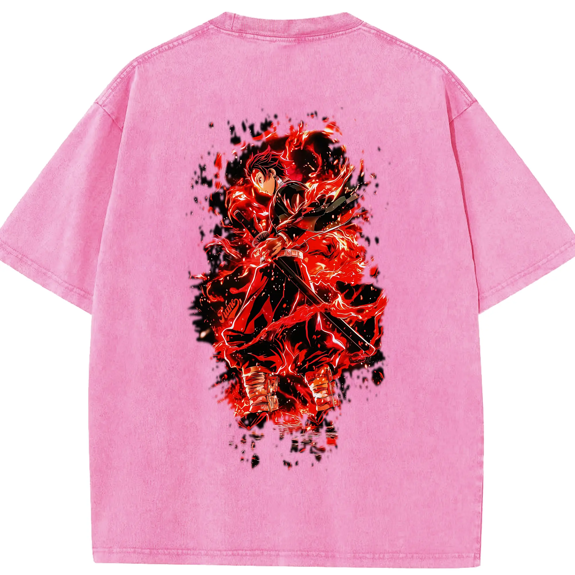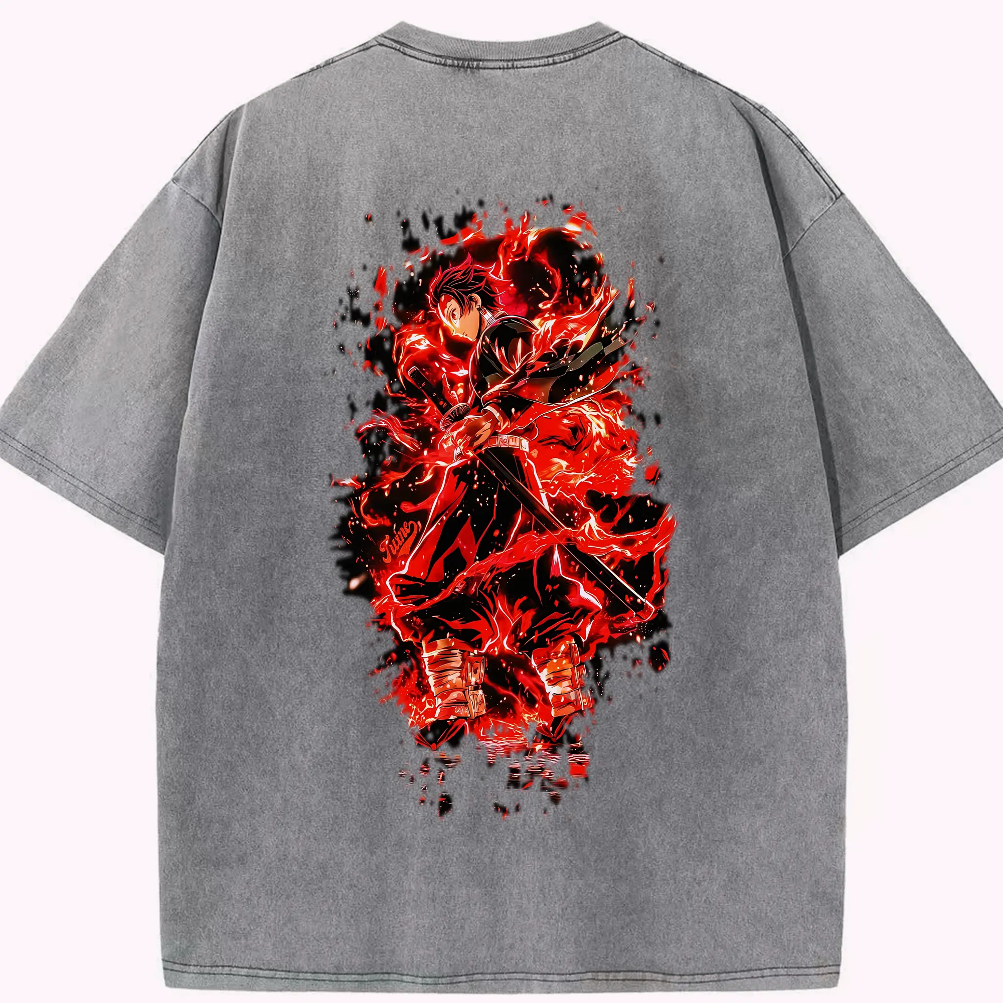 鬼滅の刃 グッズ,竈門 炭治郎 - 綿100% 半袖Tシャツ ・ バックプリント ・ 快適 通気性 ・ 日常使い 散歩 スポーツ用