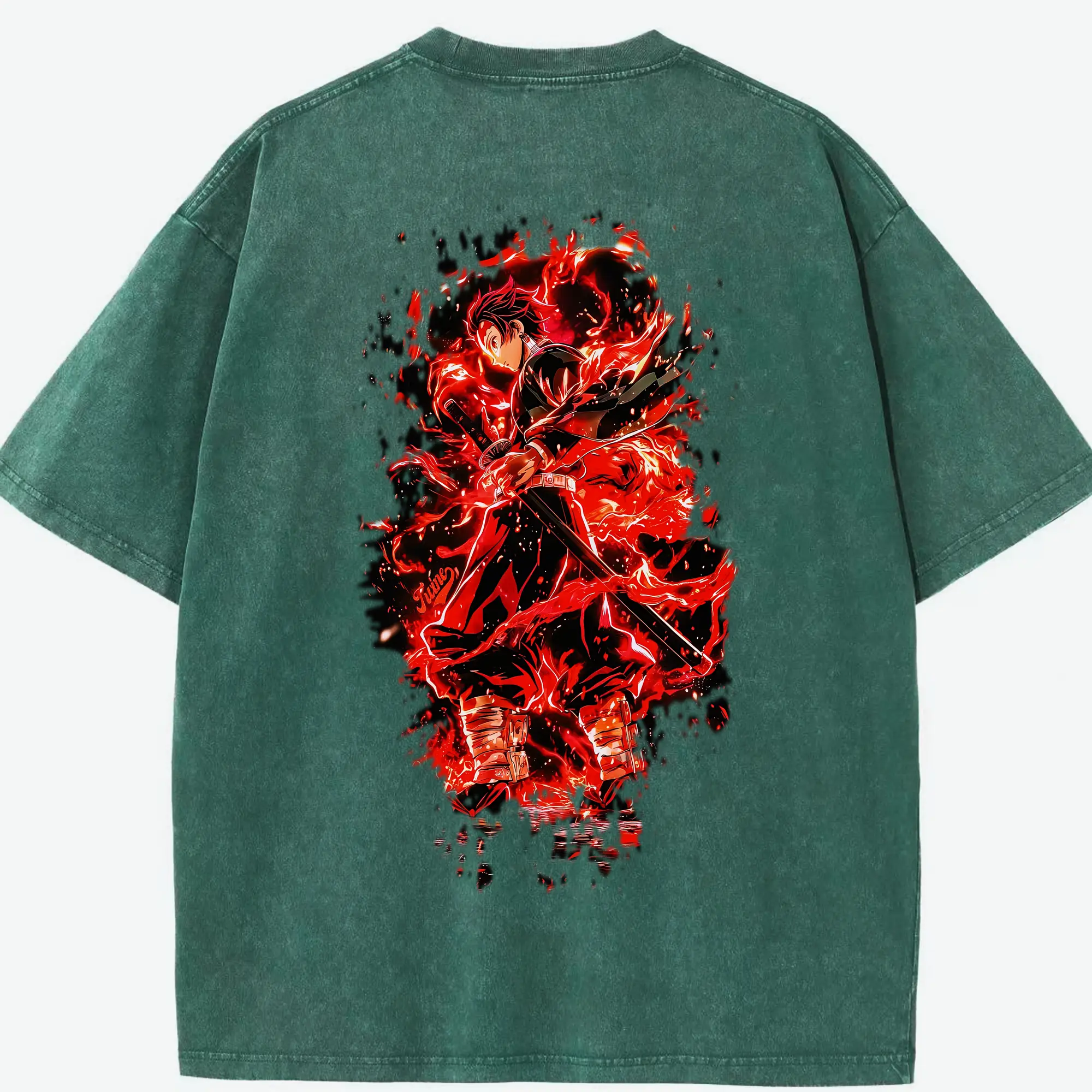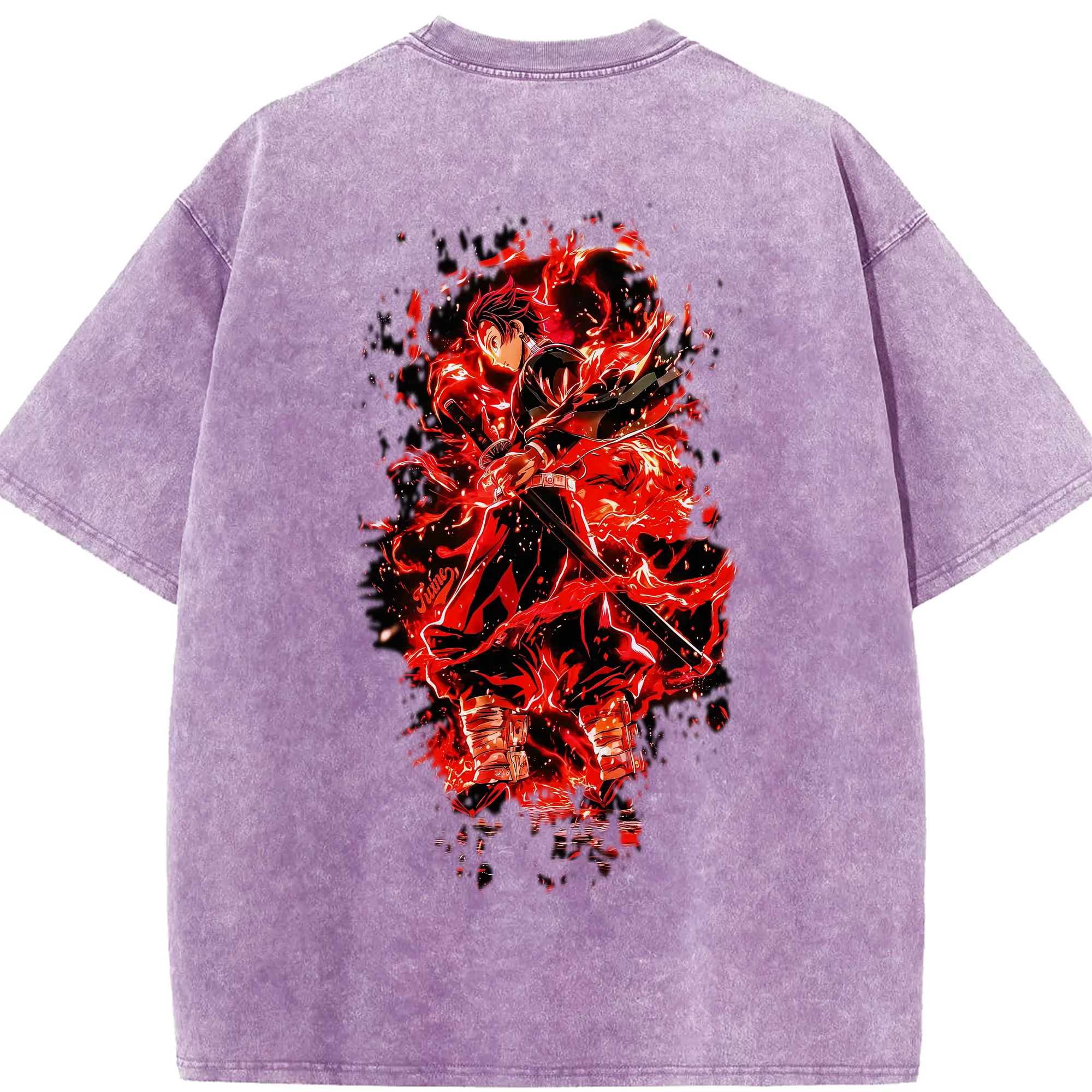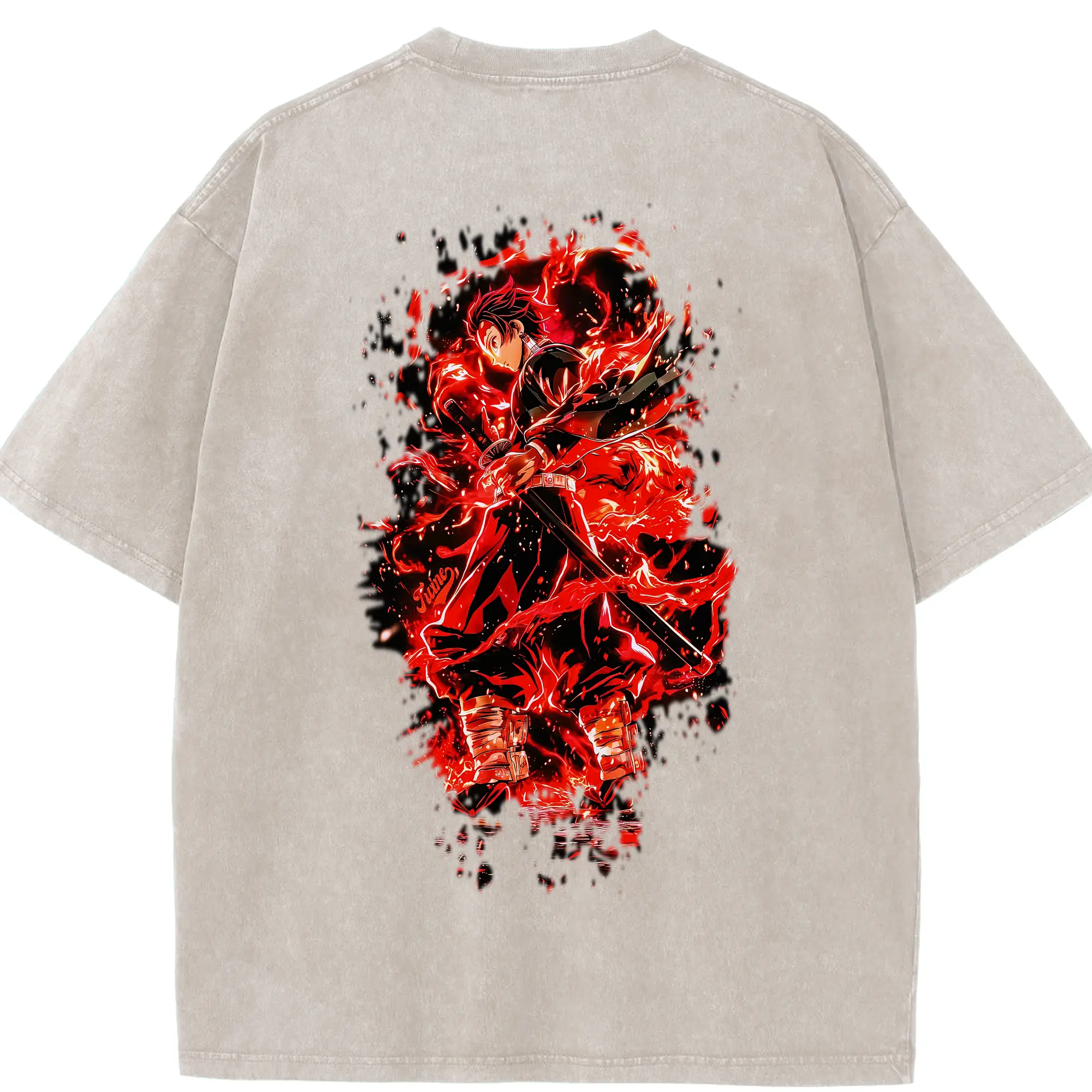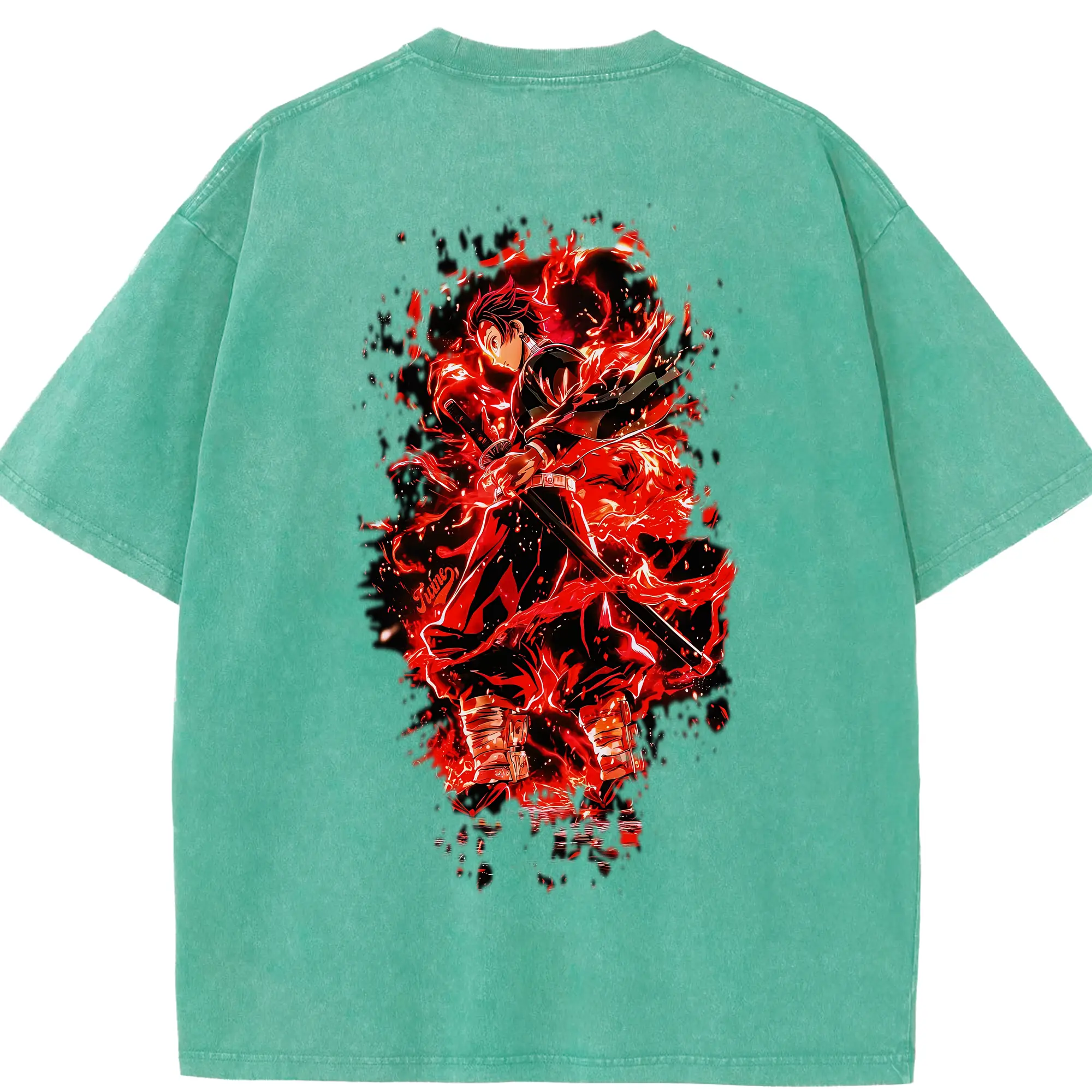 鬼滅の刃 グッズ,竈門 炭治郎 - 綿100% 半袖Tシャツ ・ バックプリント ・ 快適 通気性 ・ 日常使い 散歩 スポーツ用