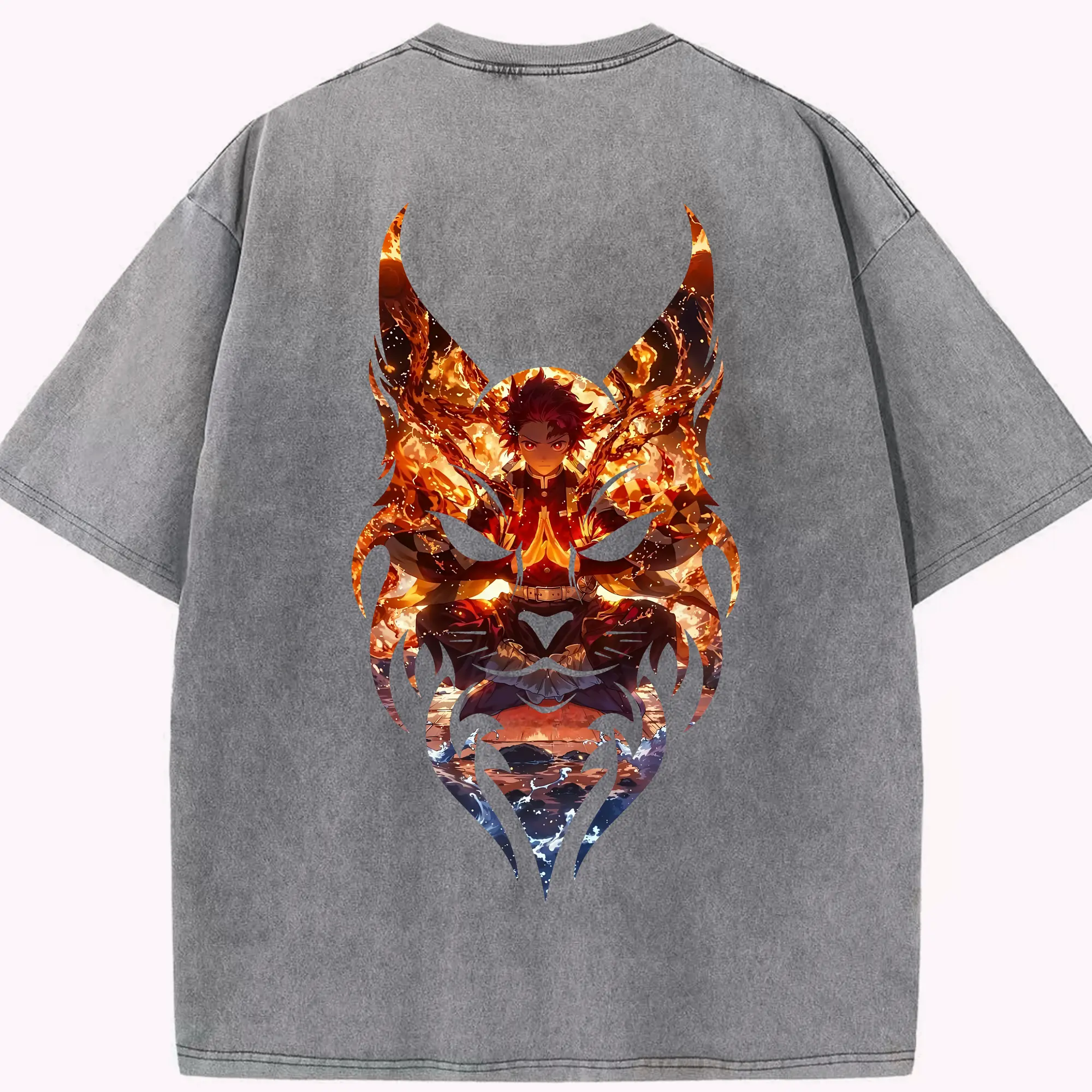 鬼滅の刃 グッズ,竈門 炭治郎 - 綿100% 半袖Tシャツ ・ バックプリント ・ 快適 通気性 ・ 日常使い 散歩 スポーツ用