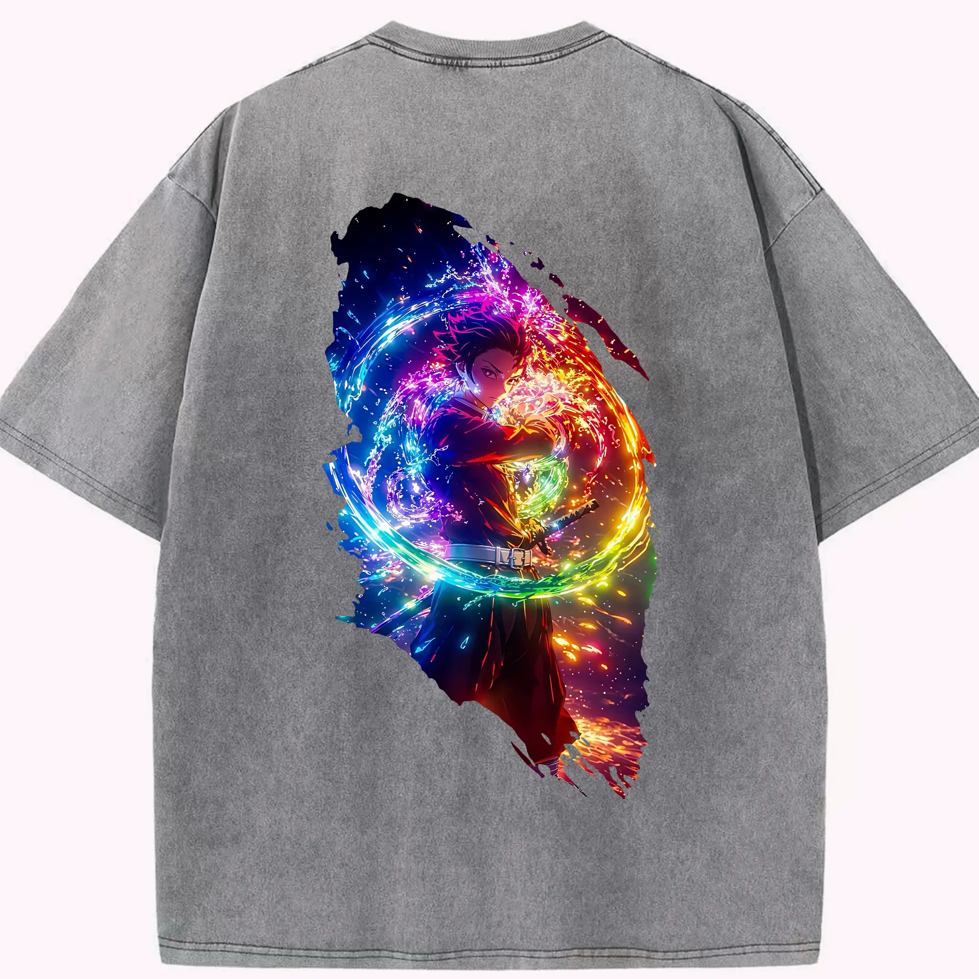 鬼滅の刃 グッズ,竈門 炭治郎 - 綿100% 半袖Tシャツ ・ バックプリント ・ 快適 通気性 ・ 日常使い 散歩 スポーツ用