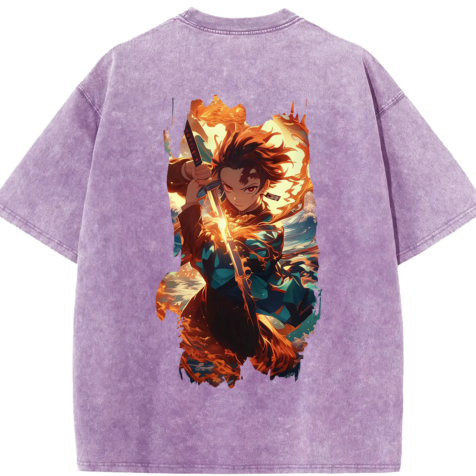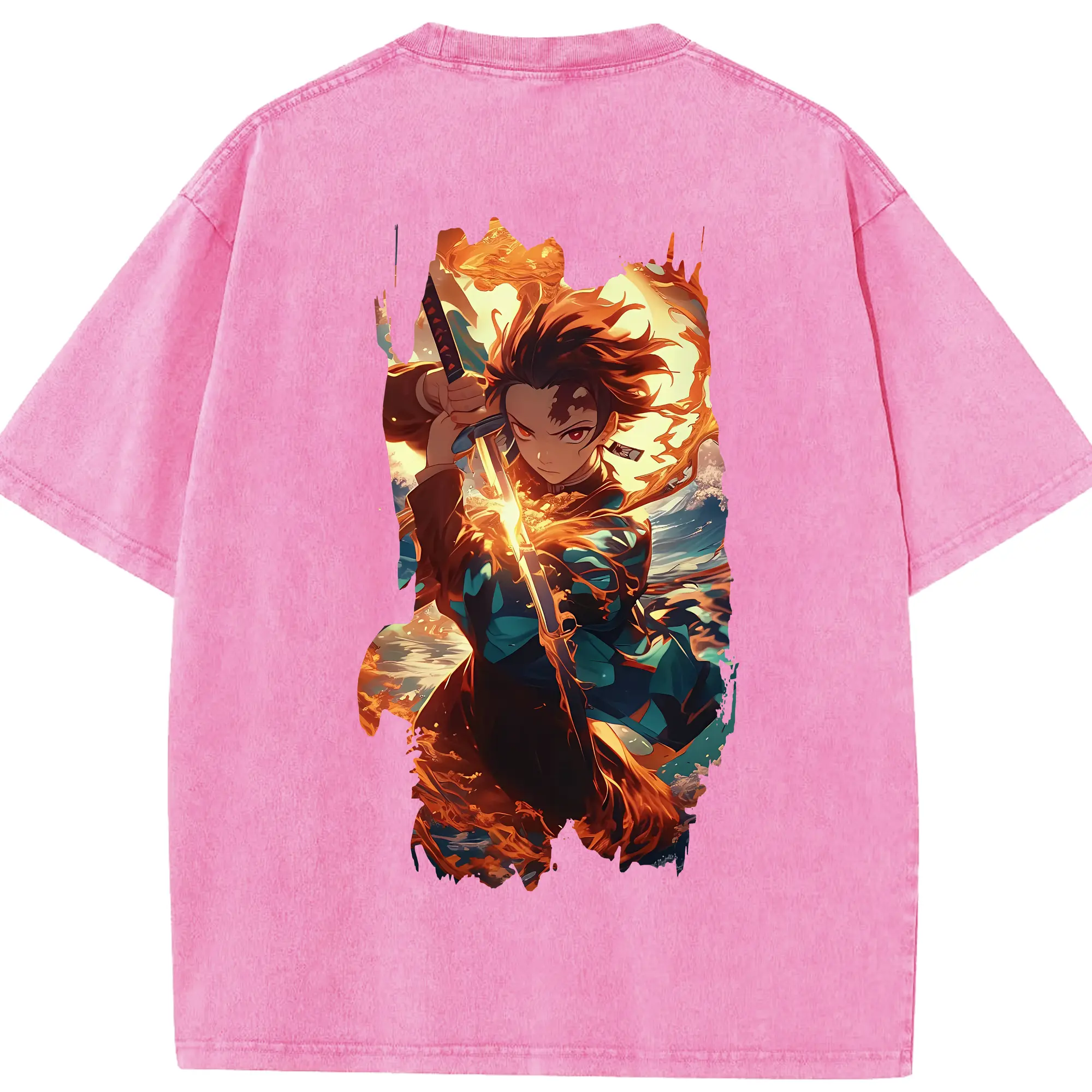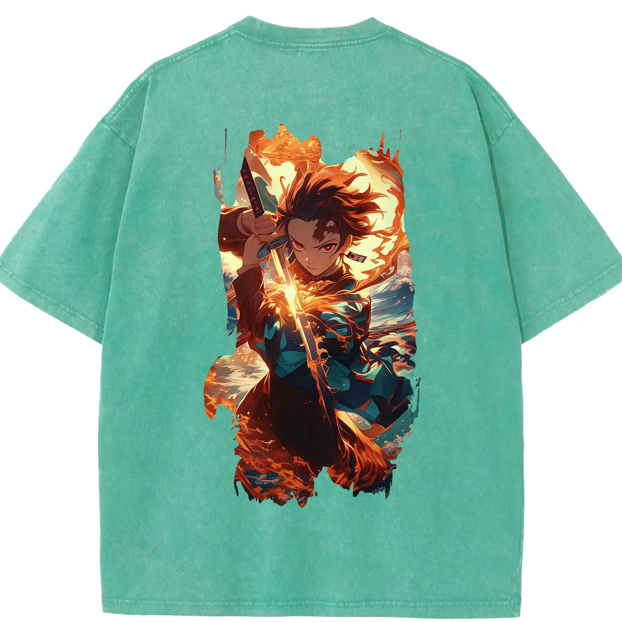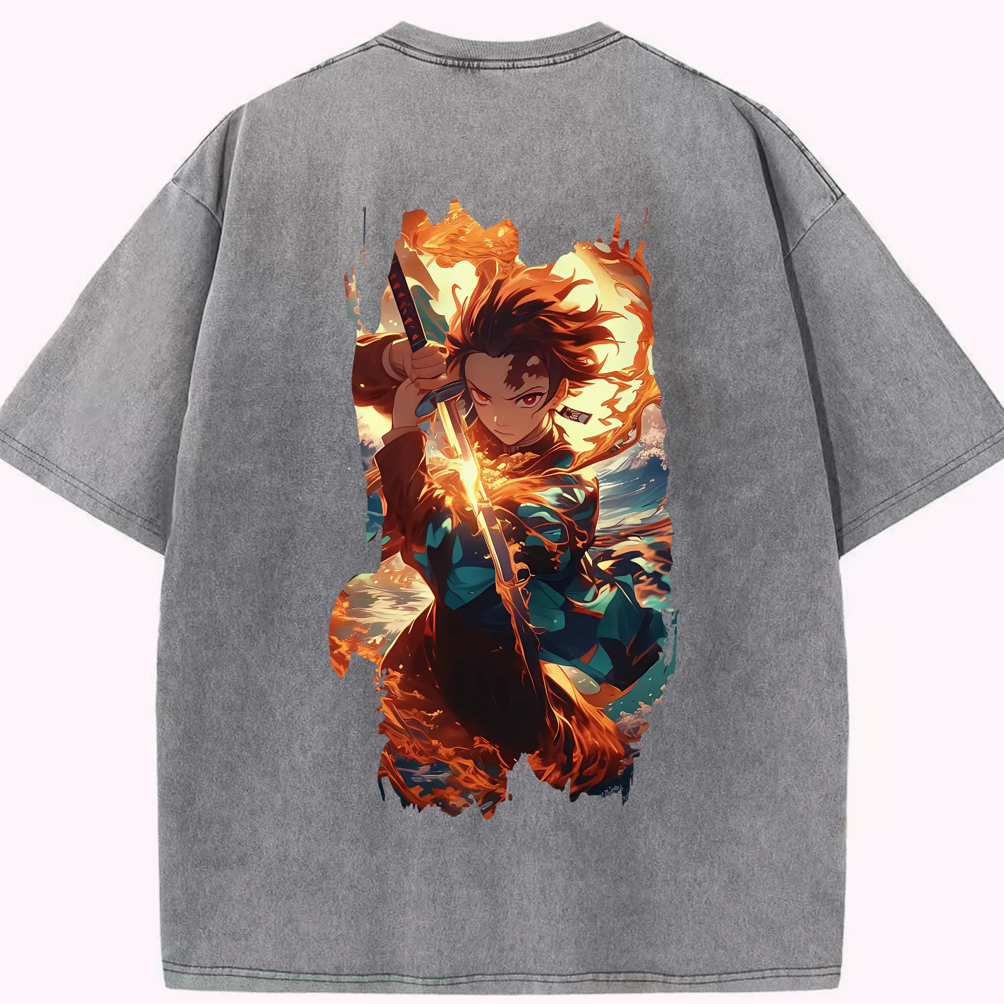 鬼滅の刃 グッズ,竈門 炭治郎 - 綿100% 半袖Tシャツ ・ バックプリント ・ 快適 通気性 ・ 日常使い 散歩 スポーツ用