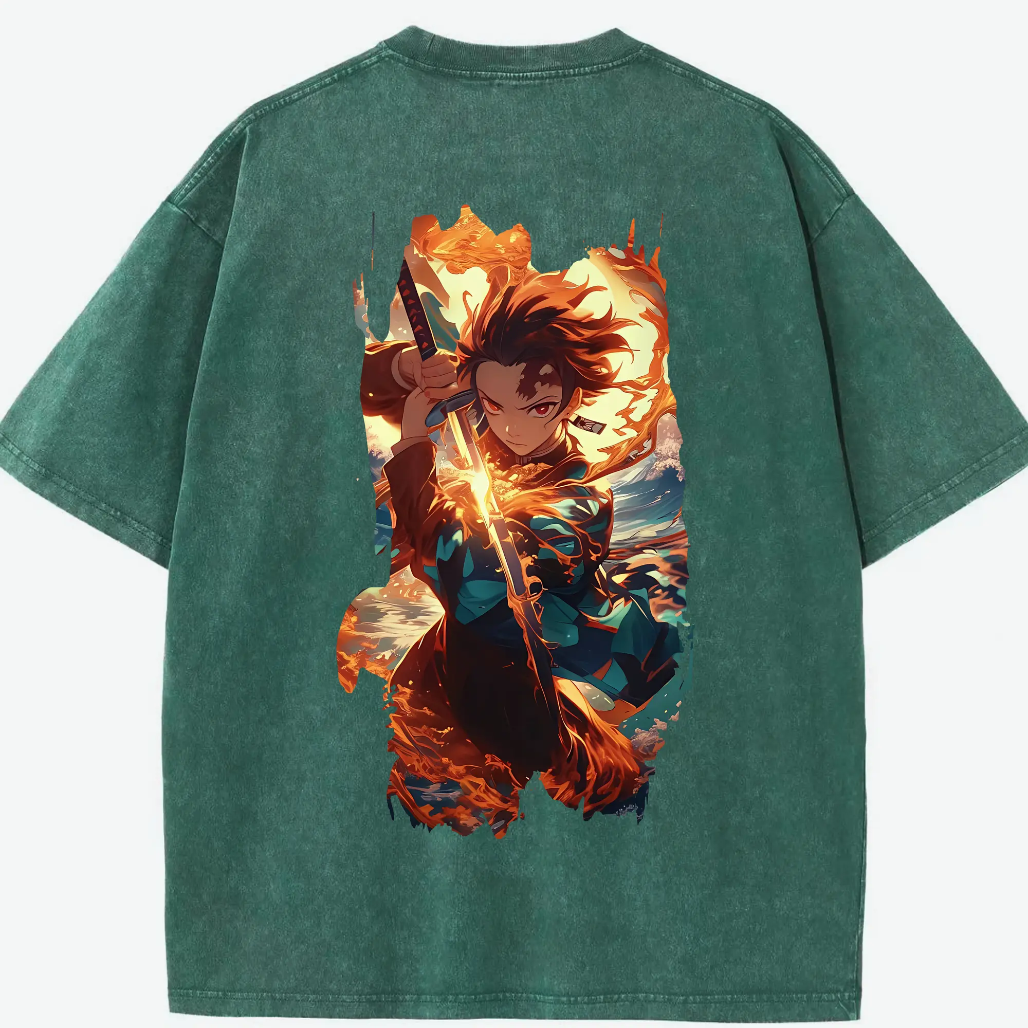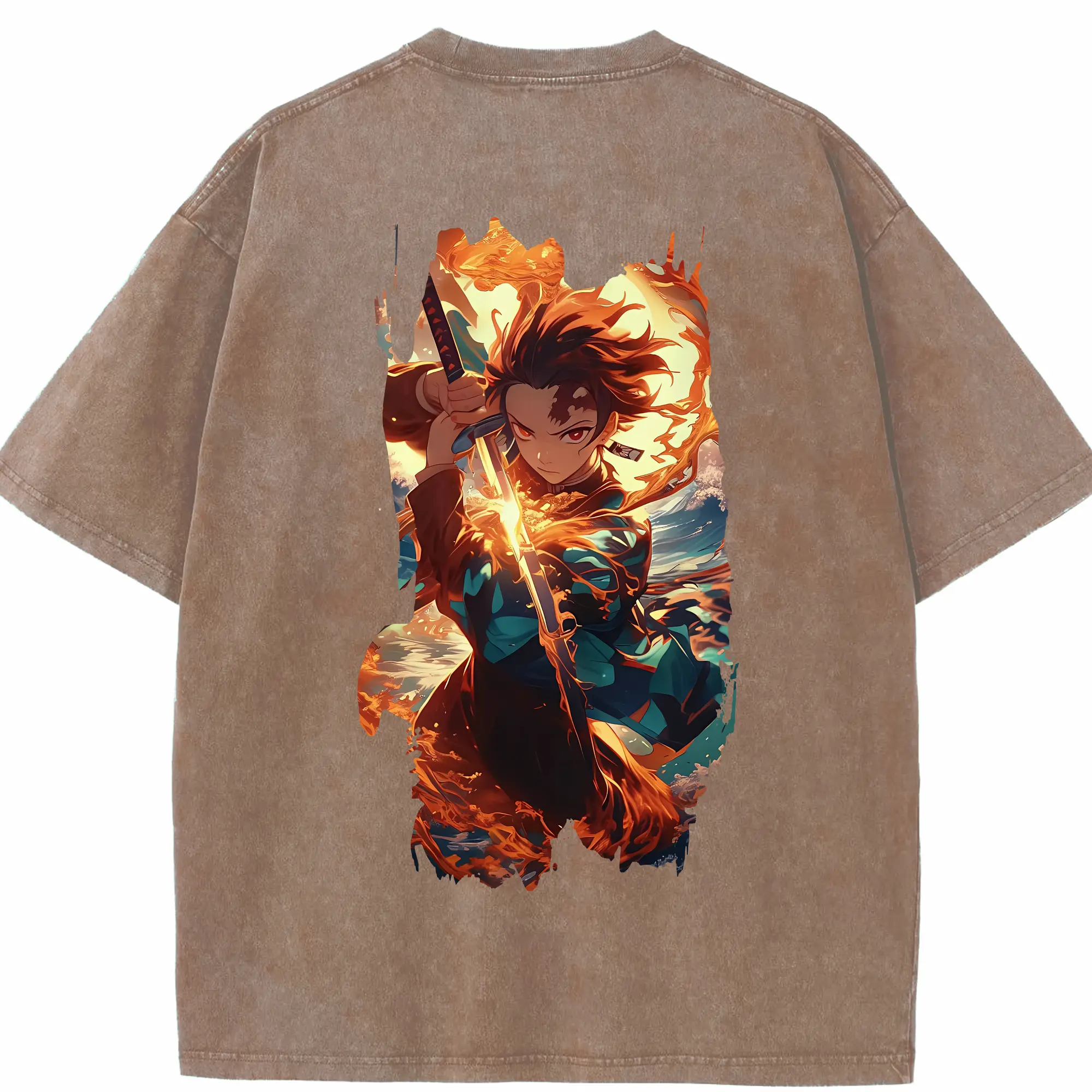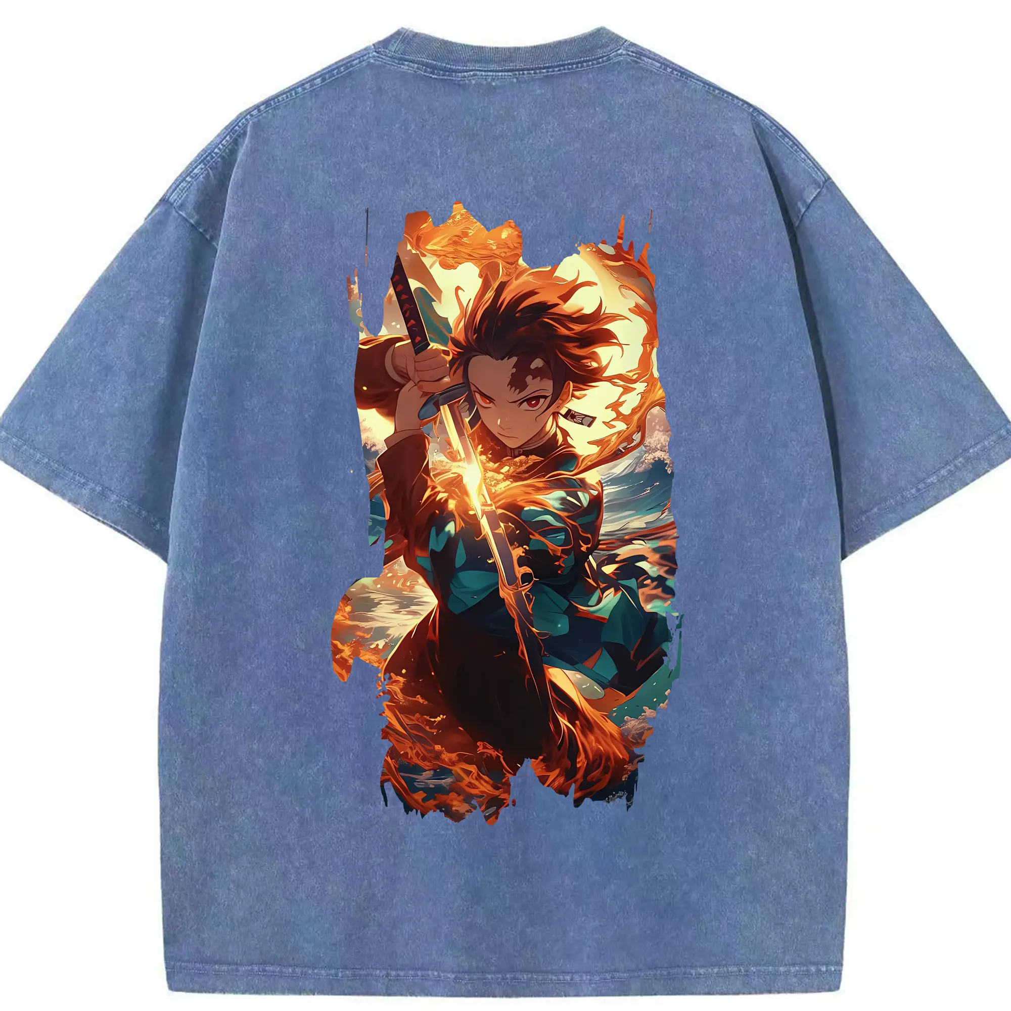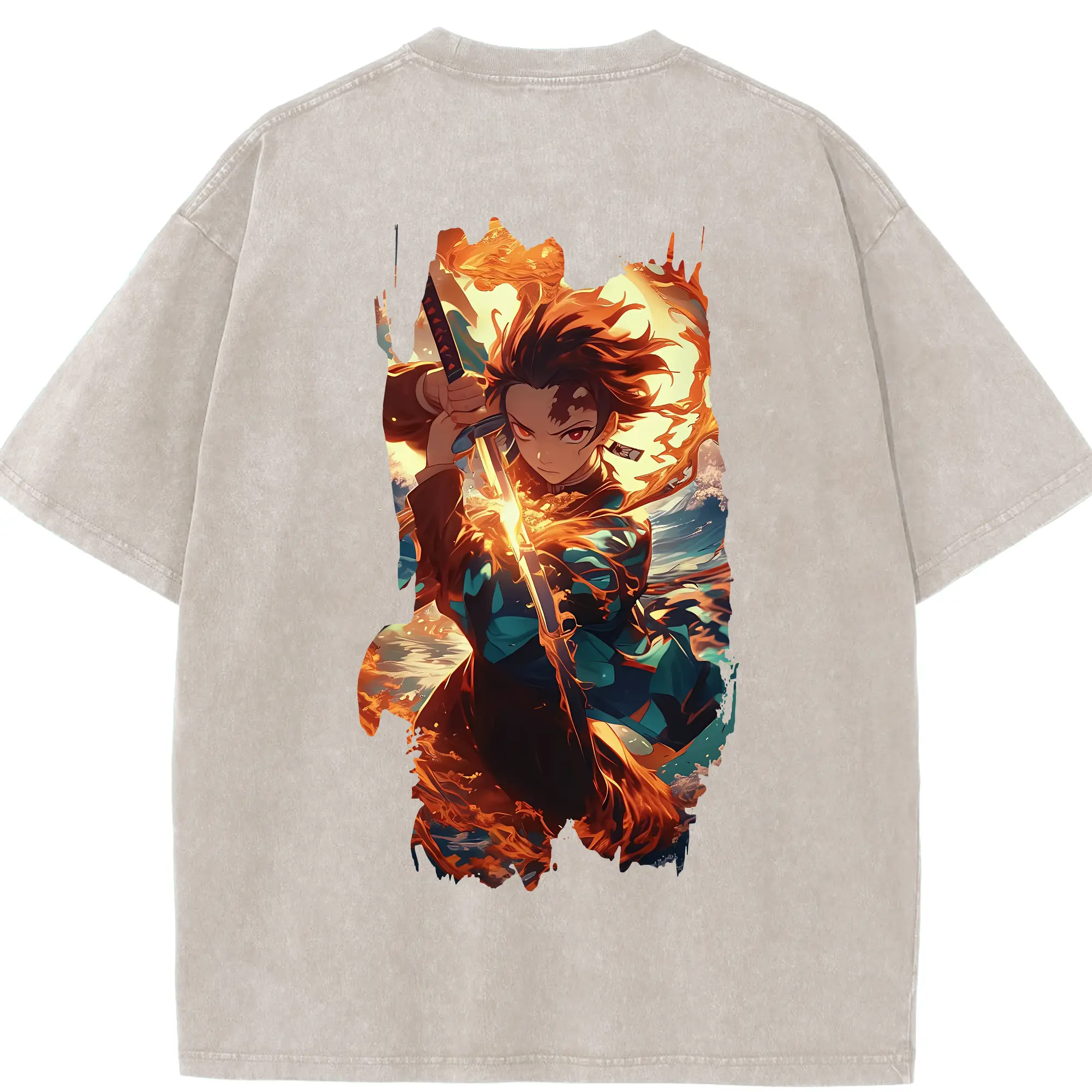 鬼滅の刃 グッズ,竈門 炭治郎 - 綿100% 半袖Tシャツ ・ バックプリント ・ 快適 通気性 ・ 日常使い 散歩 スポーツ用
