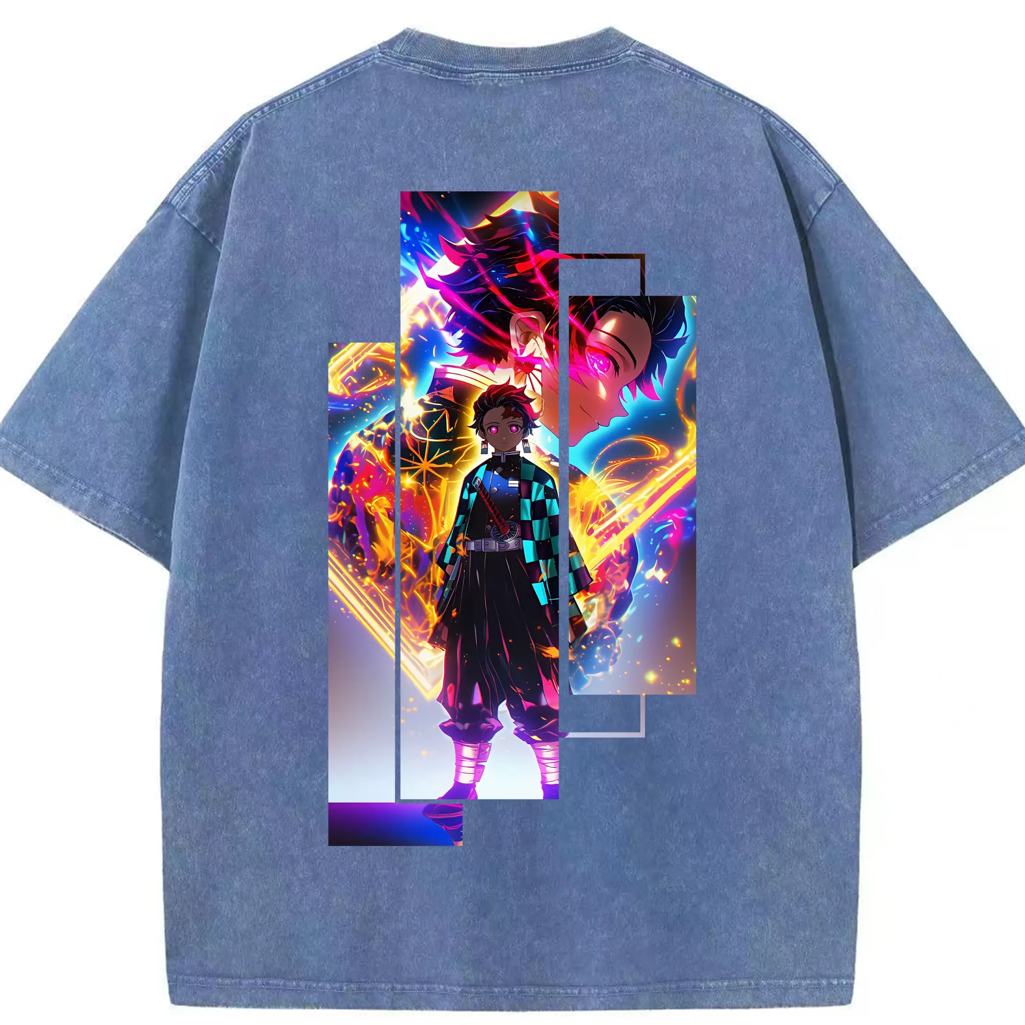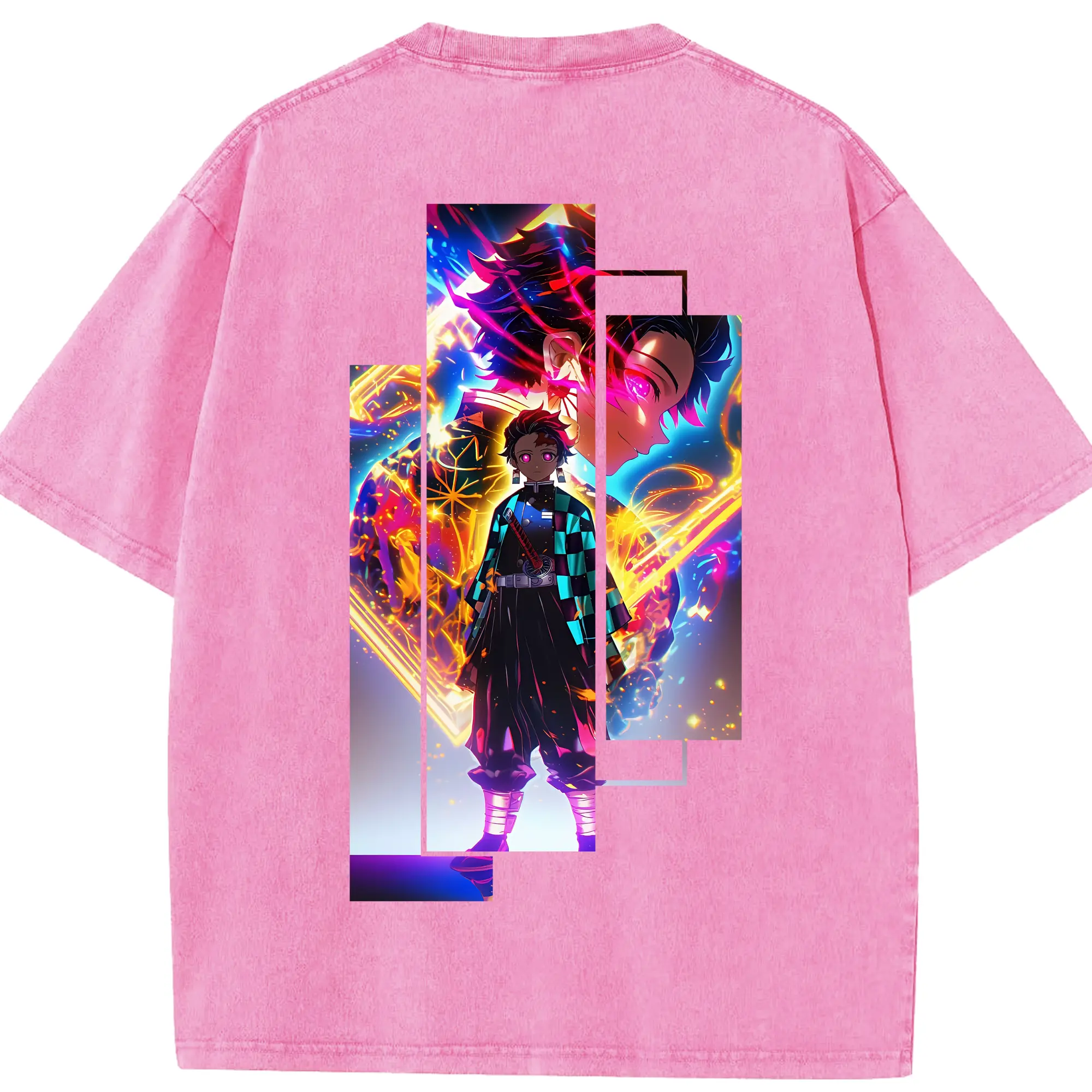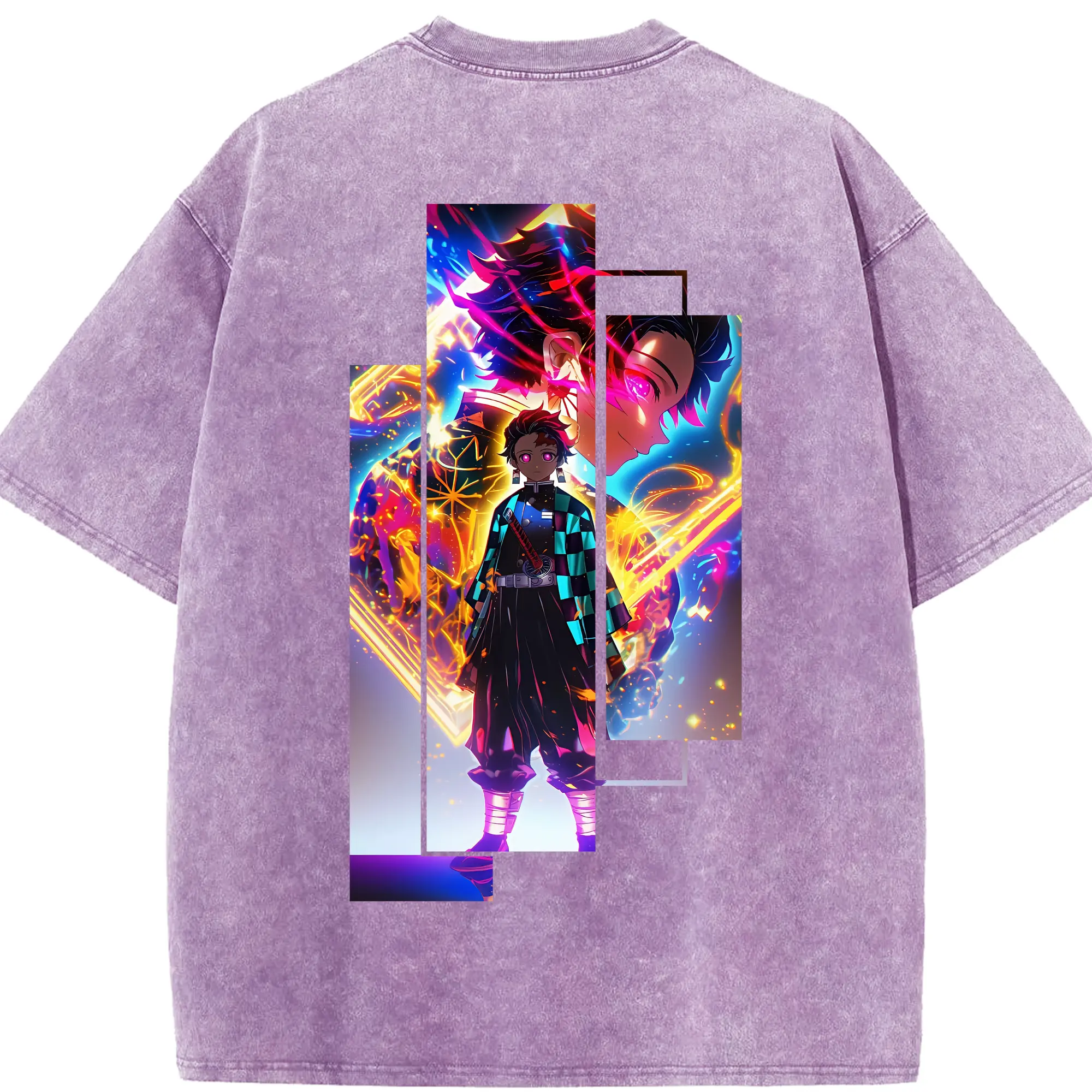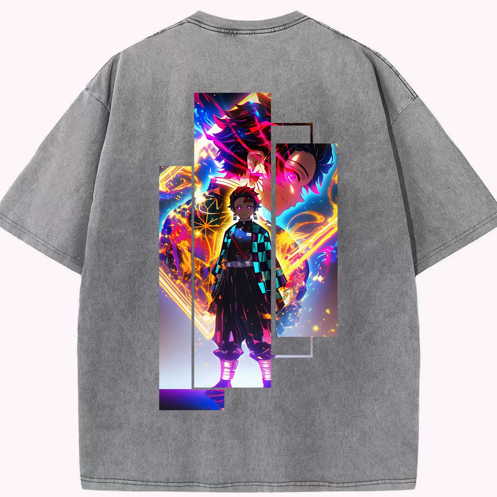 鬼滅の刃 グッズ,冨岡 義勇 - 綿100% ヴィンテージ風 半袖Tシャツ ・ 背面プリント ・ 柔らか肌触り ・ 通気性 快適 ・ スポーツ カジュアル 外出用