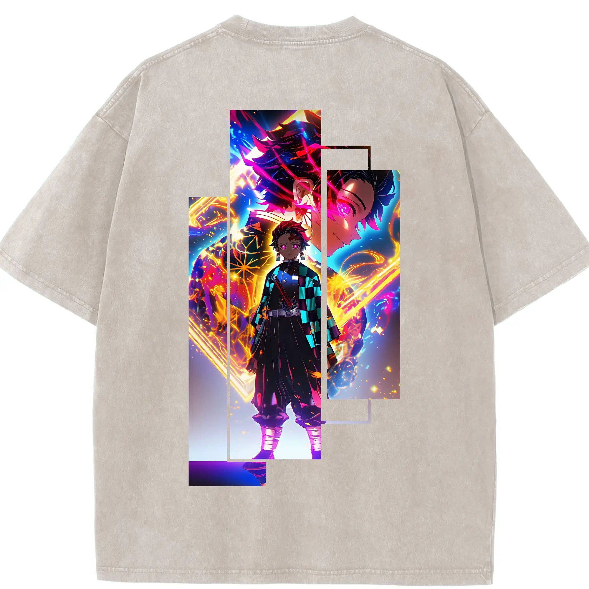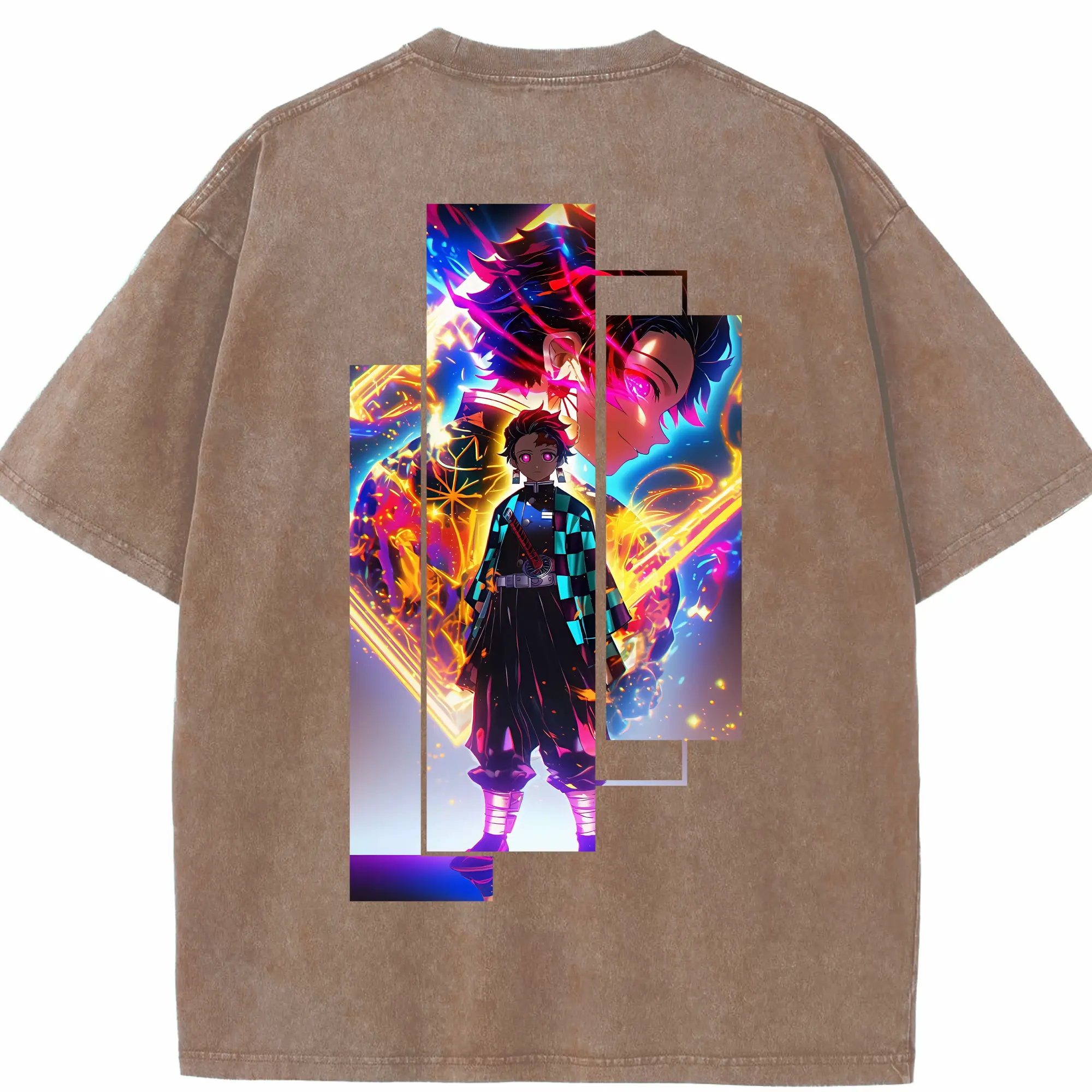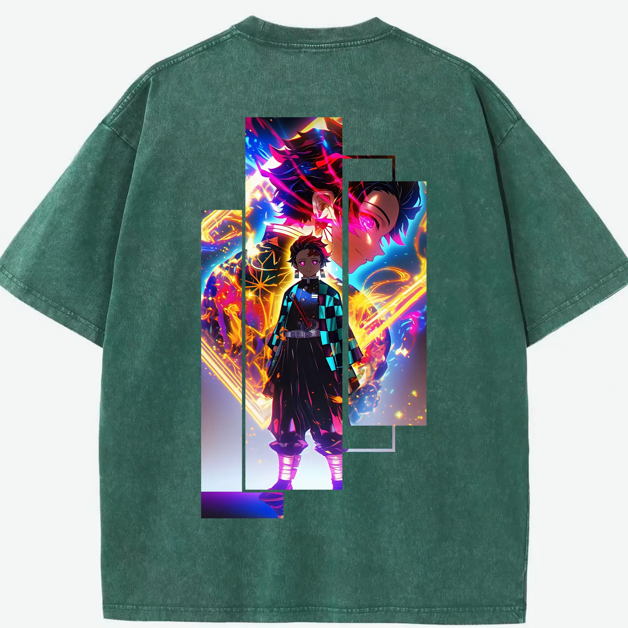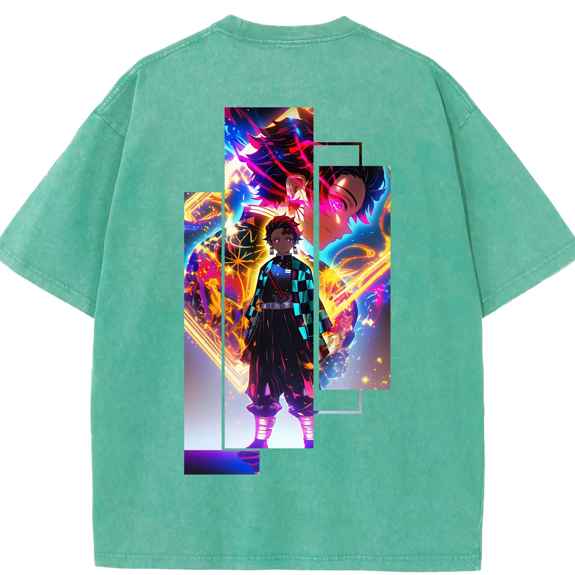 鬼滅の刃 グッズ,冨岡 義勇 - 綿100% ヴィンテージ風 半袖Tシャツ ・ 背面プリント ・ 柔らか肌触り ・ 通気性 快適 ・ スポーツ カジュアル 外出用