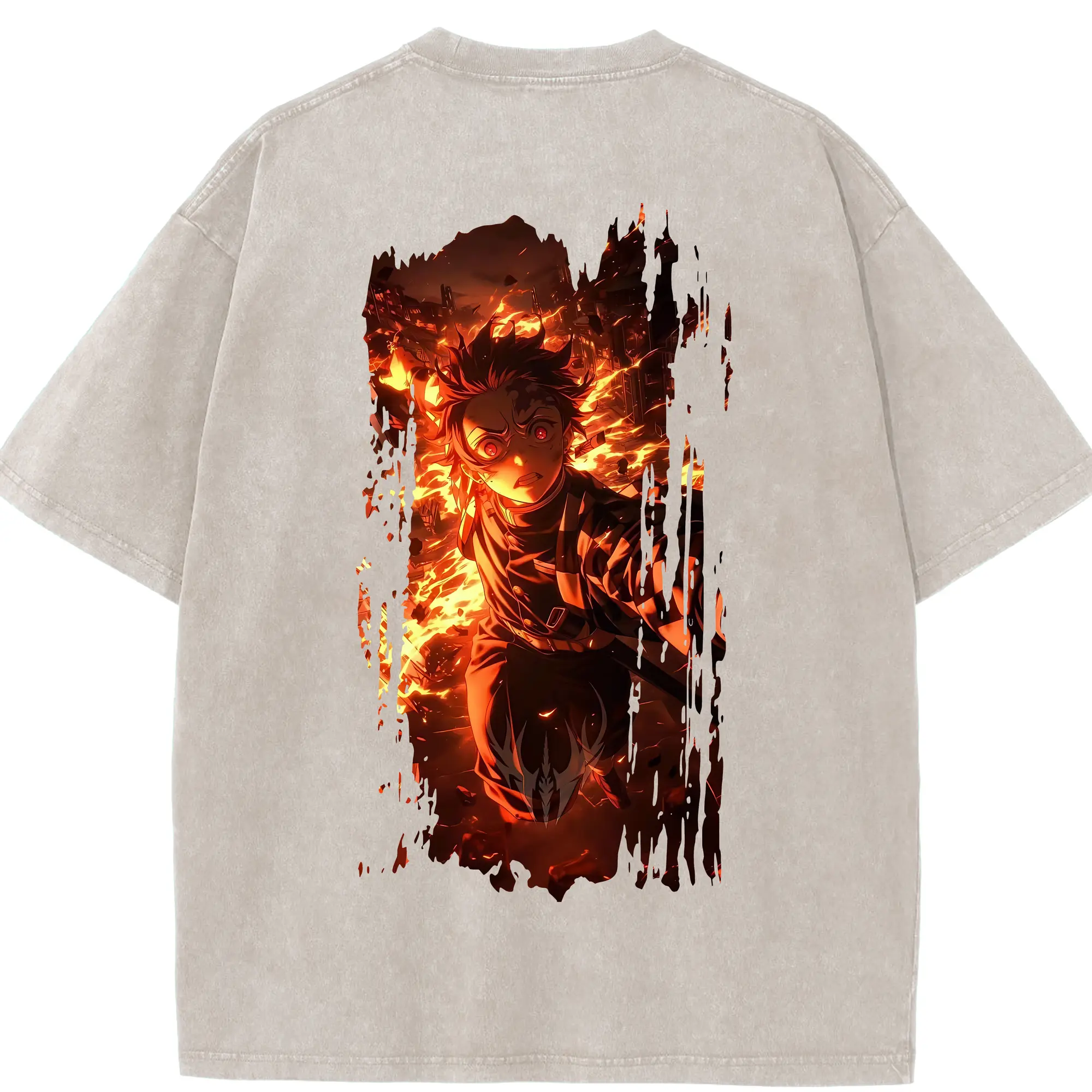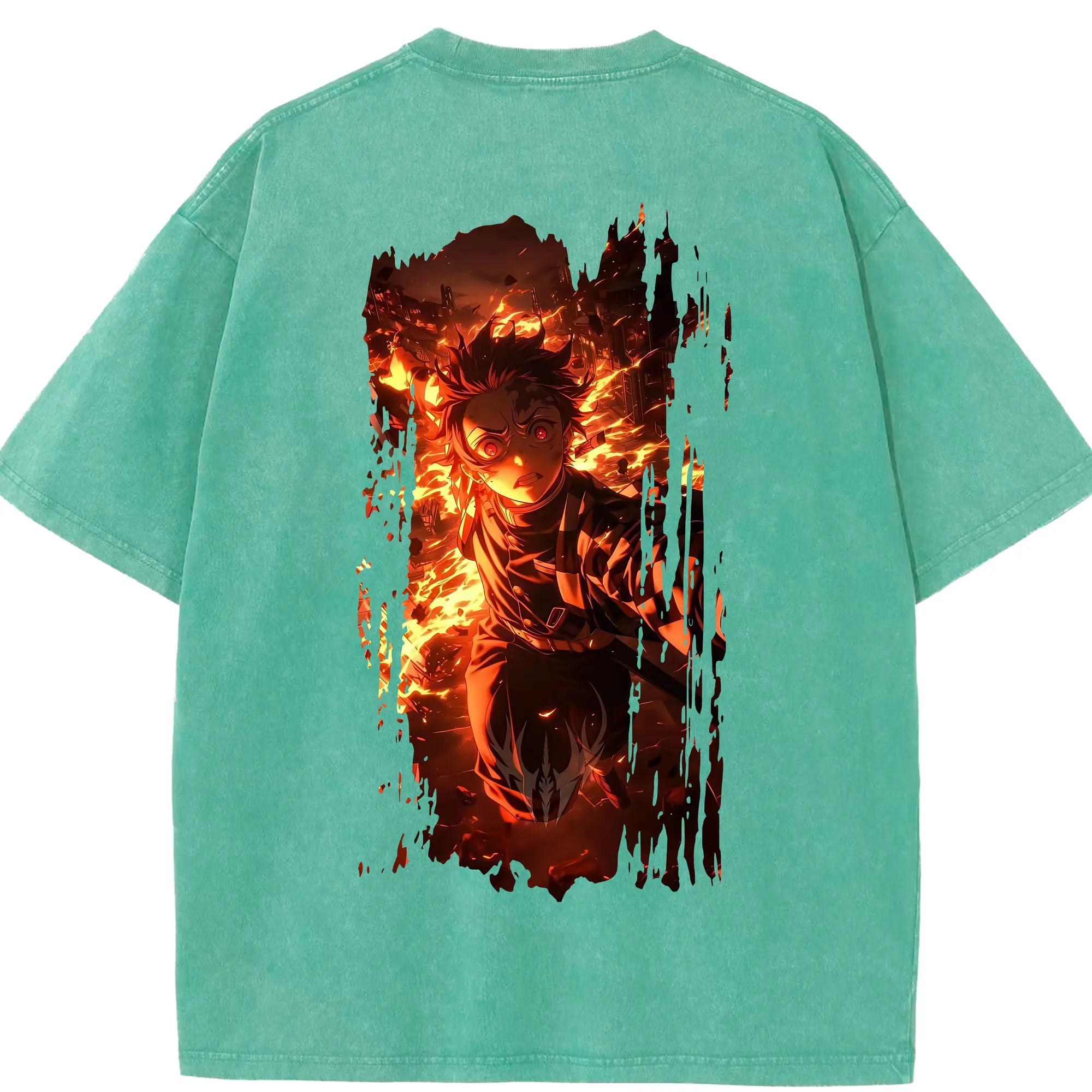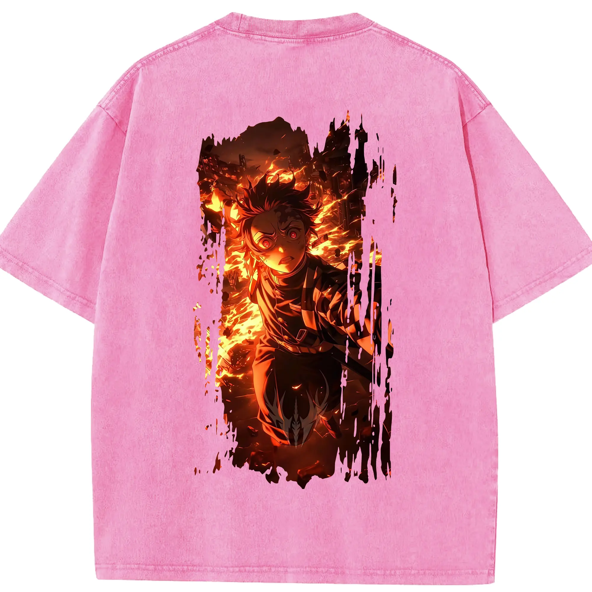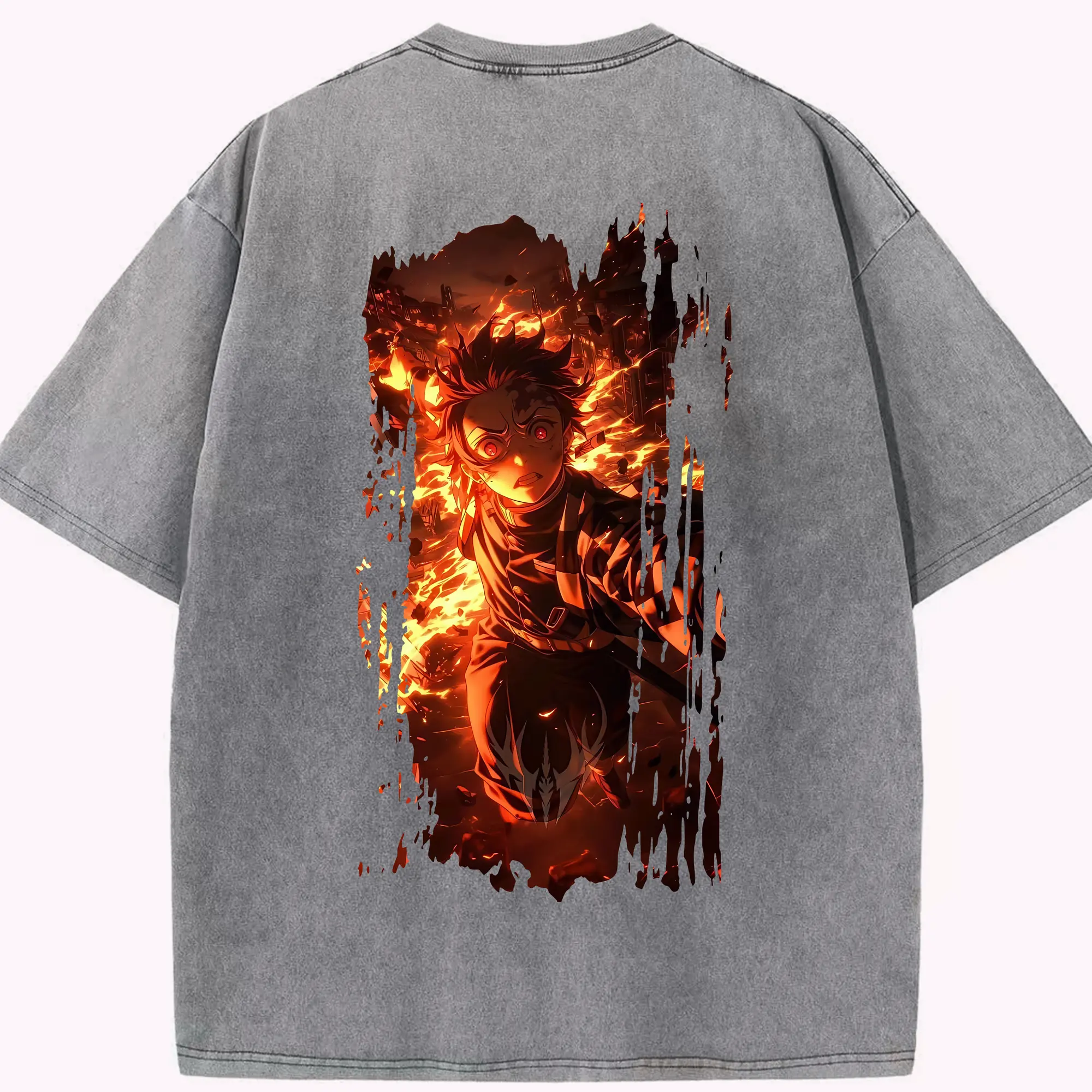 鬼滅の刃 グッズ,竈門 炭治郎 - 綿100% 半袖Tシャツ ・ バックプリント ・ 快適 通気性 ・ 日常使い 散歩 スポーツ用