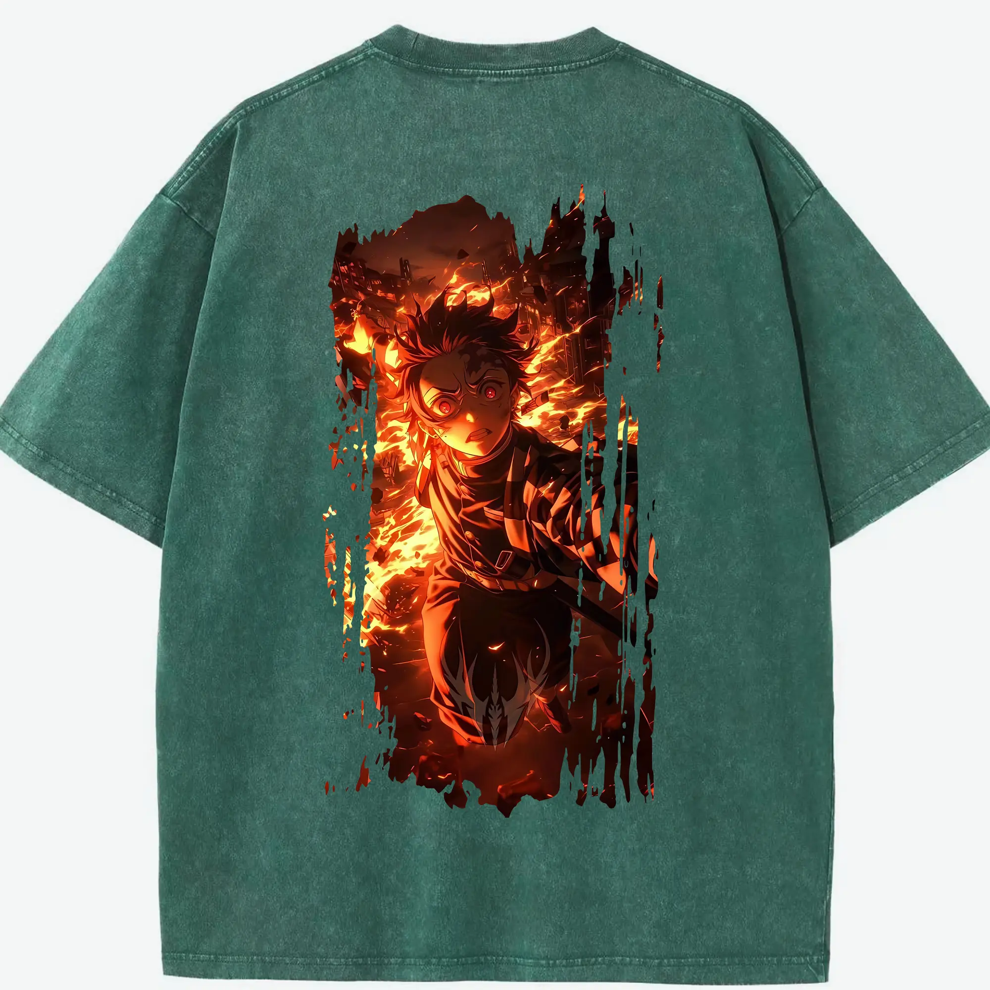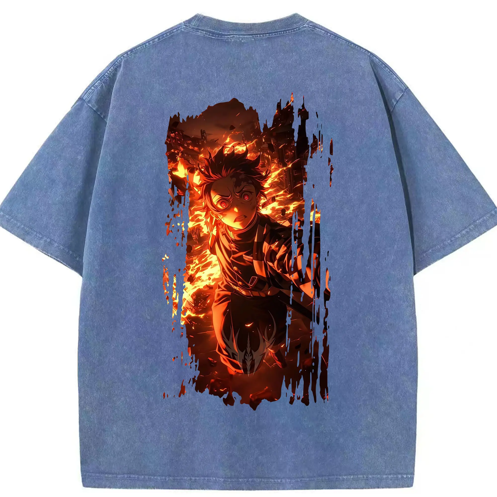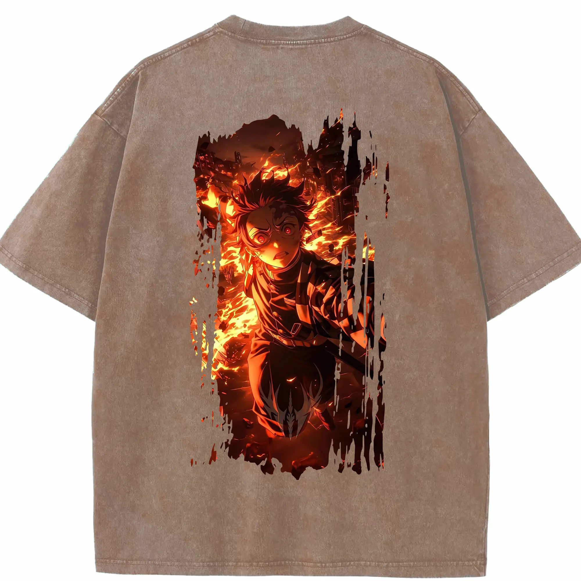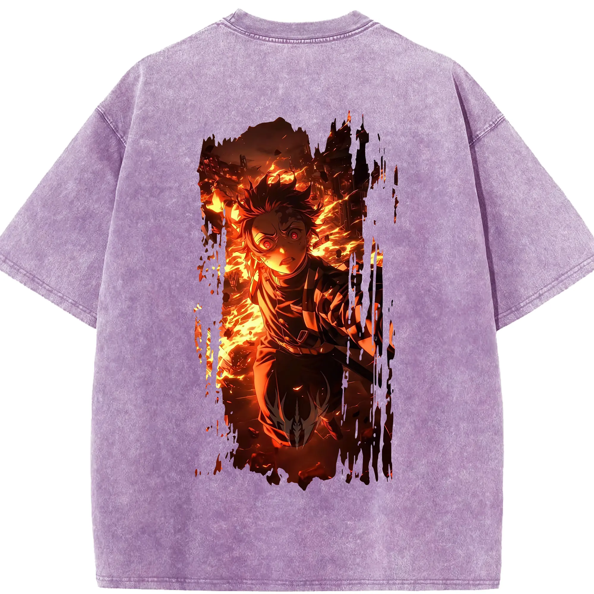 鬼滅の刃 グッズ,竈門 炭治郎 - 綿100% 半袖Tシャツ ・ バックプリント ・ 快適 通気性 ・ 日常使い 散歩 スポーツ用