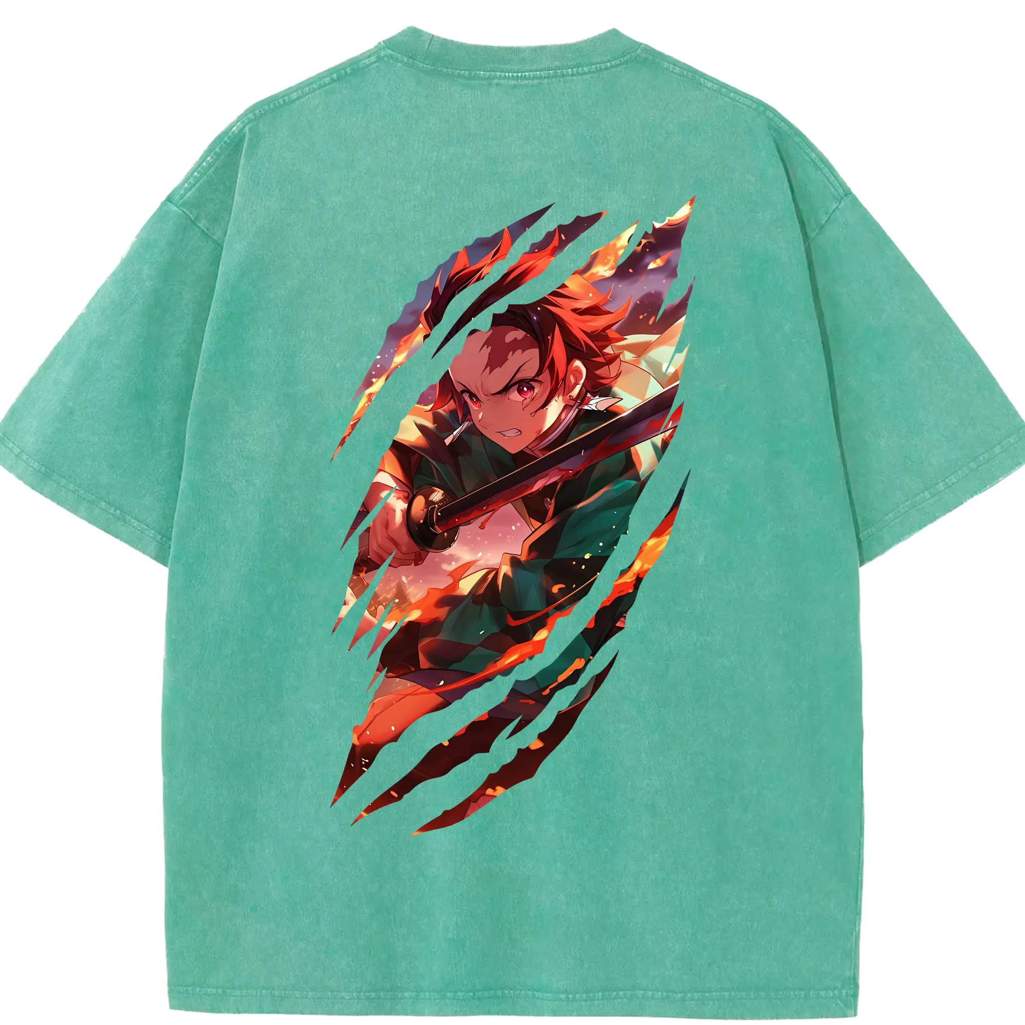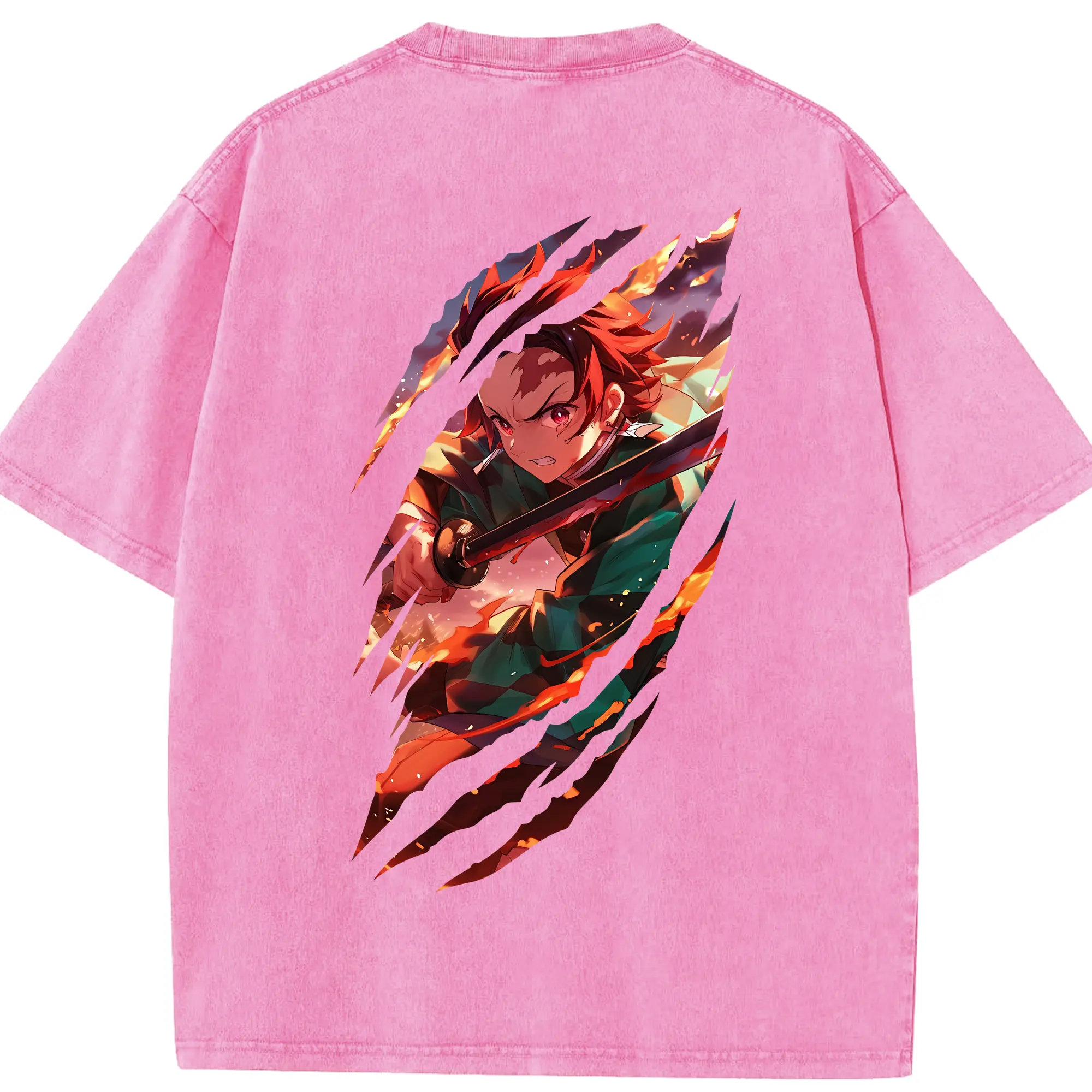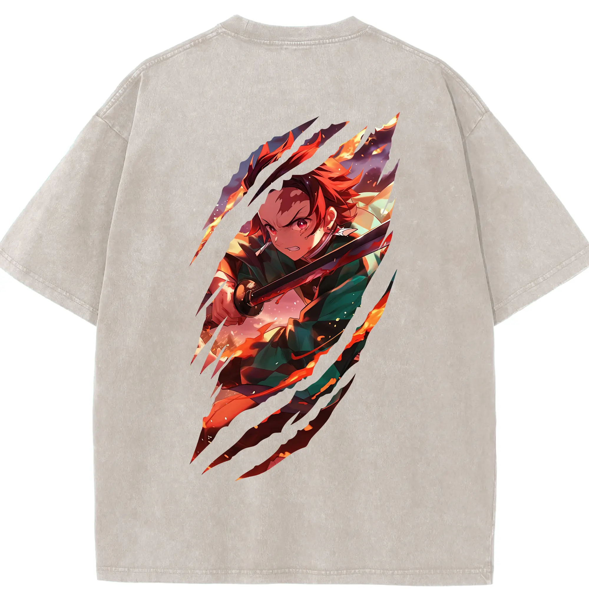 鬼滅の刃 グッズ,竈門 炭治郎 - 綿100% 半袖Tシャツ ・ バックプリント ・ 快適 通気性 ・ 日常使い 散歩 スポーツ用