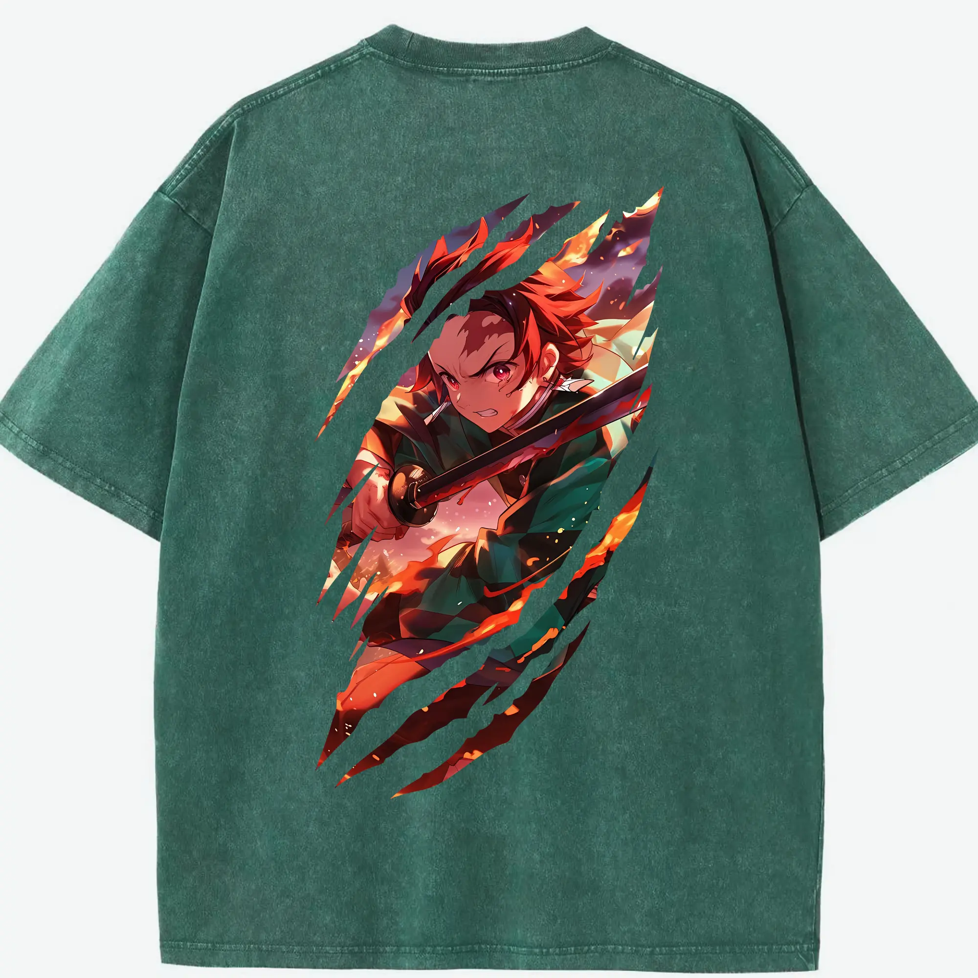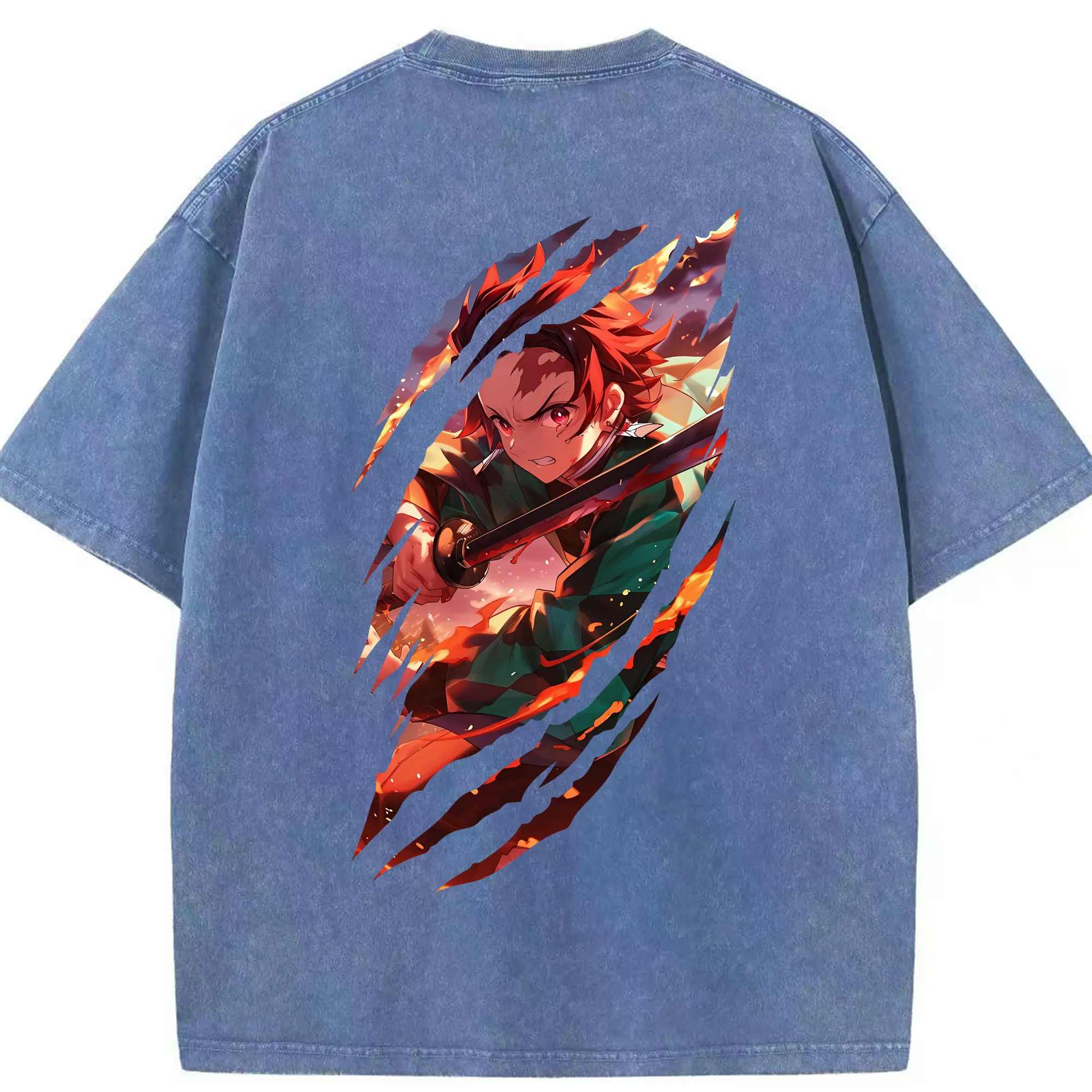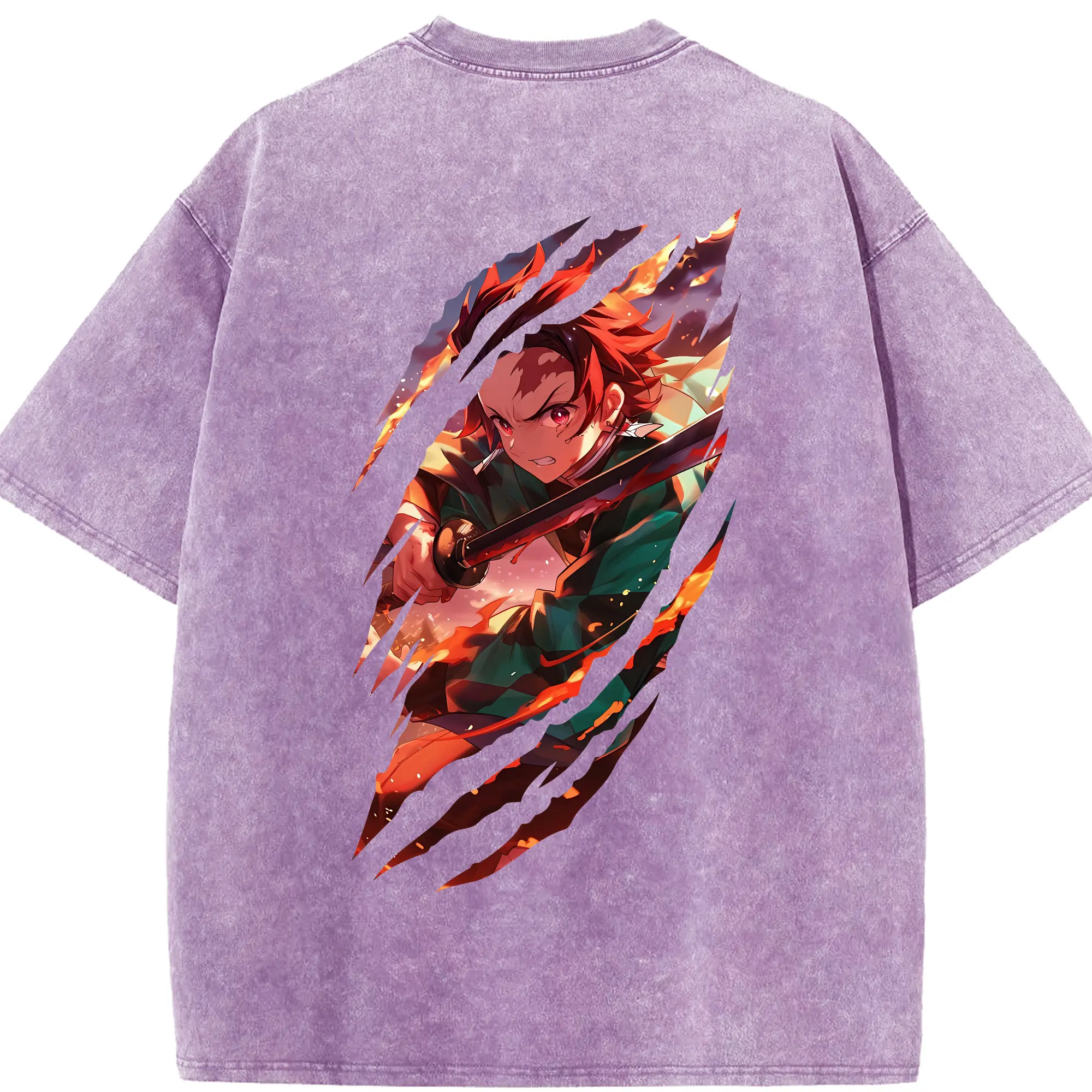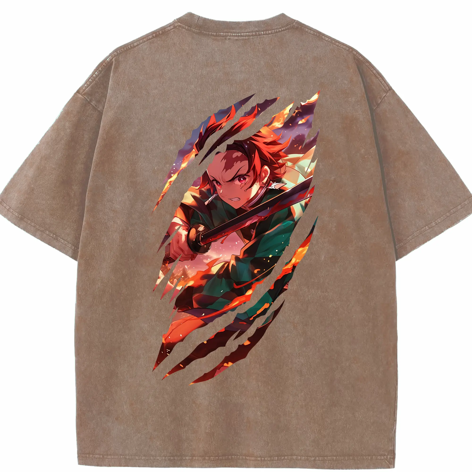 鬼滅の刃 グッズ,竈門 炭治郎 - 綿100% 半袖Tシャツ ・ バックプリント ・ 快適 通気性 ・ 日常使い 散歩 スポーツ用