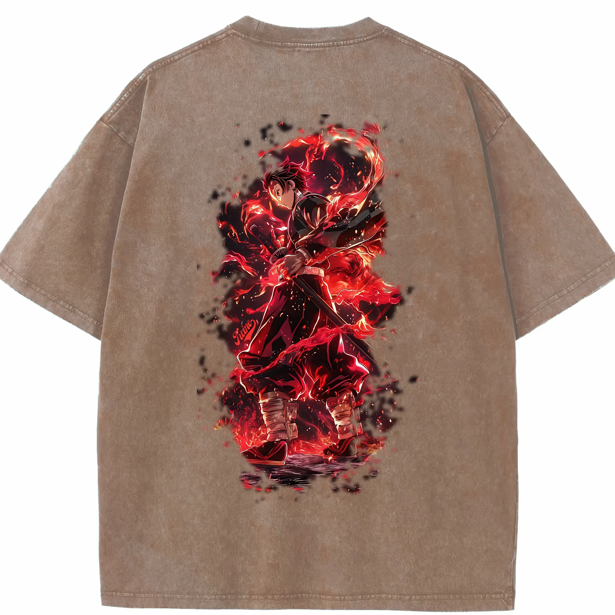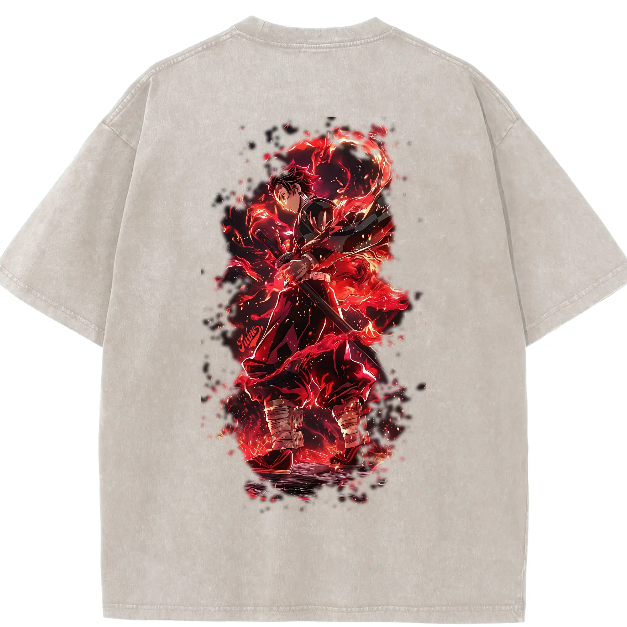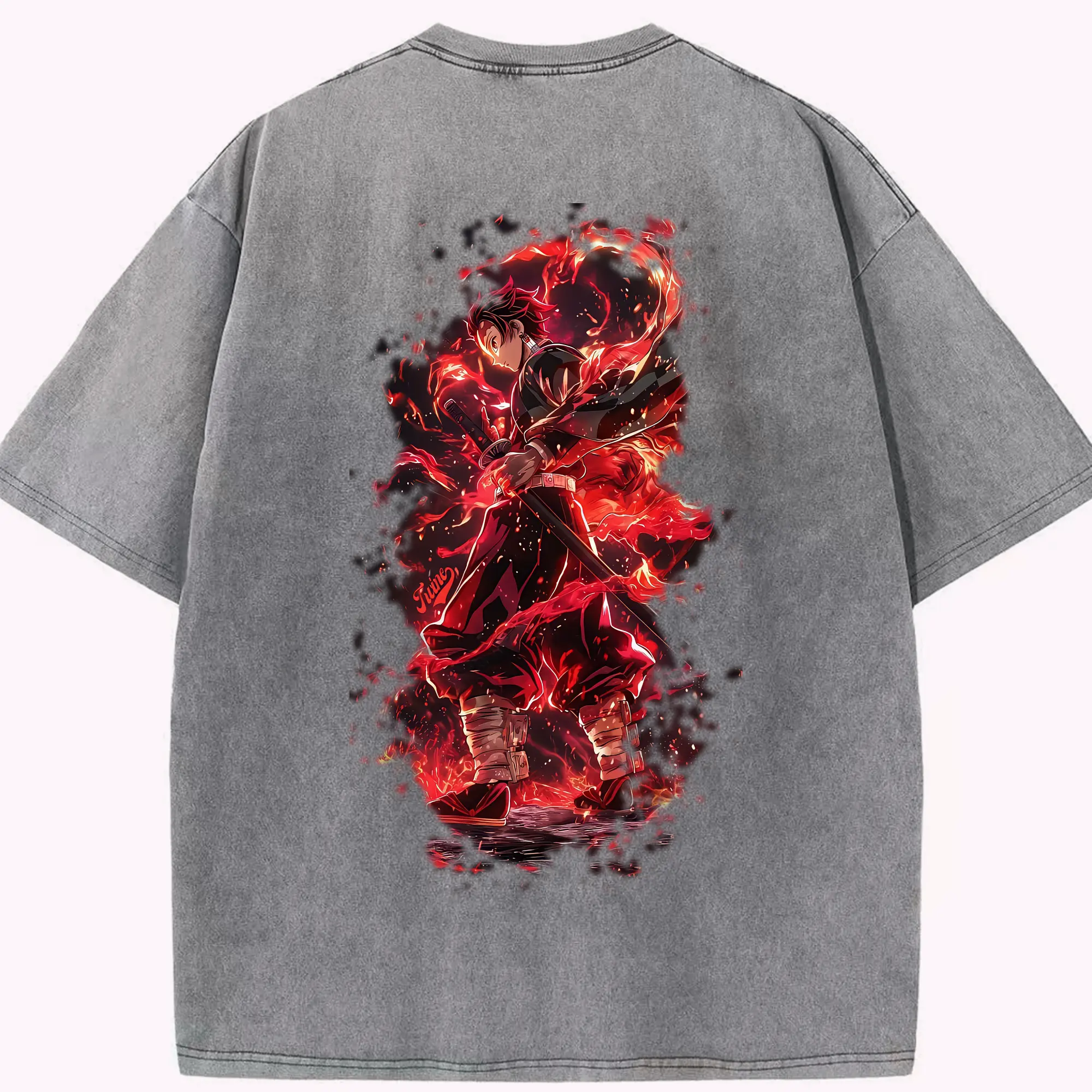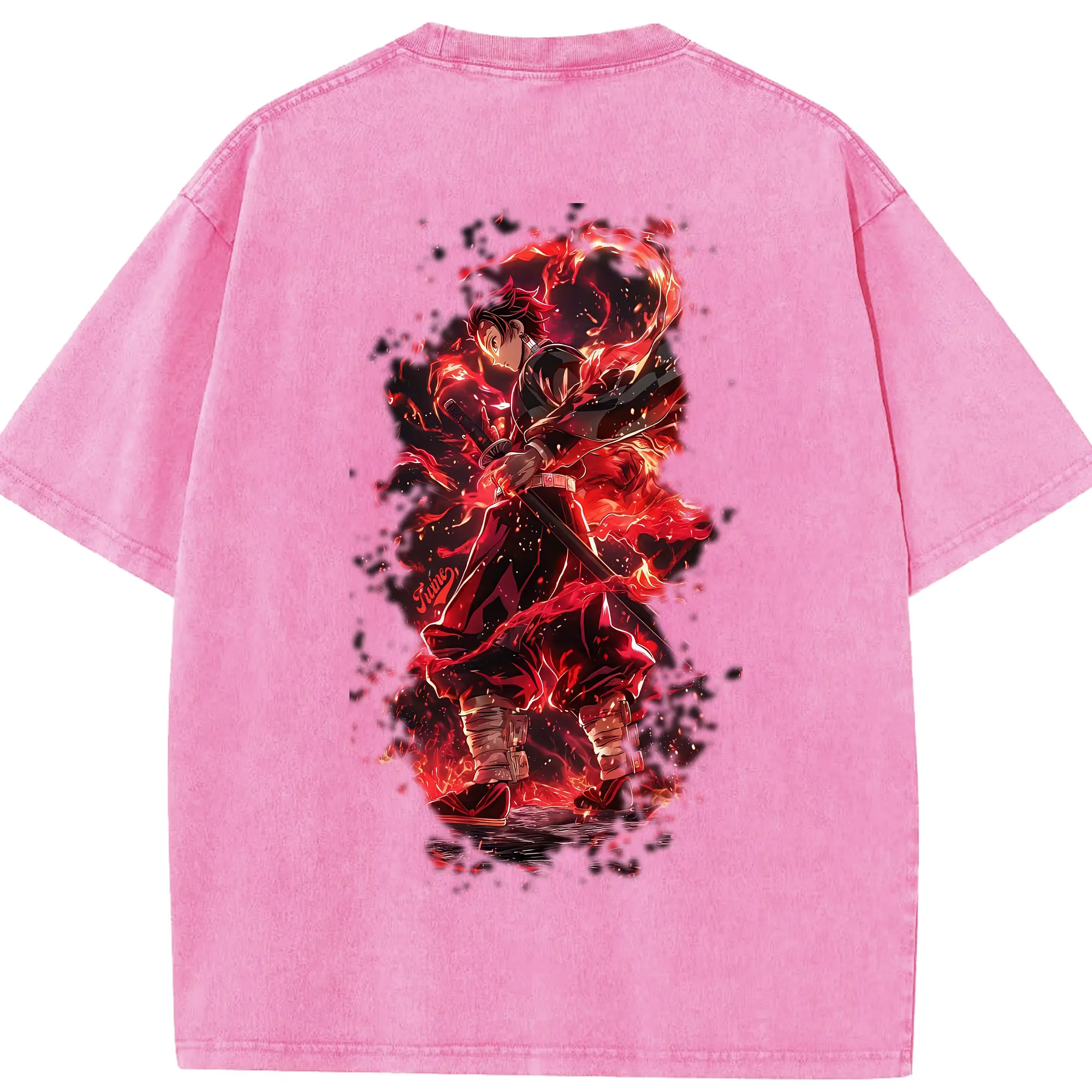 鬼滅の刃 グッズ,竈門 炭治郎 - 綿100% 半袖Tシャツ ・ バックプリント ・ 快適 通気性 ・ 日常使い 散歩 スポーツ用