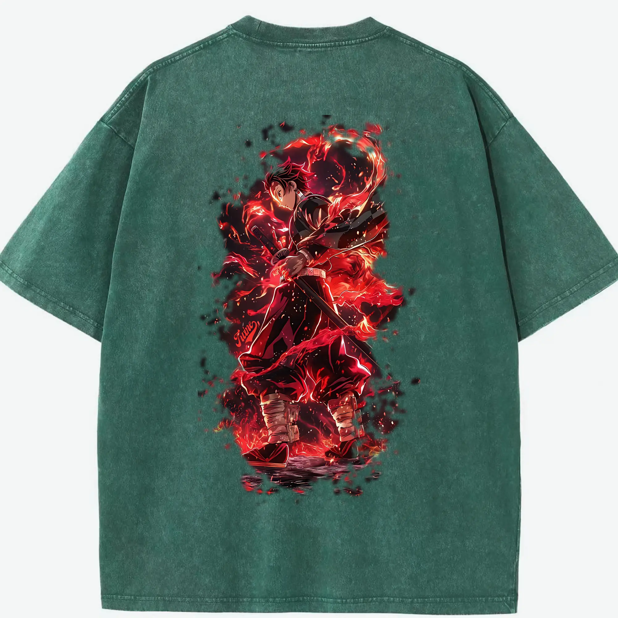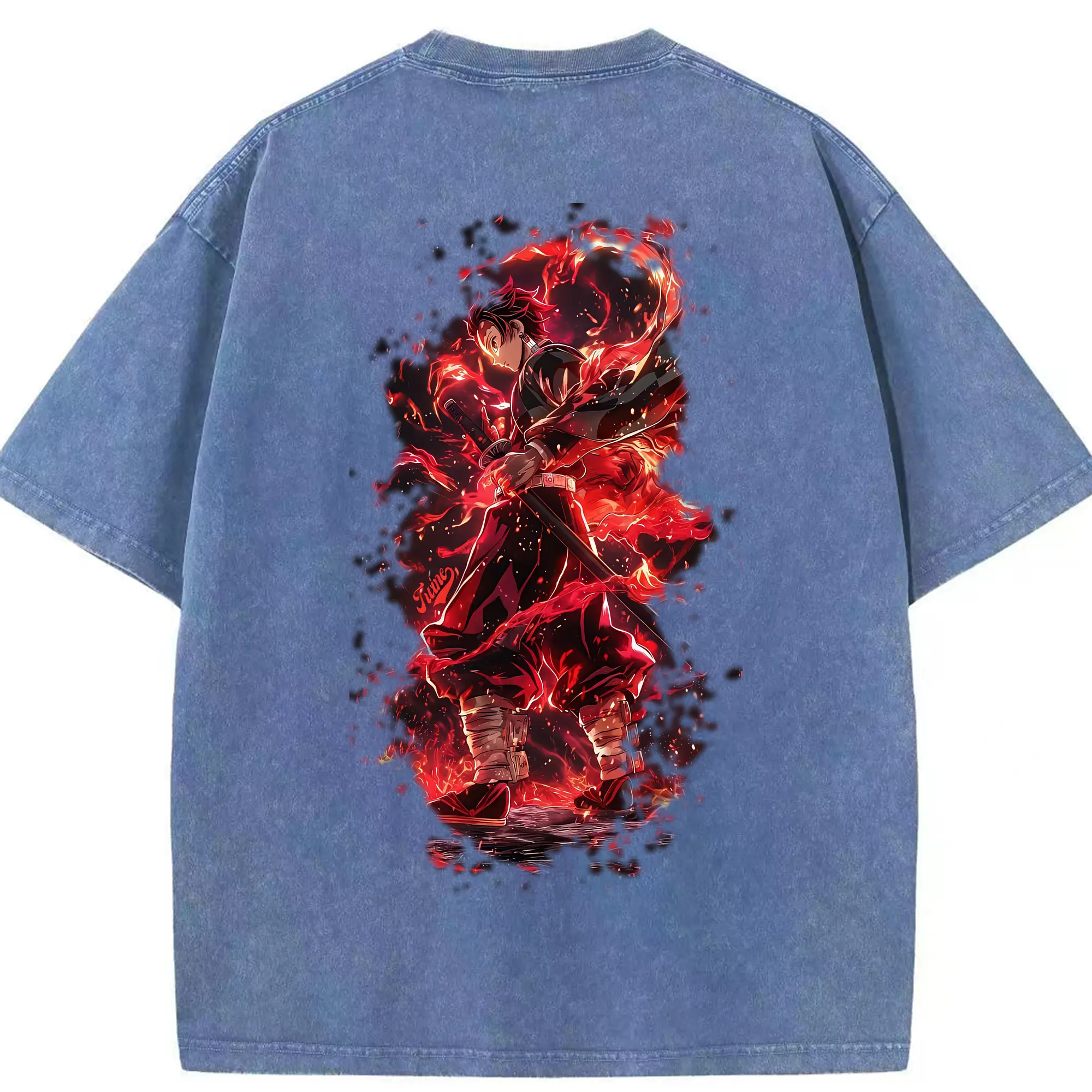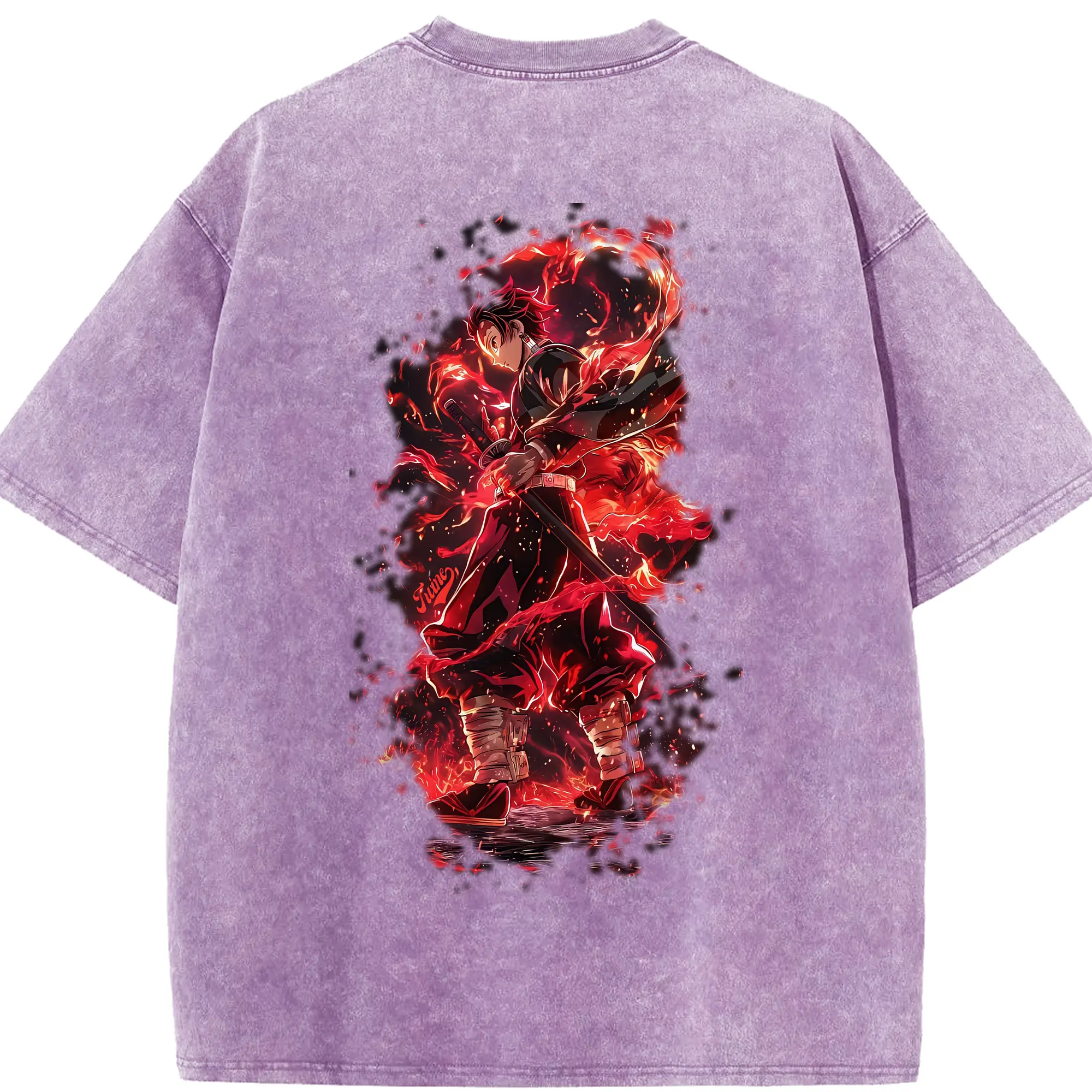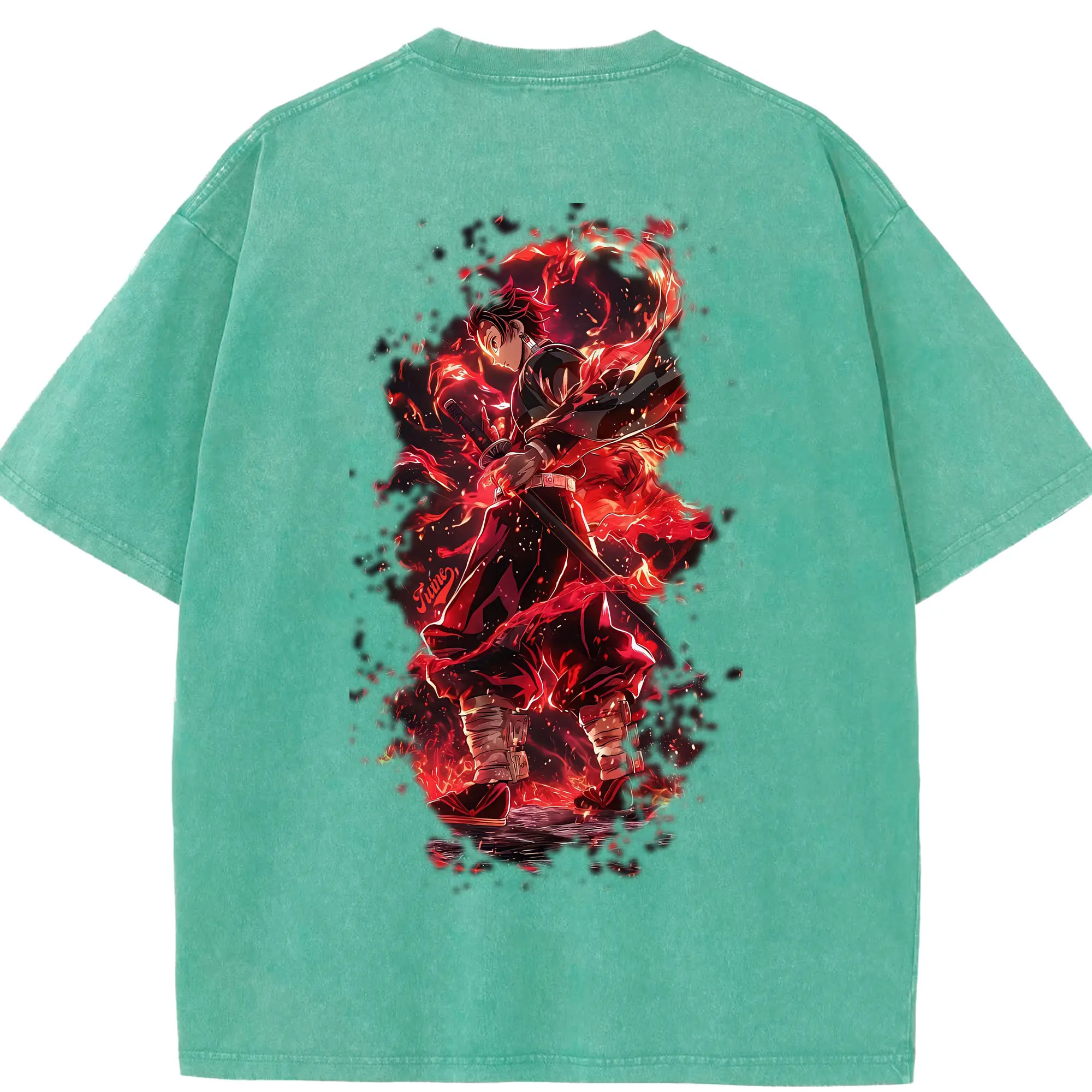 鬼滅の刃 グッズ,竈門 炭治郎 - 綿100% 半袖Tシャツ ・ バックプリント ・ 快適 通気性 ・ 日常使い 散歩 スポーツ用