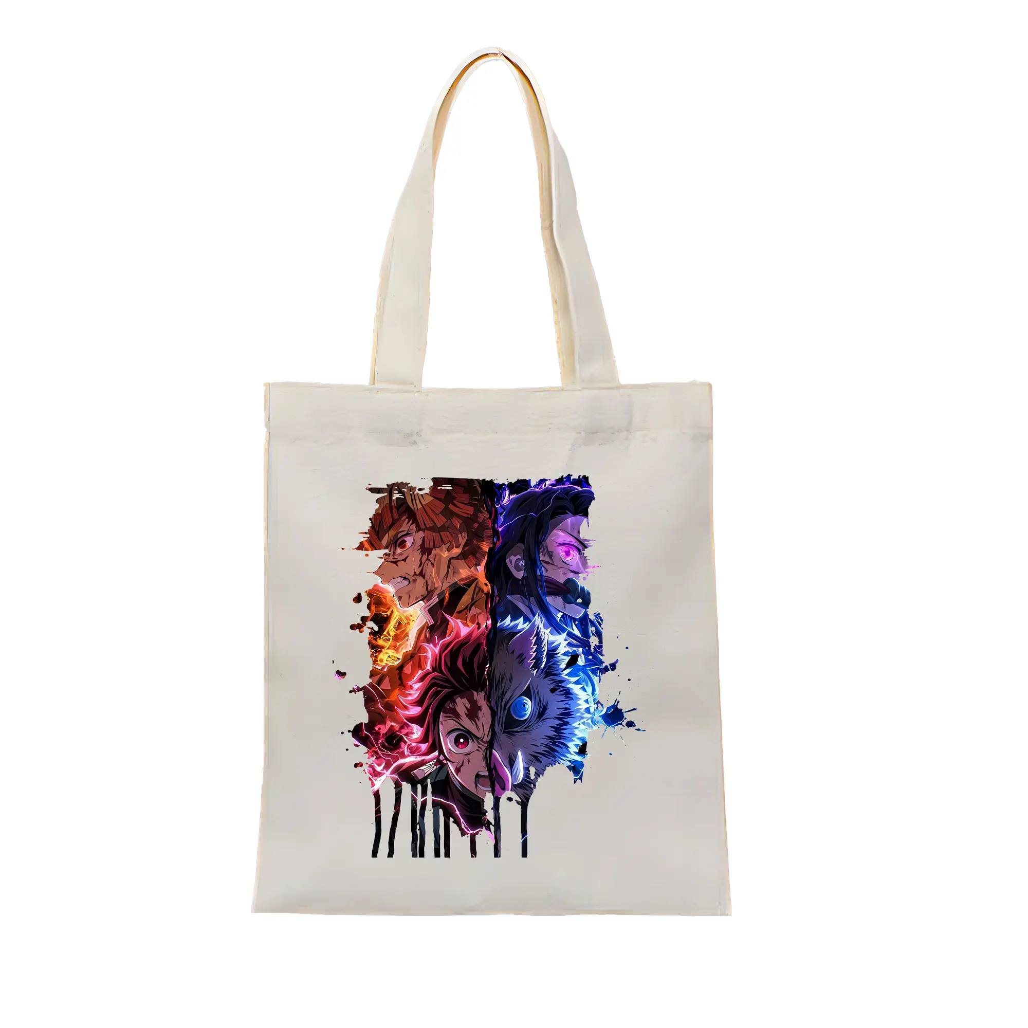 鬼滅の刃 グッズ,竈門 炭治郎 - 縦型キャンバス手提げバッグ(トートバッグ) ・ キャンバス素材 ・ ショッピング用 ・ 軽量 丈夫 お手入れ簡単
