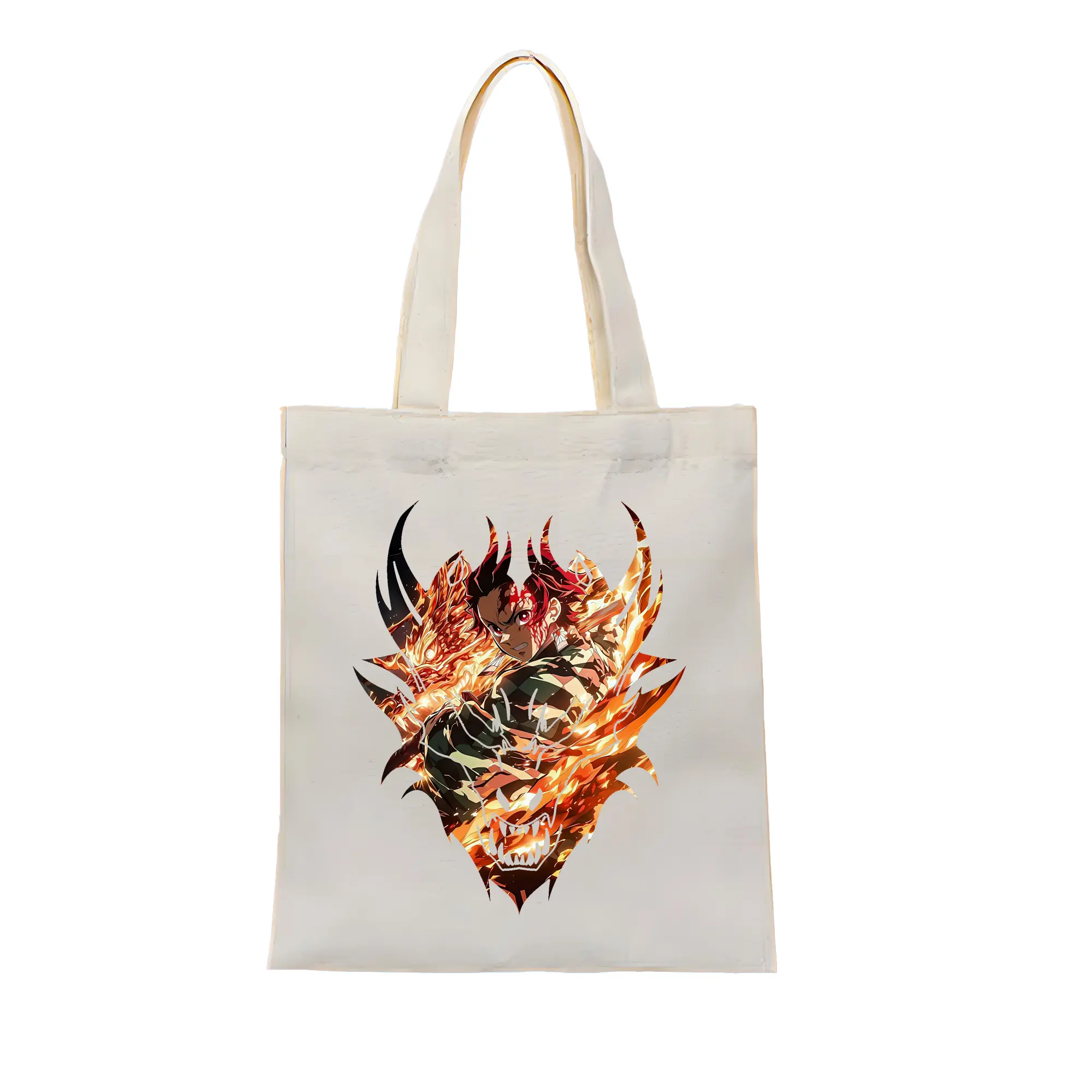 鬼滅の刃 グッズ,竈門 炭治郎 - 縦型キャンバス手提げバッグ(トートバッグ) ・ キャンバス素材 ・ ショッピング用 ・ 軽量 丈夫 お手入れ簡単