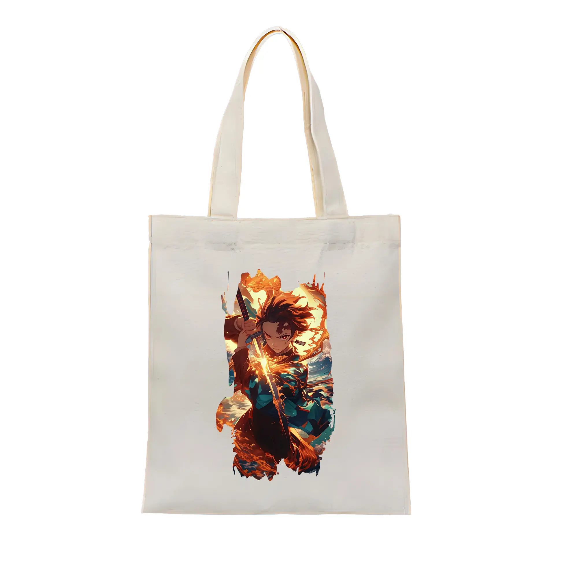 鬼滅の刃 グッズ,竈門 炭治郎 - 縦型キャンバス手提げバッグ(トートバッグ) ・ キャンバス素材 ・ ショッピング用 ・ 軽量 丈夫 お手入れ簡単