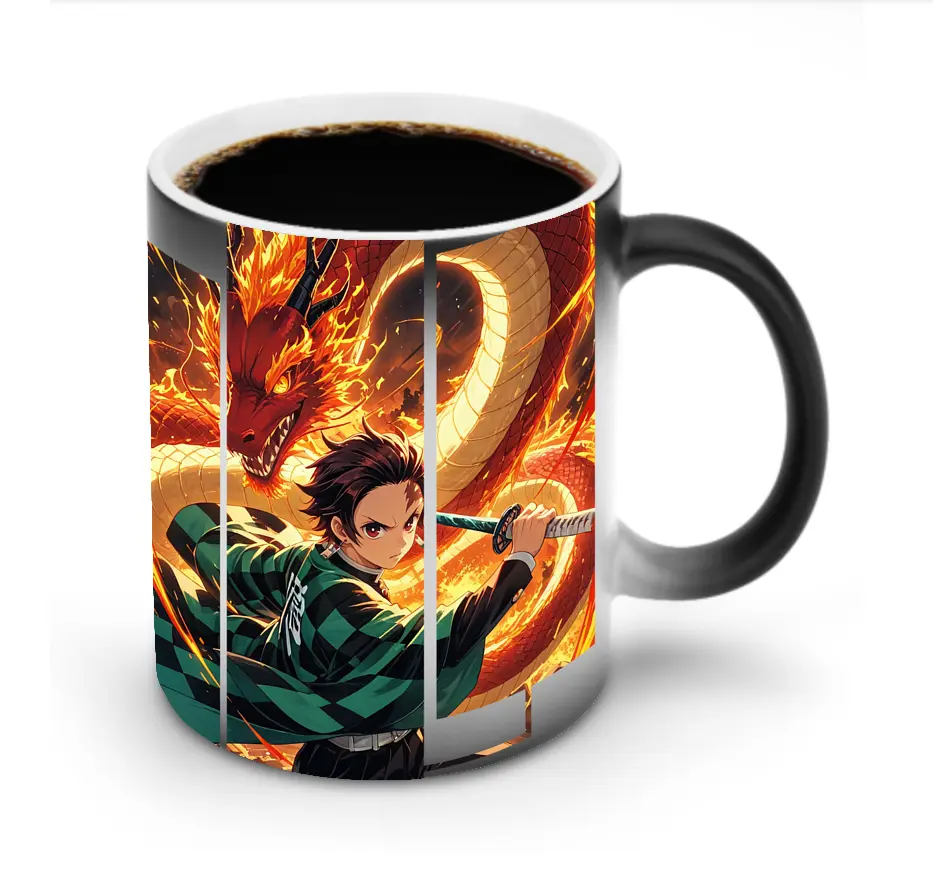 鬼滅の刃 グッズ,竈門 炭治郎 - 変色マグカップ ・ セラミック ・ 熱転写プリント ・ 耐久性 高品質 ・ ギフト・自宅用 コーヒー お茶