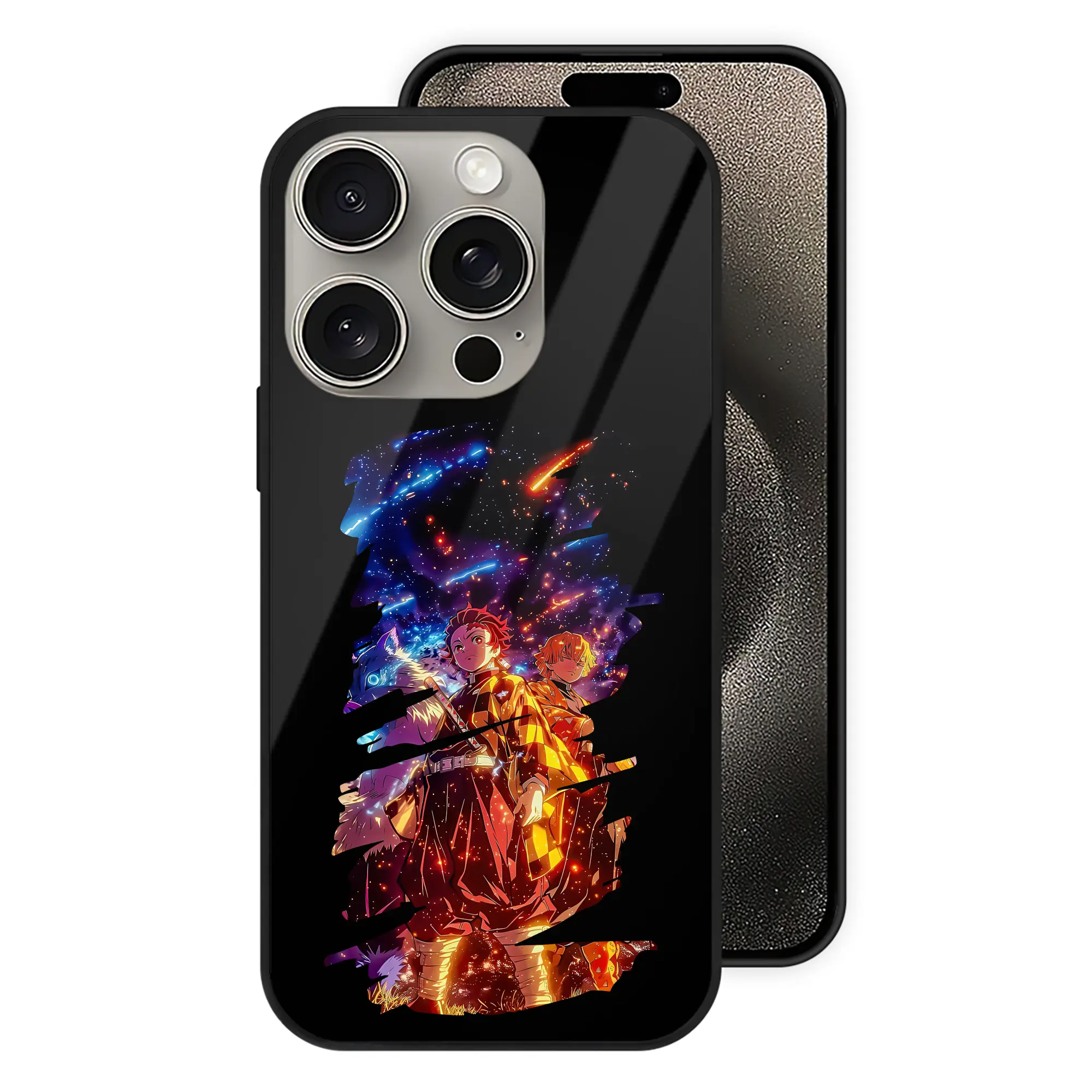 鬼滅の刃 グッズ,竈門 炭治郎 - IPhone15Pro対応 ・ スマホケース ・ 背面ガラス ・ TPU+強化ガラス ・ 耐衝撃 ・ 黄変防止 ・ ワイヤレス充電対応 ・ 3D立体ボタン