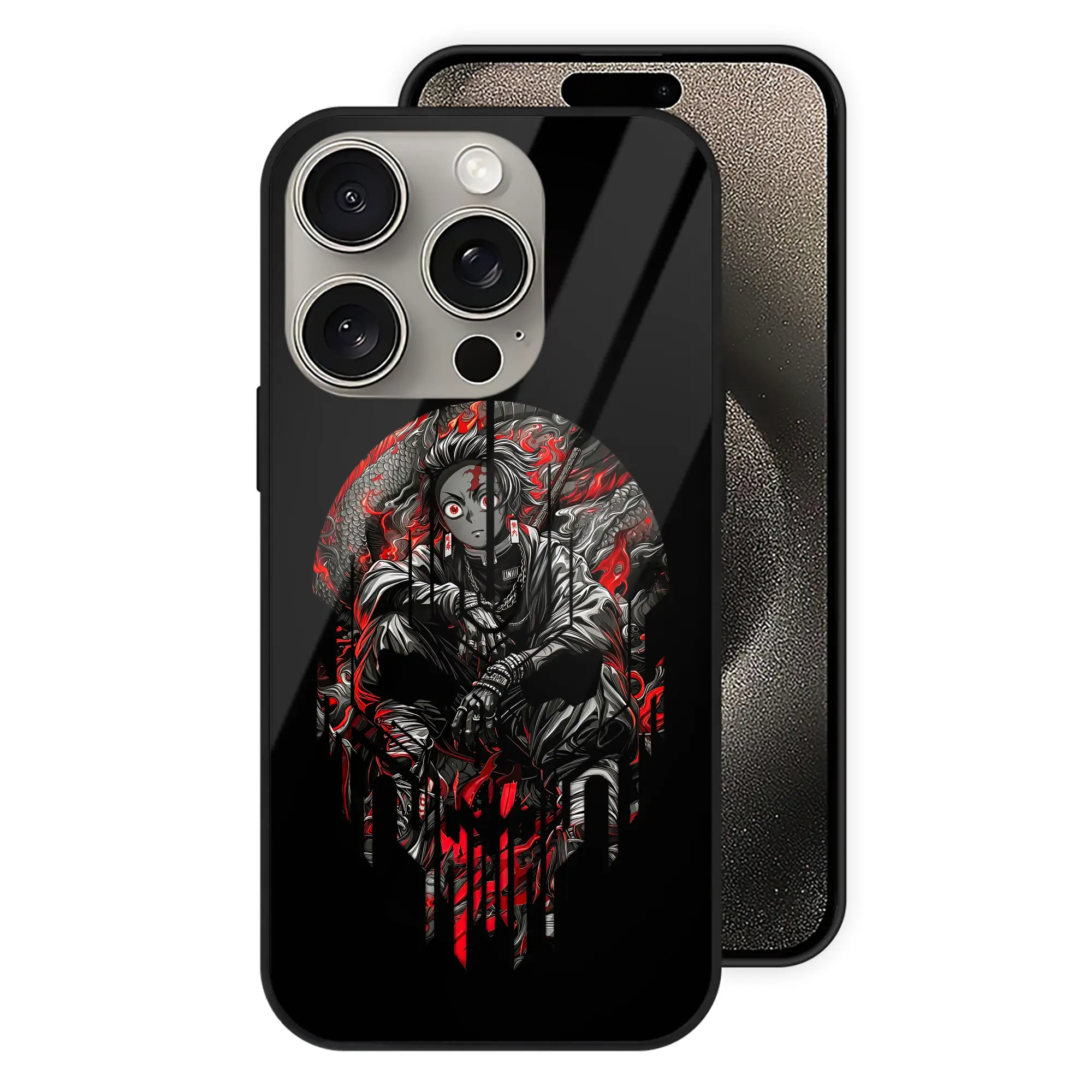 鬼滅の刃 グッズ,竈門 炭治郎 - IPhone15Pro対応 ・ スマホケース ・ 背面ガラス ・ TPU+強化ガラス ・ 耐衝撃 ・ 黄変防止 ・ ワイヤレス充電対応 ・ 3D立体ボタン