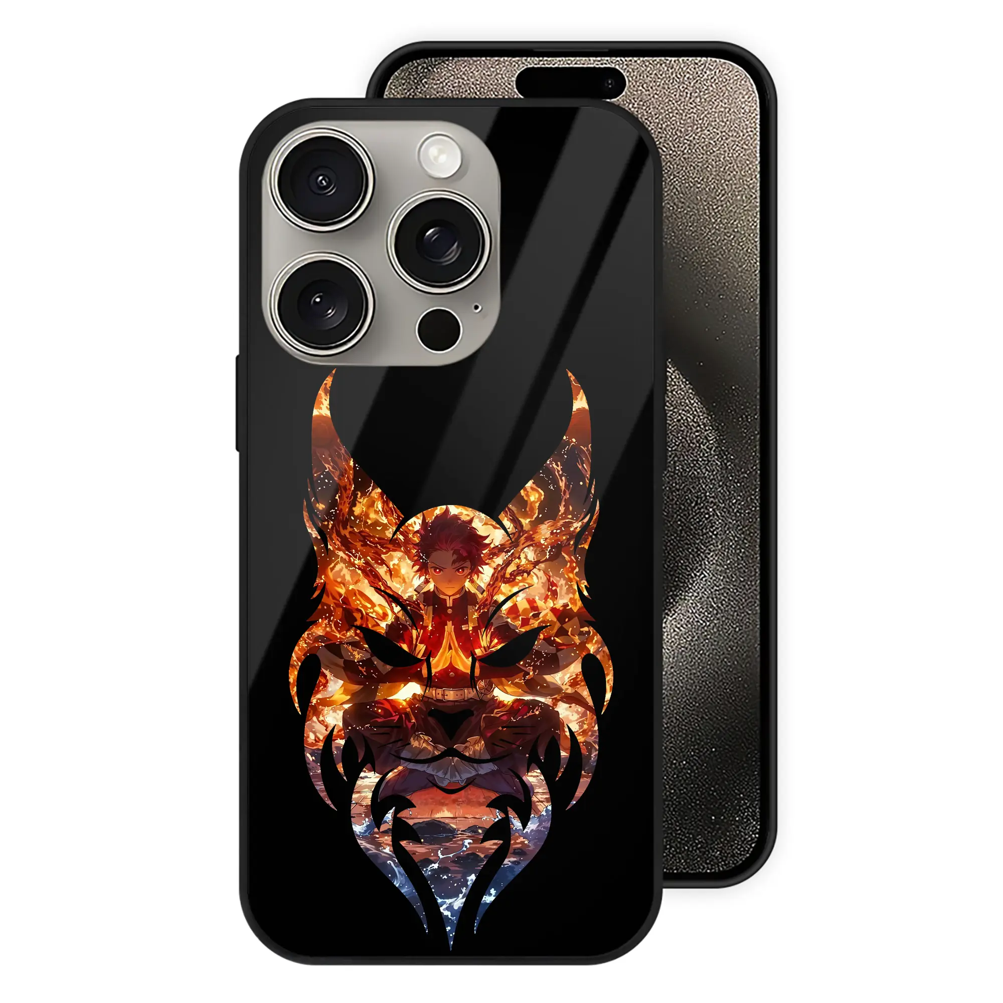 鬼滅の刃 グッズ,竈門 炭治郎 - IPhone15Pro対応 ・ スマホケース ・ 背面ガラス ・ TPU+強化ガラス ・ 耐衝撃 ・ 黄変防止 ・ ワイヤレス充電対応 ・ 3D立体ボタン