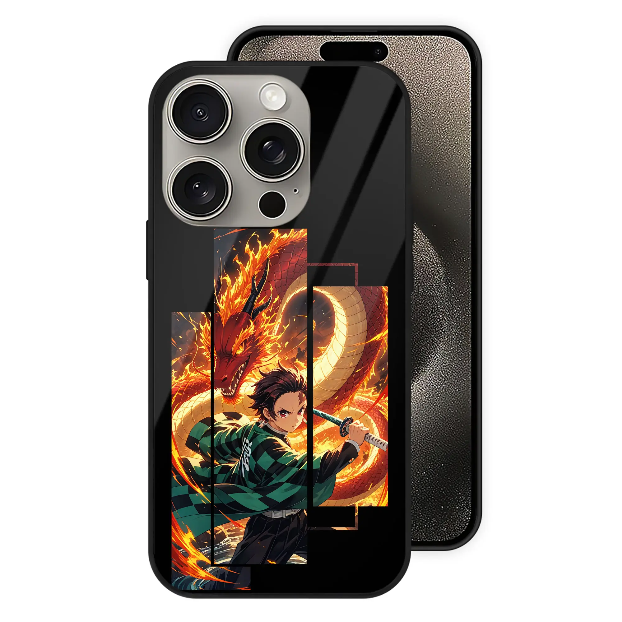 鬼滅の刃 グッズ,竈門 炭治郎 - IPhone15Pro対応 ・ スマホケース ・ 背面ガラス ・ TPU+強化ガラス ・ 耐衝撃 ・ 黄変防止 ・ ワイヤレス充電対応 ・ 3D立体ボタン