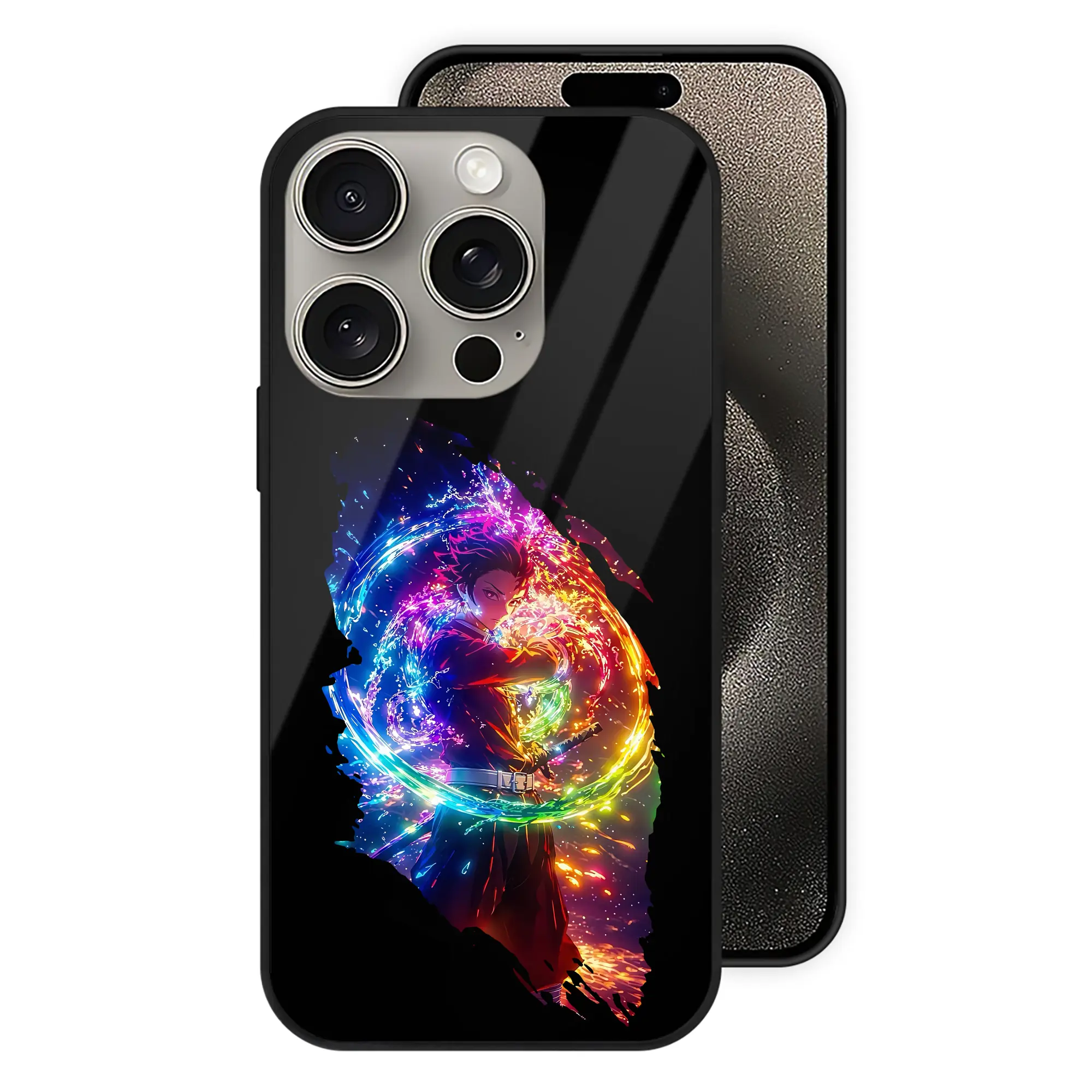 鬼滅の刃 グッズ,竈門 炭治郎 - IPhone15Pro対応 ・ スマホケース ・ 背面ガラス ・ TPU+強化ガラス ・ 耐衝撃 ・ 黄変防止 ・ ワイヤレス充電対応 ・ 3D立体ボタン
