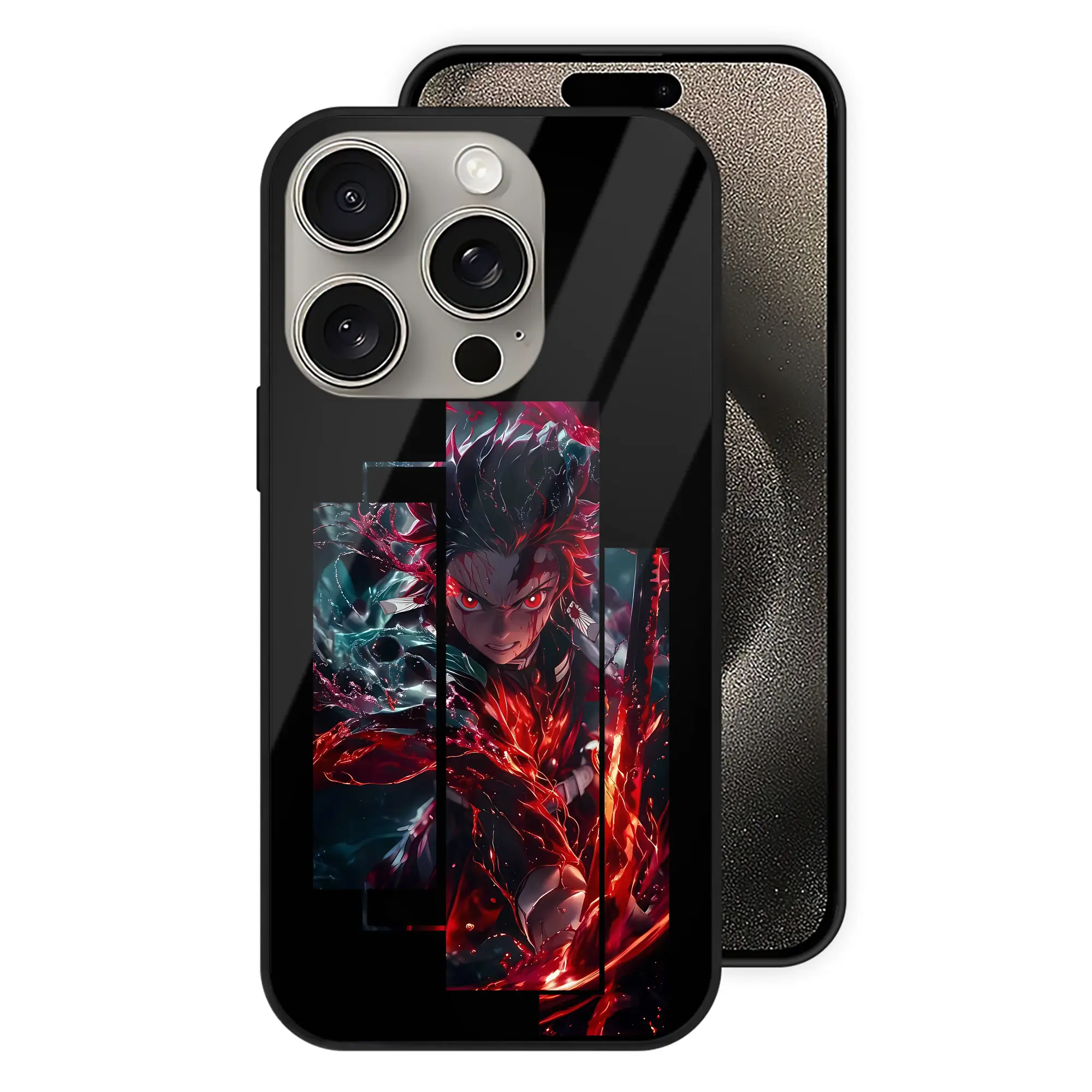 鬼滅の刃 グッズ,竈門 炭治郎 - IPhone15Pro対応 ・ スマホケース ・ 背面ガラス ・ TPU+強化ガラス ・ 耐衝撃 ・ 黄変防止 ・ ワイヤレス充電対応 ・ 3D立体ボタン