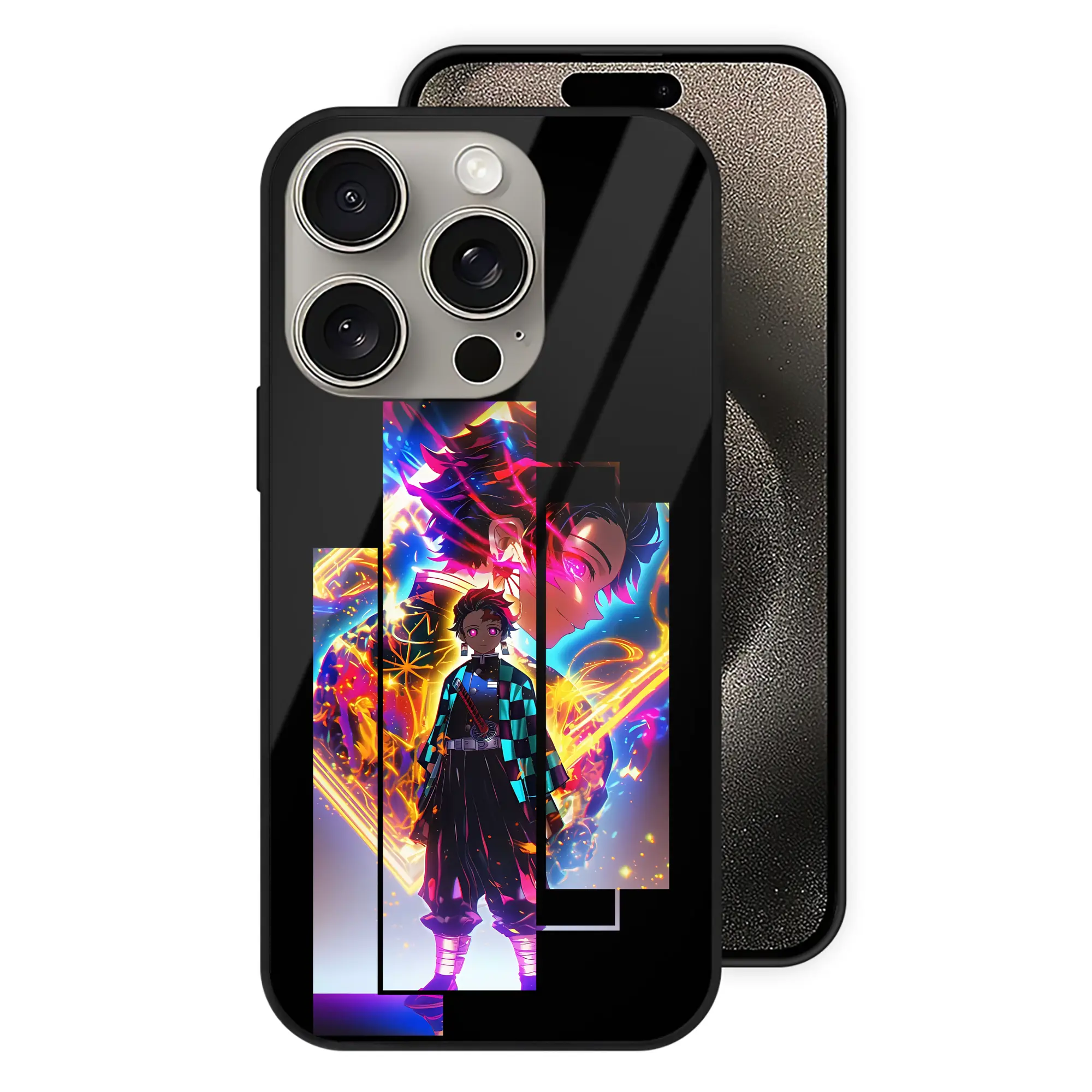 鬼滅の刃 グッズ,竈門 炭治郎 - IPhone15Pro対応 ・ スマホケース ・ 背面ガラス ・ TPU+強化ガラス ・ 耐衝撃 ・ 黄変防止 ・ ワイヤレス充電対応 ・ 3D立体ボタン