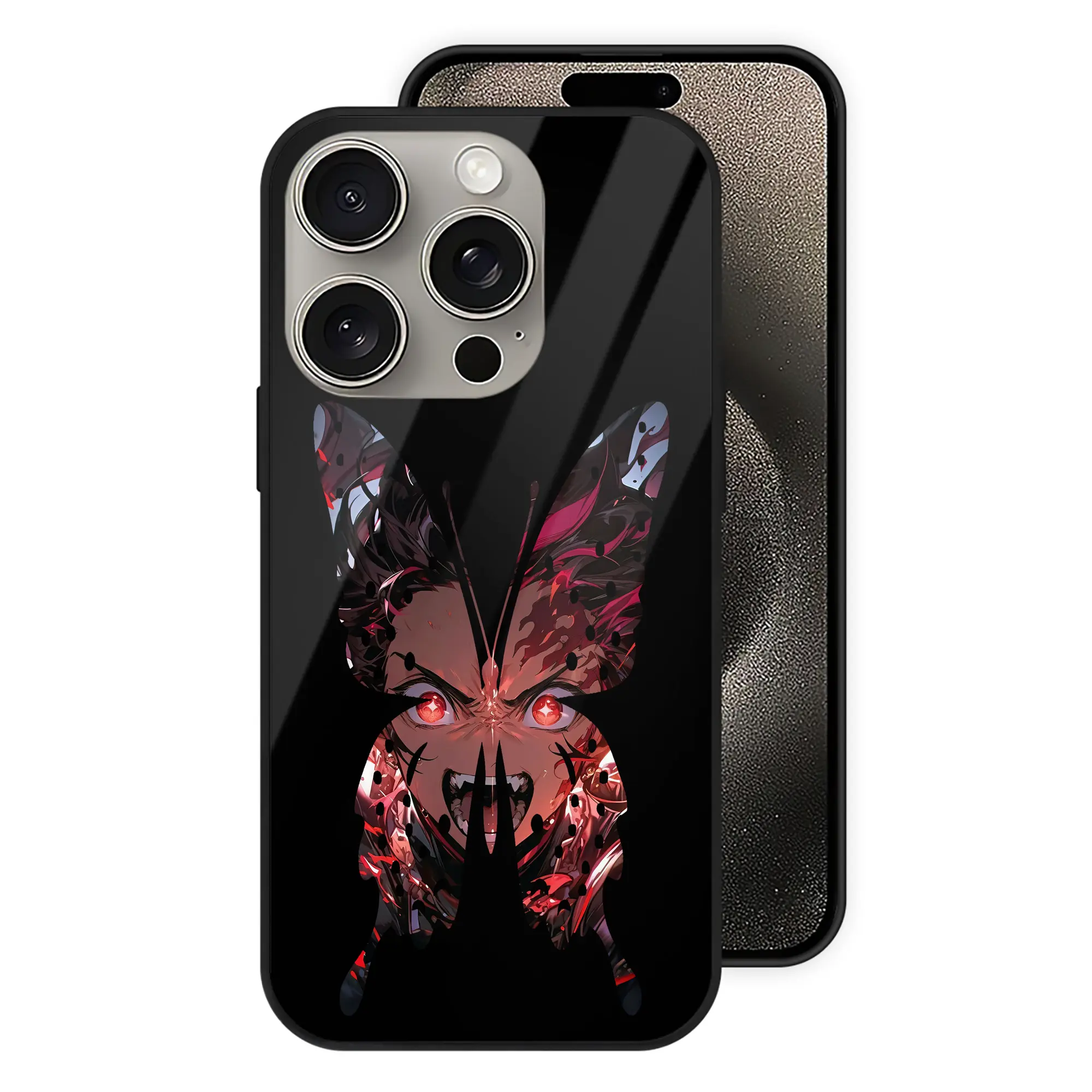 鬼滅の刃 グッズ,竈門 炭治郎 - IPhone15Pro対応 ・ スマホケース ・ 背面ガラス ・ TPU+強化ガラス ・ 耐衝撃 ・ 黄変防止 ・ ワイヤレス充電対応 ・ 3D立体ボタン