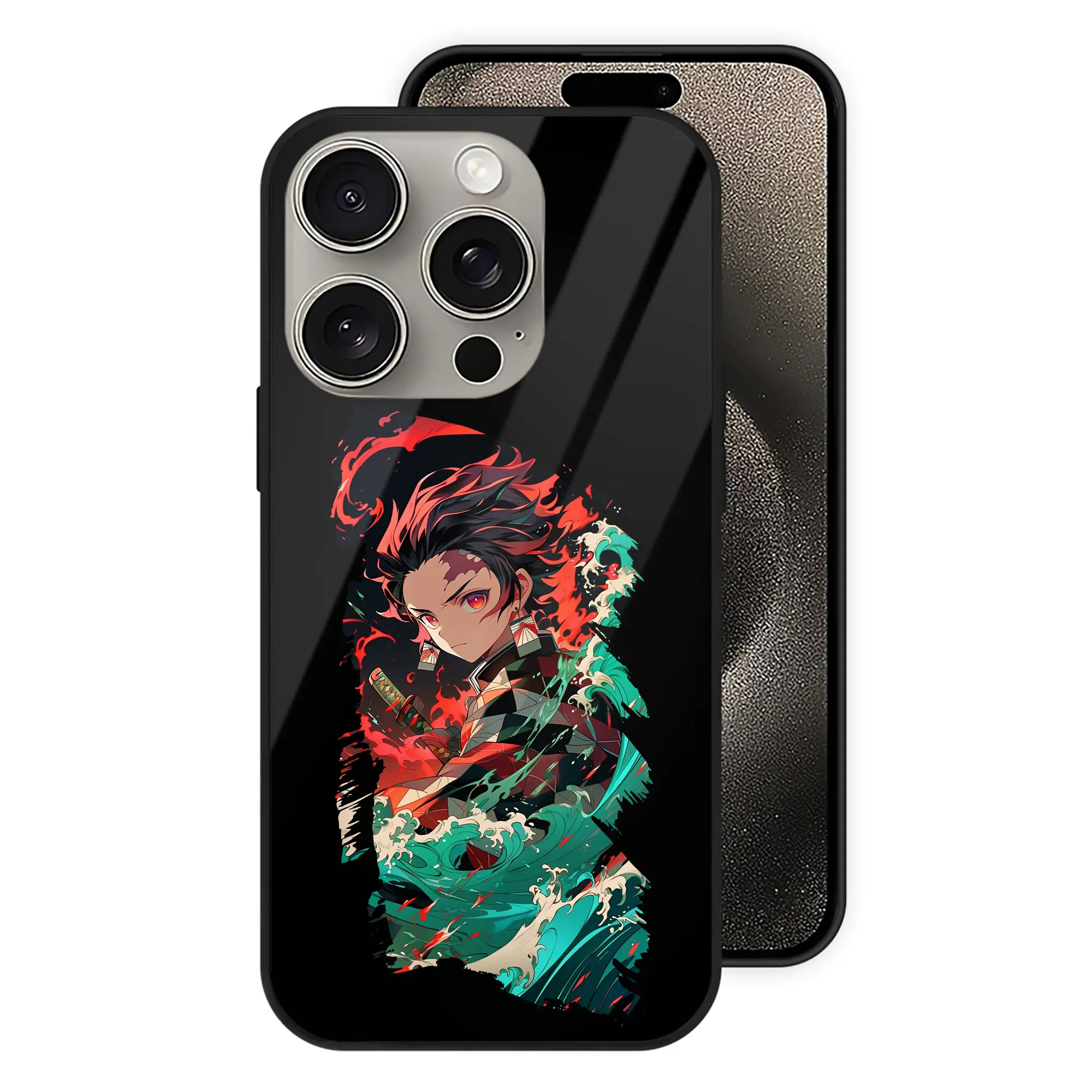 鬼滅の刃 グッズ,竈門 炭治郎 - IPhone15Pro対応 ・ スマホケース ・ 背面ガラス ・ TPU+強化ガラス ・ 耐衝撃 ・ 黄変防止 ・ ワイヤレス充電対応 ・ 3D立体ボタン