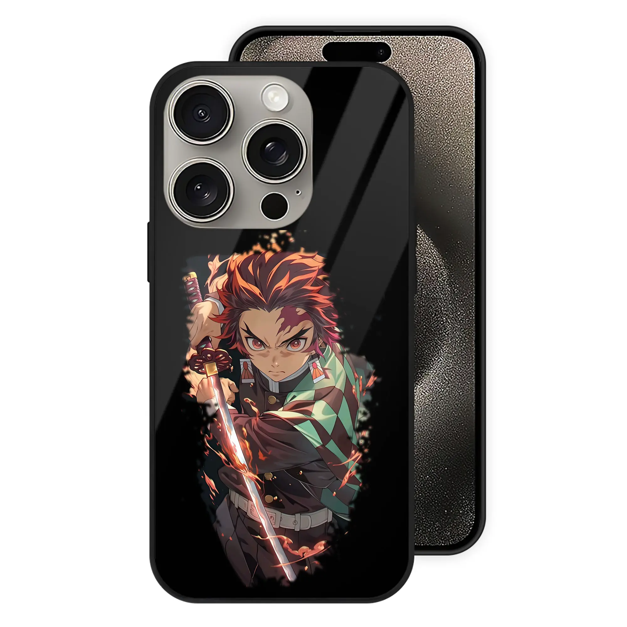 鬼滅の刃 グッズ,竈門 炭治郎 - IPhone15Pro対応 ・ スマホケース ・ 背面ガラス ・ TPU+強化ガラス ・ 耐衝撃 ・ 黄変防止 ・ ワイヤレス充電対応 ・ 3D立体ボタン