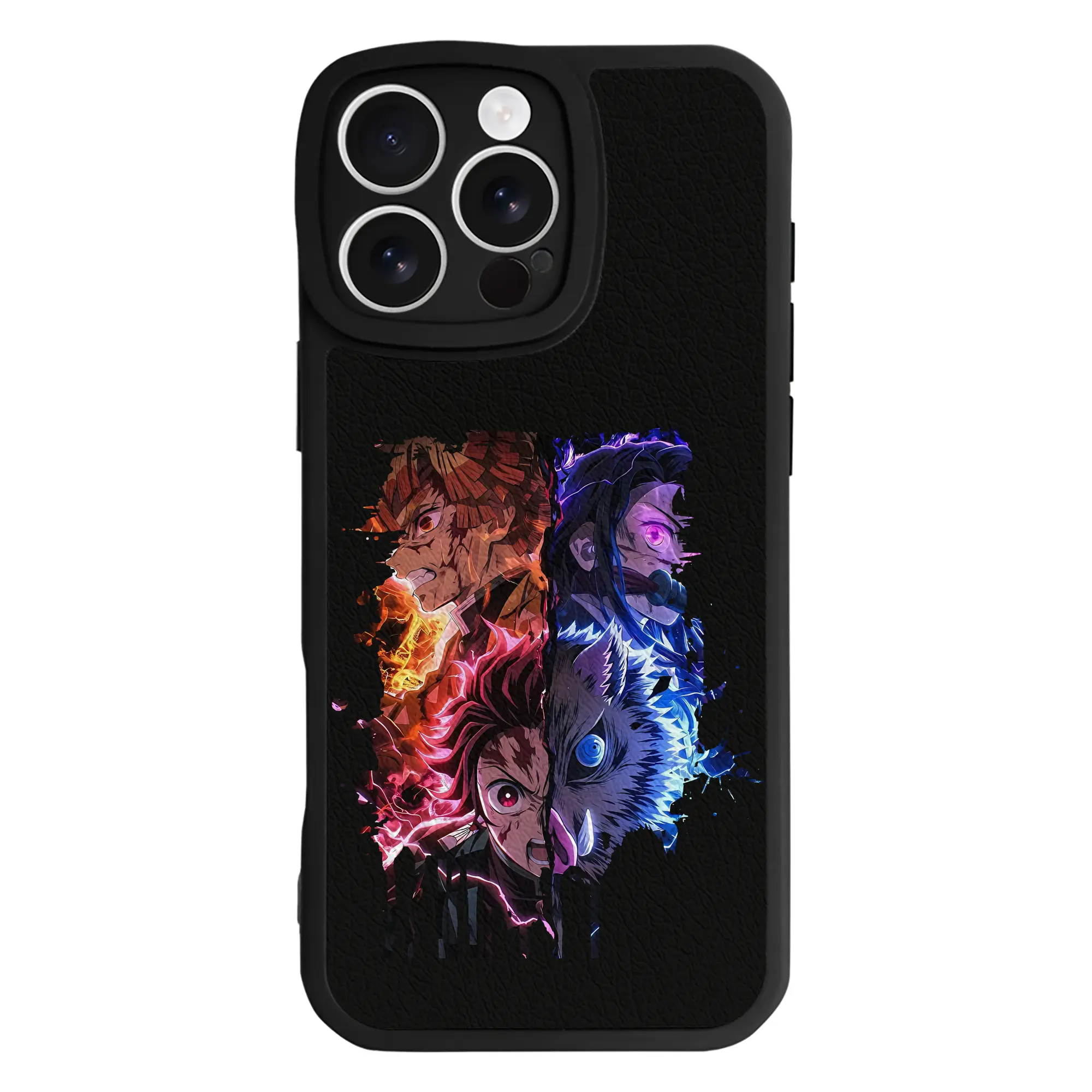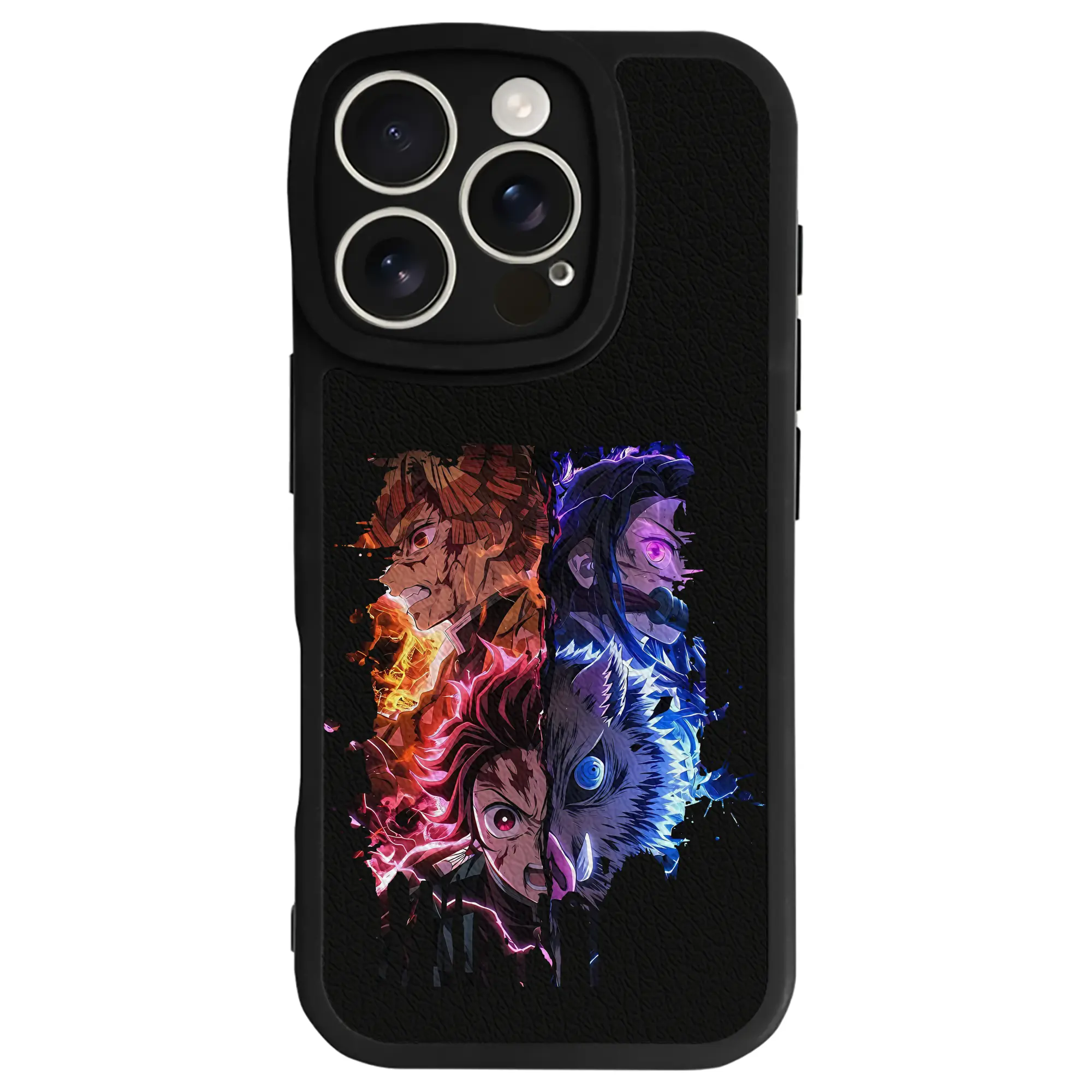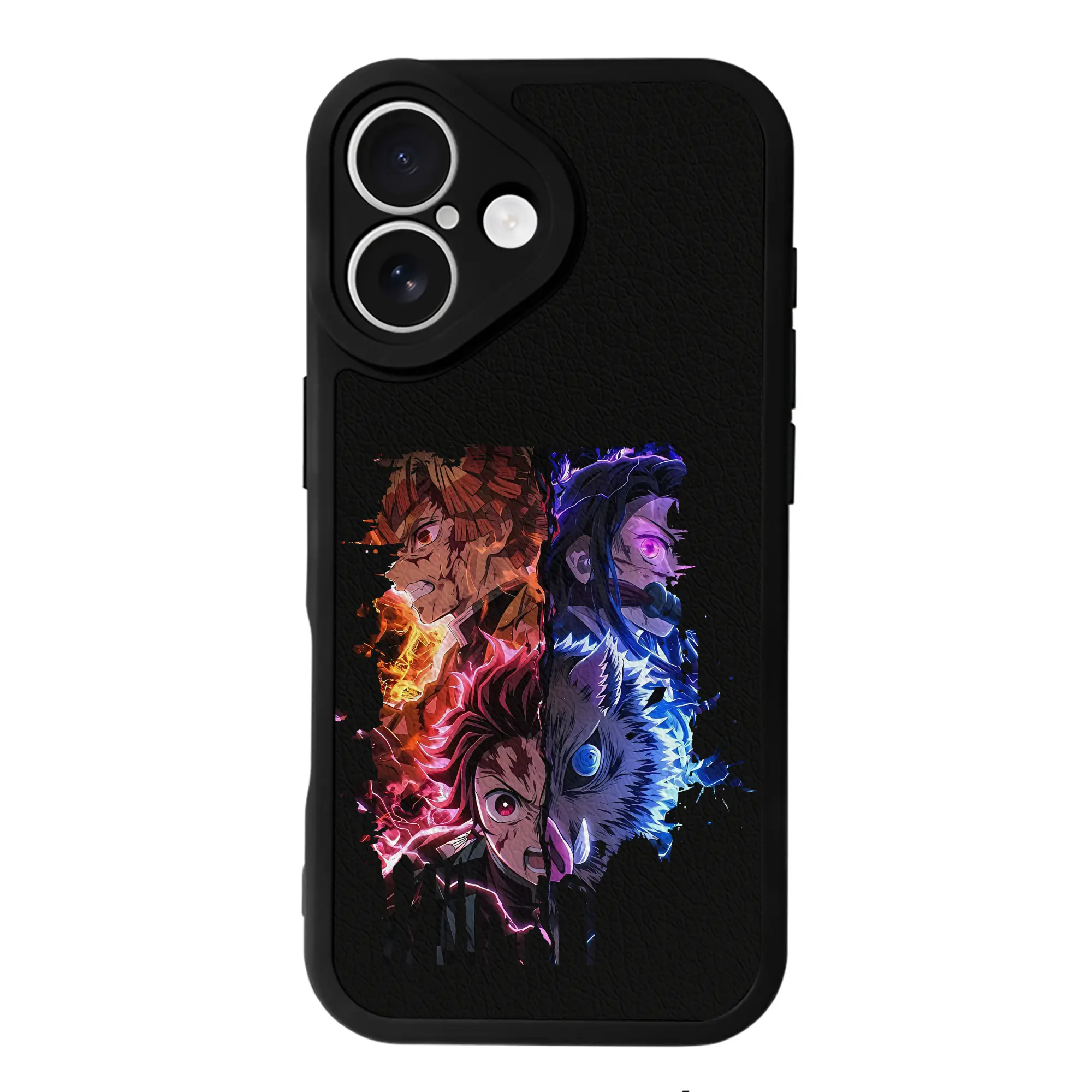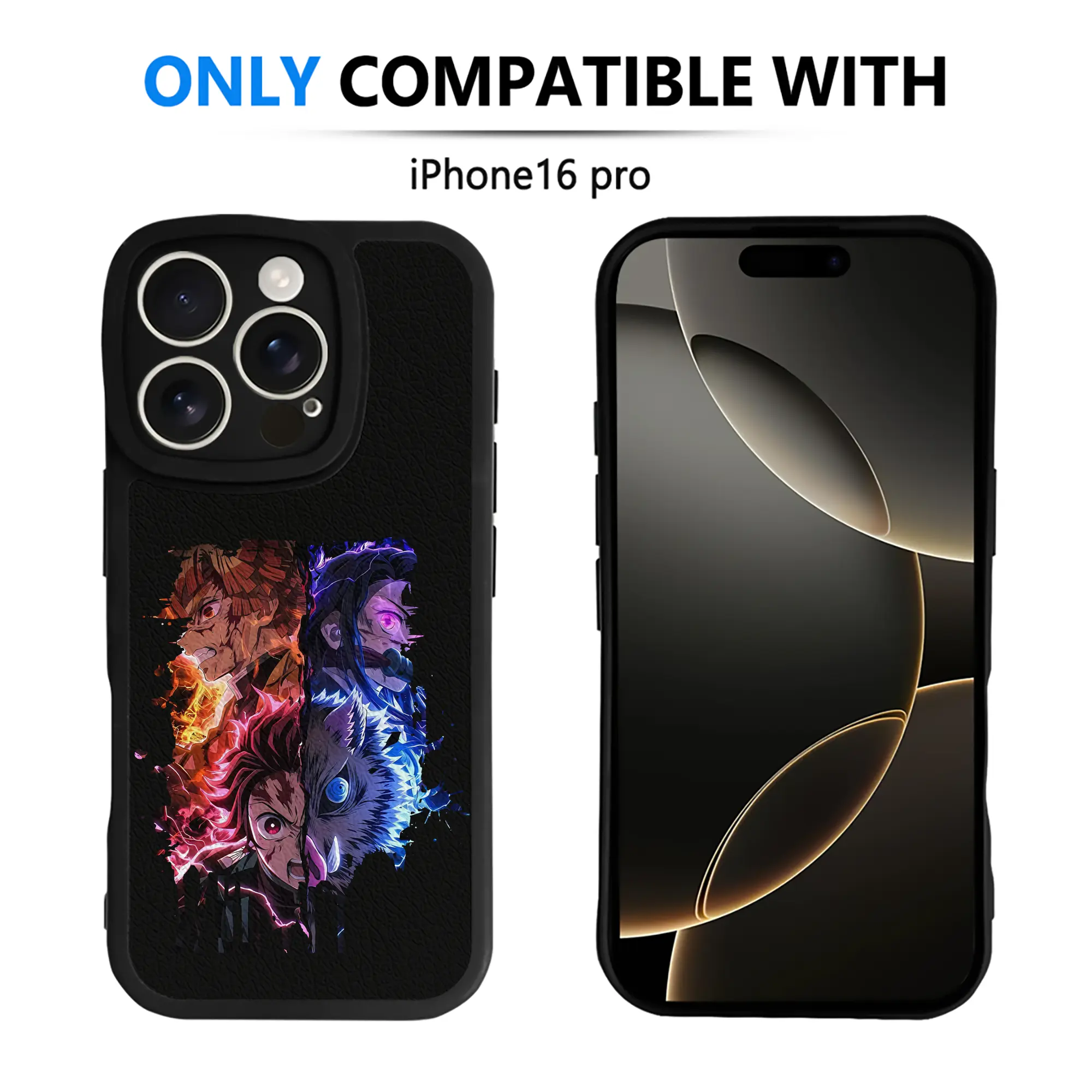 鬼滅の刃 グッズ,竈門 炭治郎 - IPhone 16シリーズ対応 ・ シリコンスマホケース ・ レザー調 ・ 高精度フィット ・ 耐衝撃 ・ ワイヤレス充電対応 ・ 精密カット